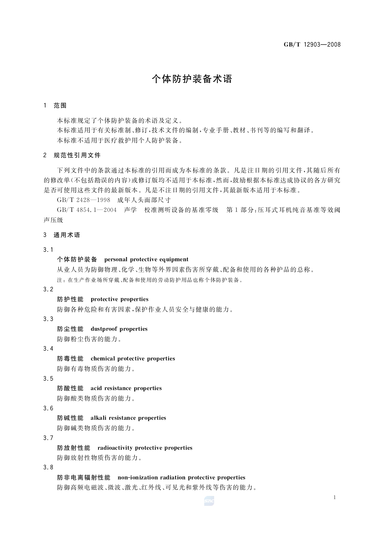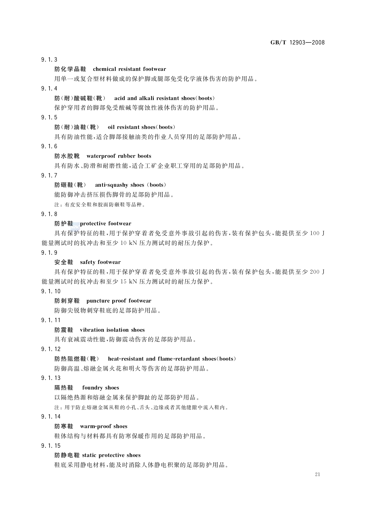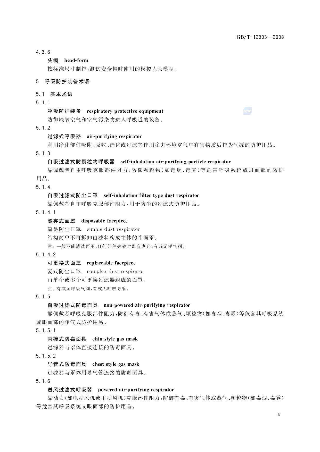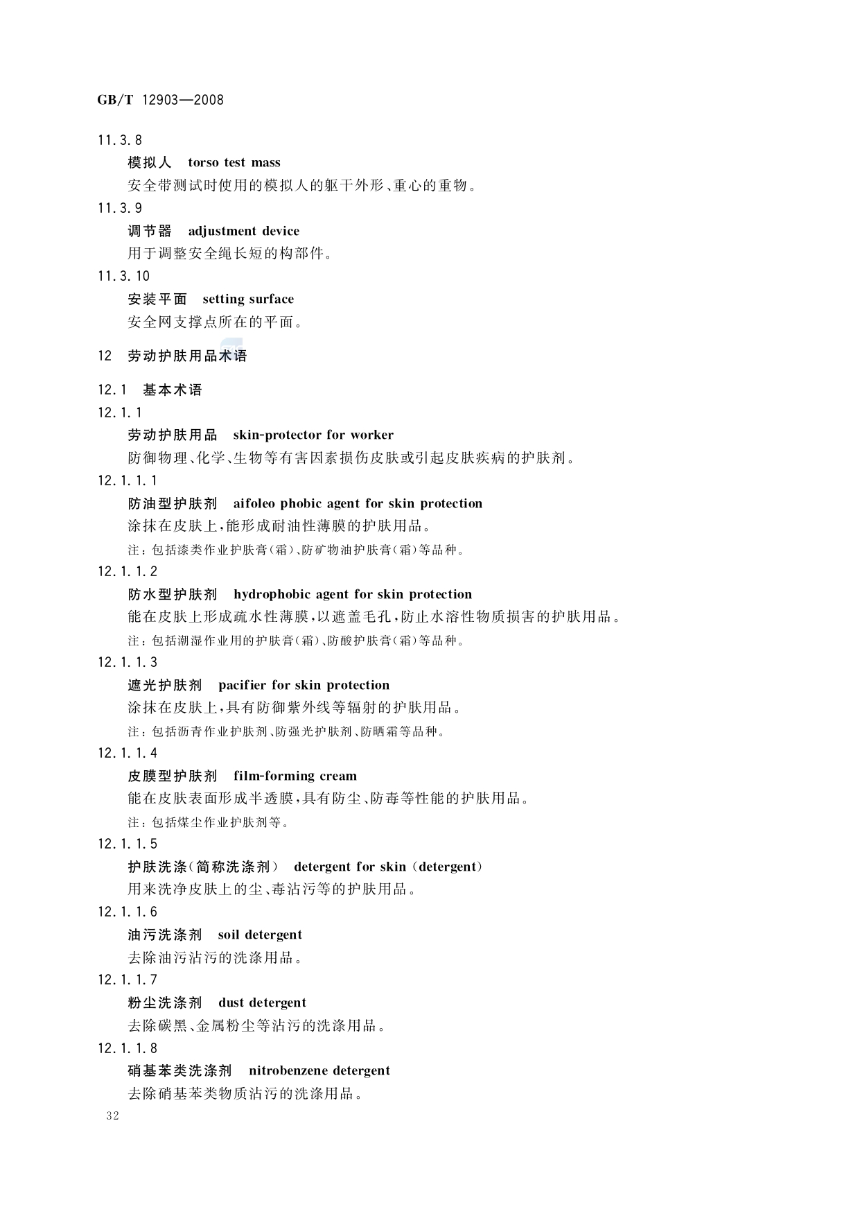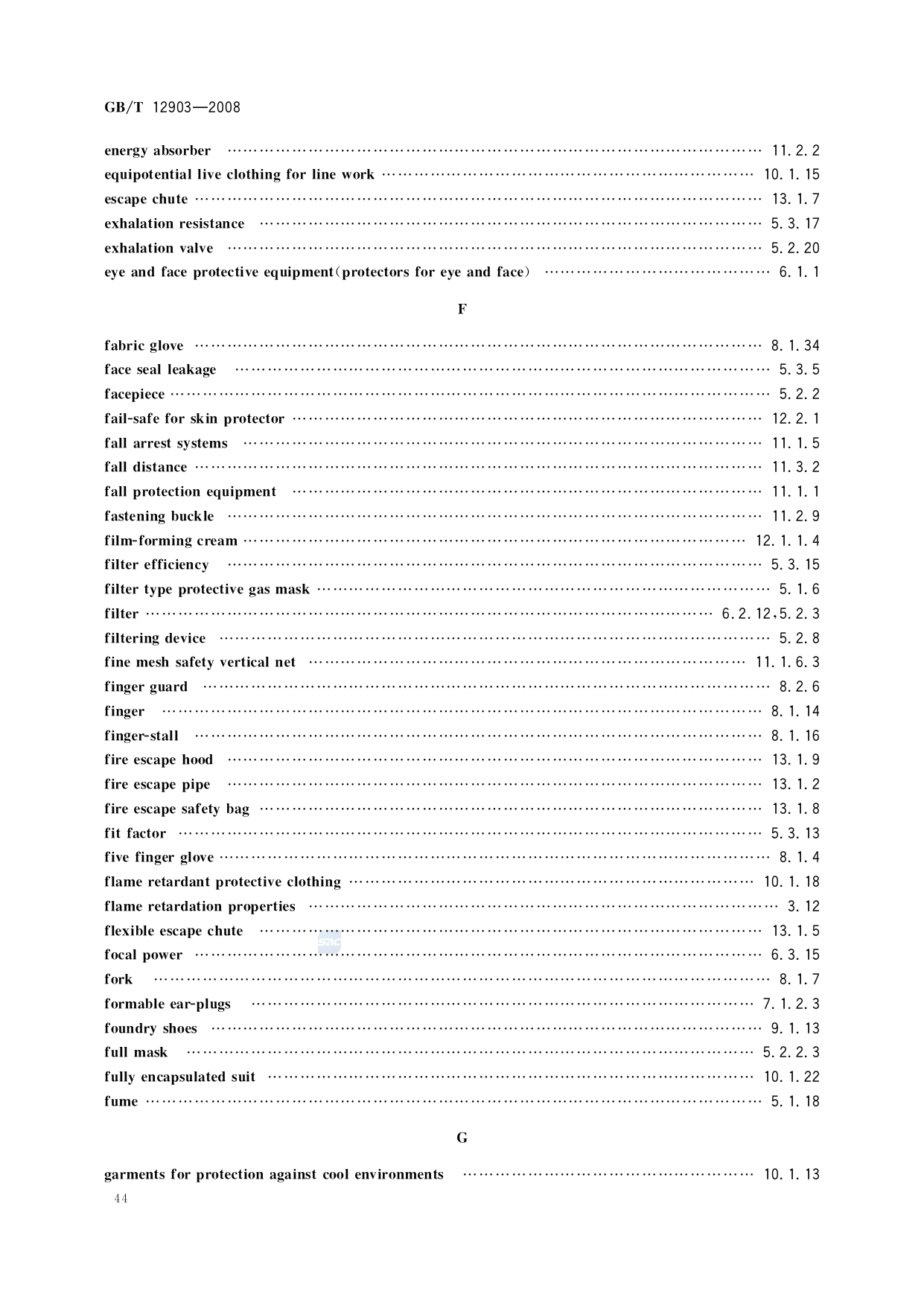 《个体防护装备术语》(GB/T12903-2008)