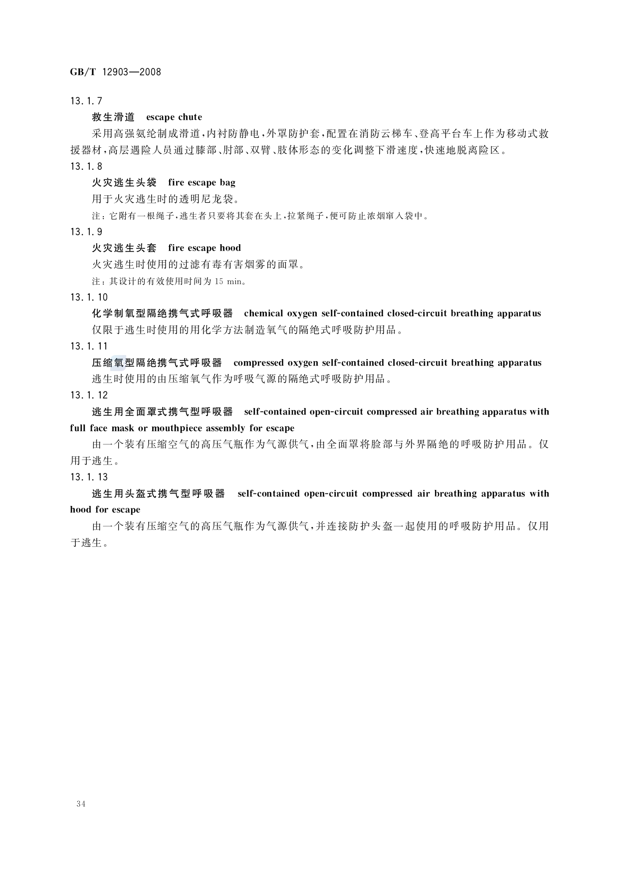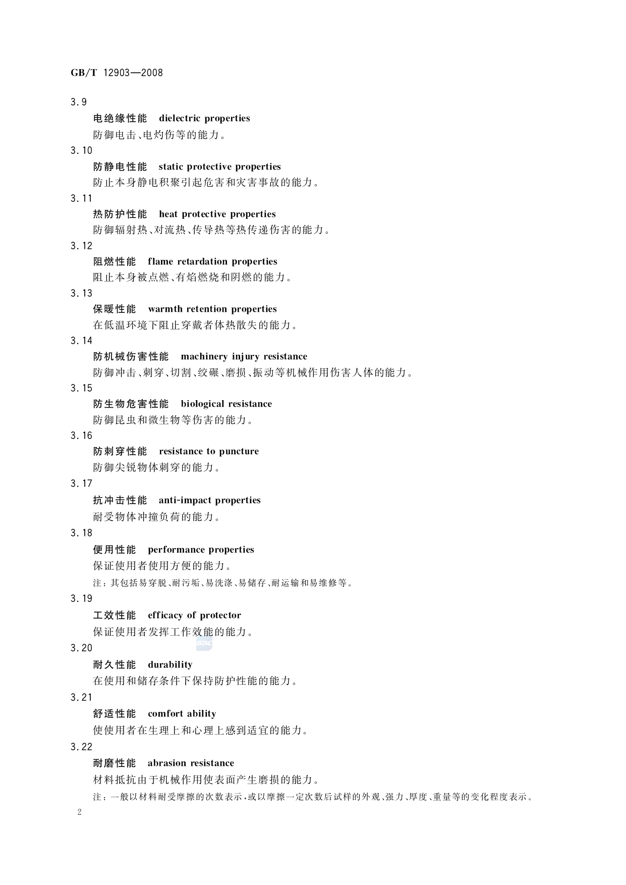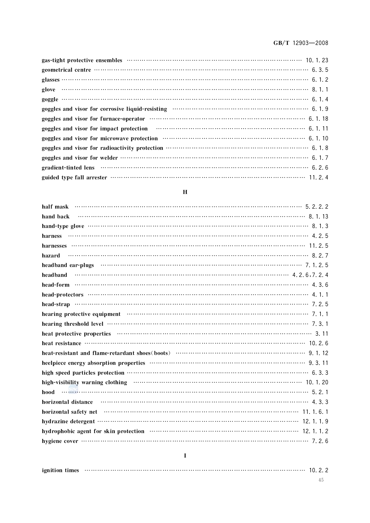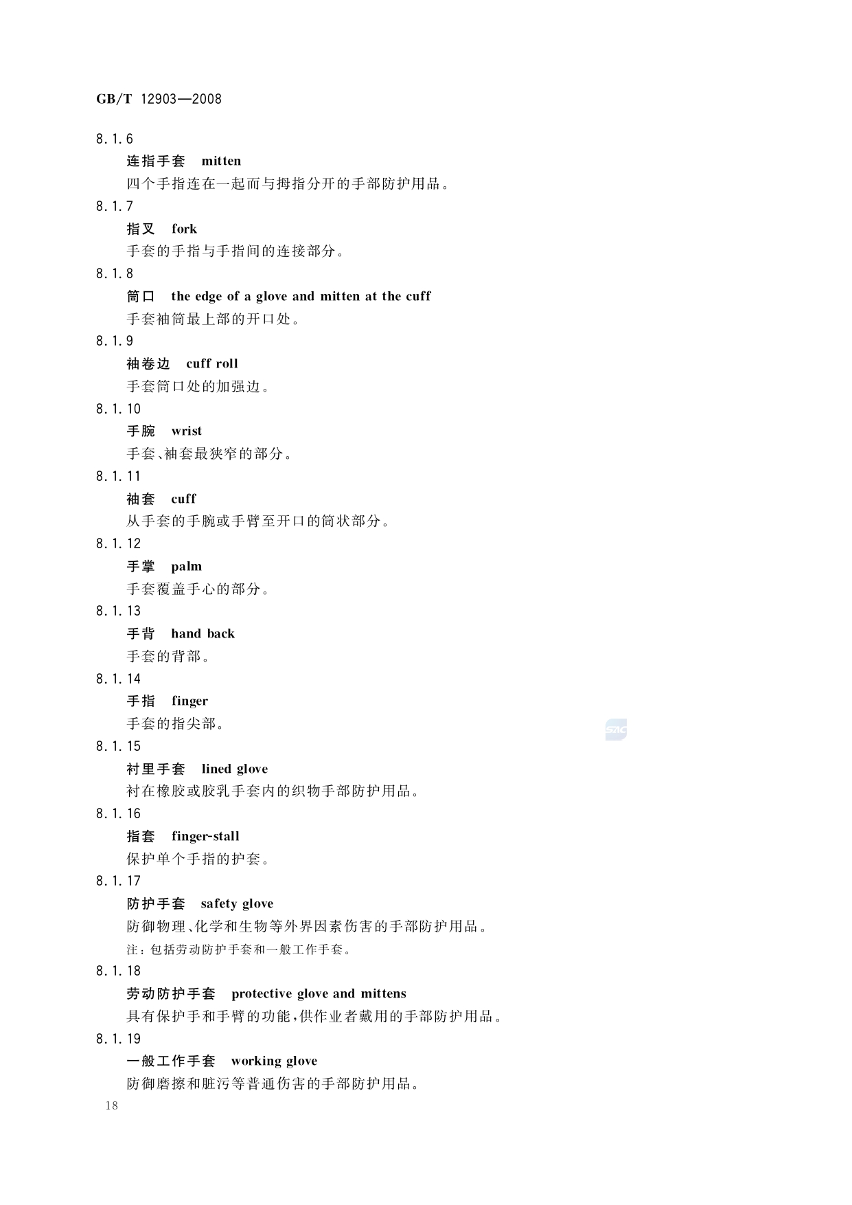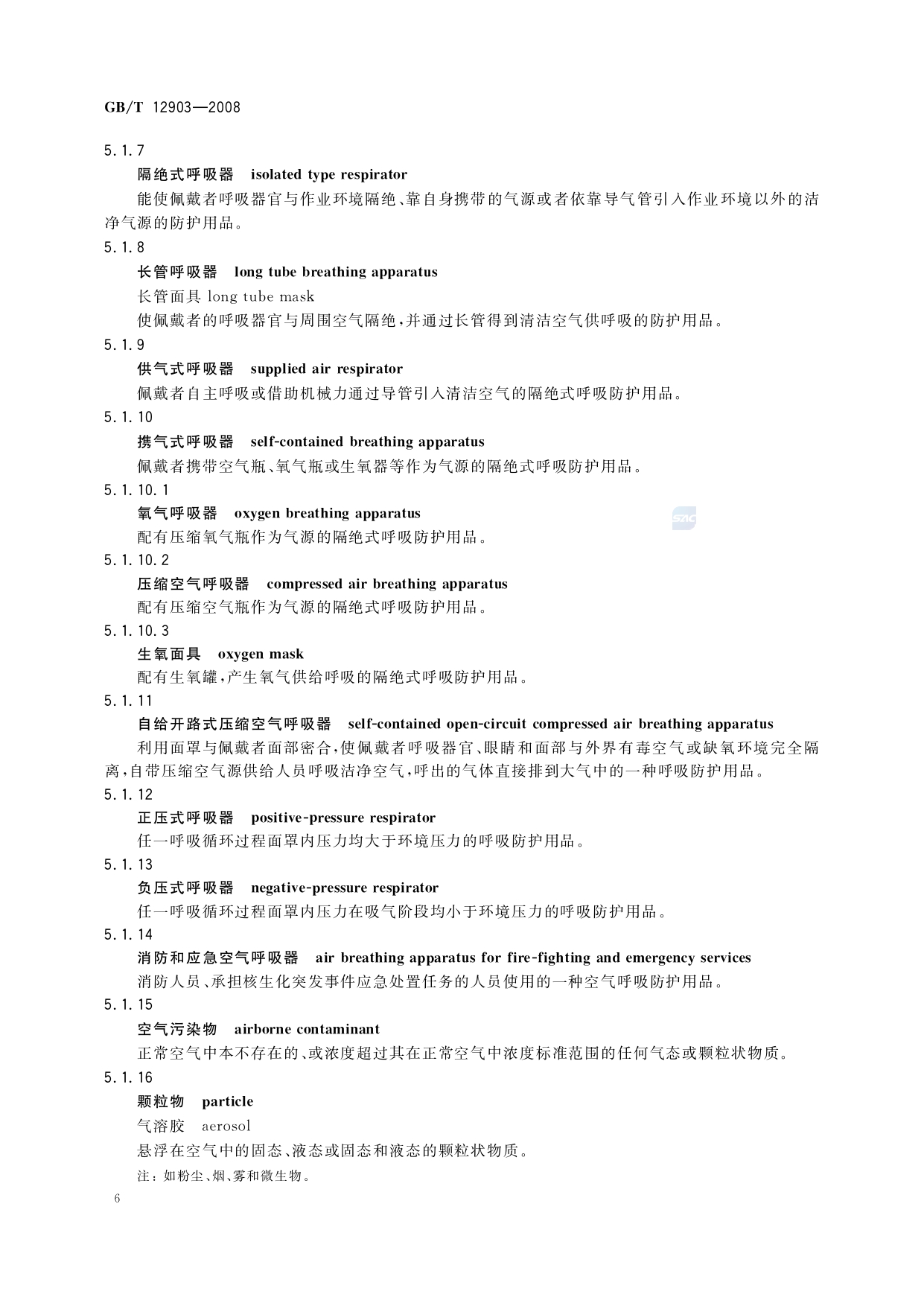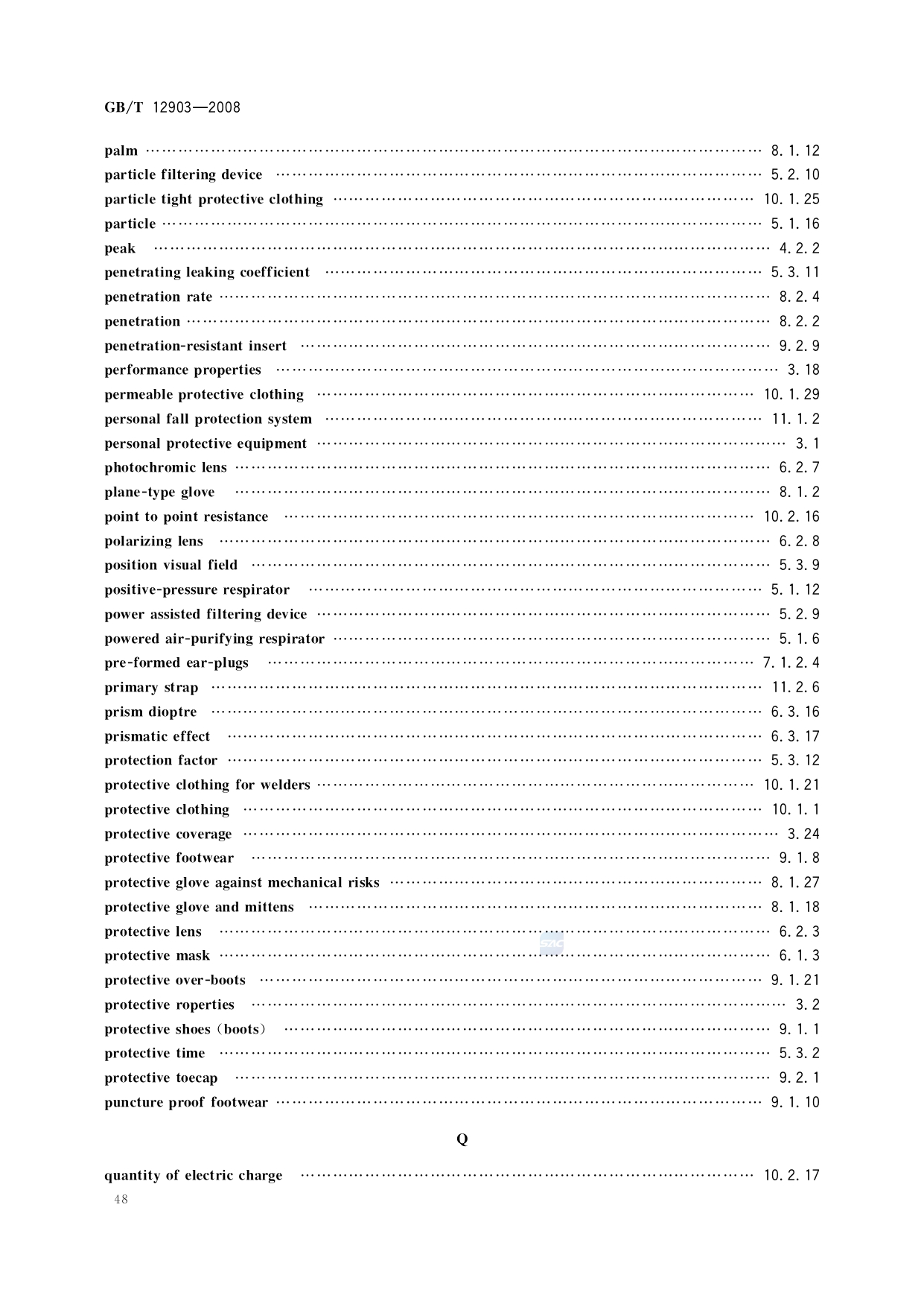 《个体防护装备术语》(GB/T12903-2008)