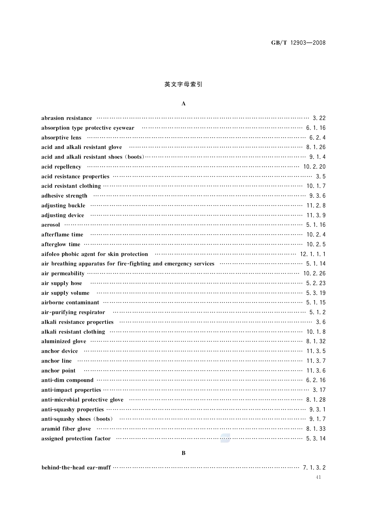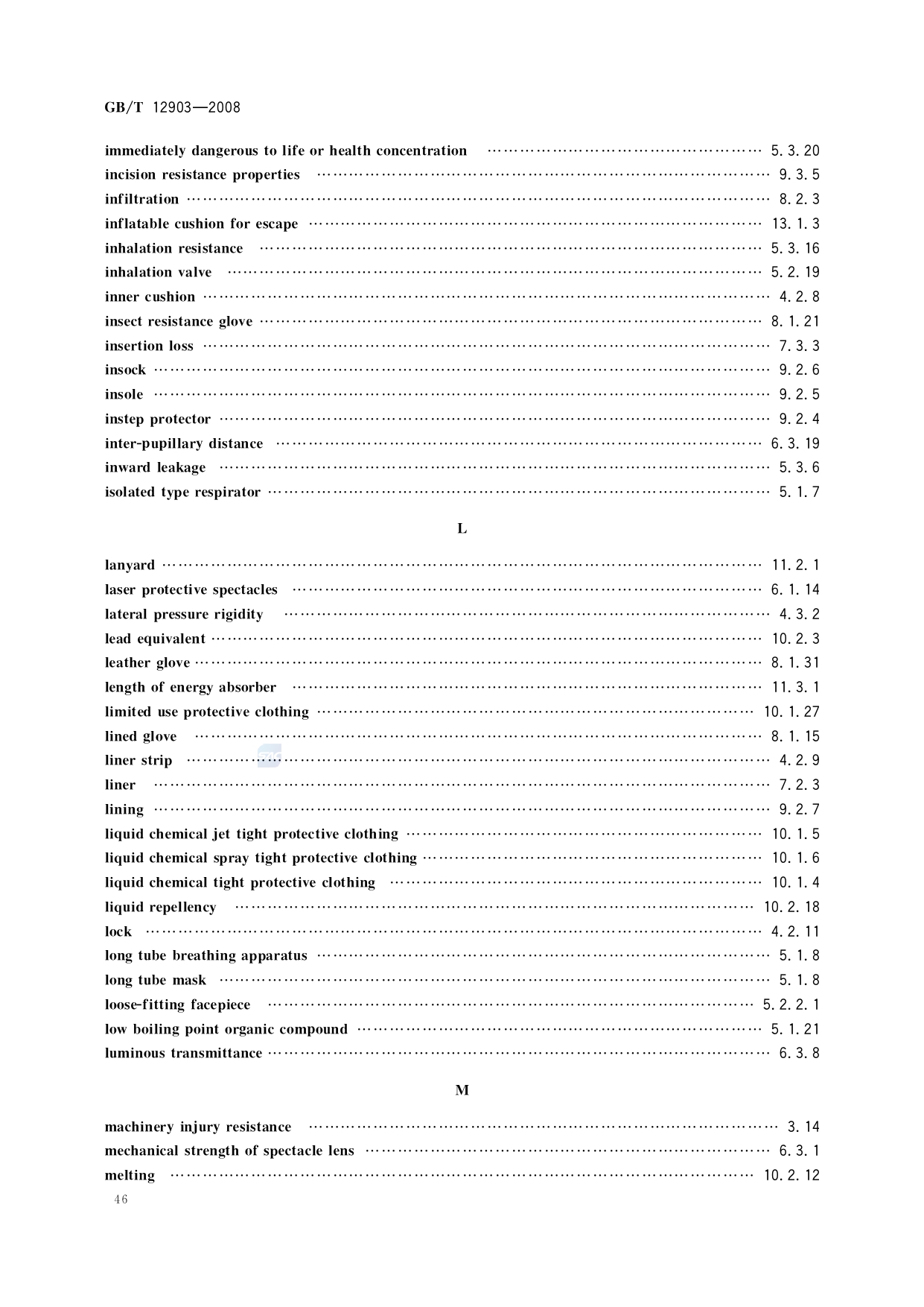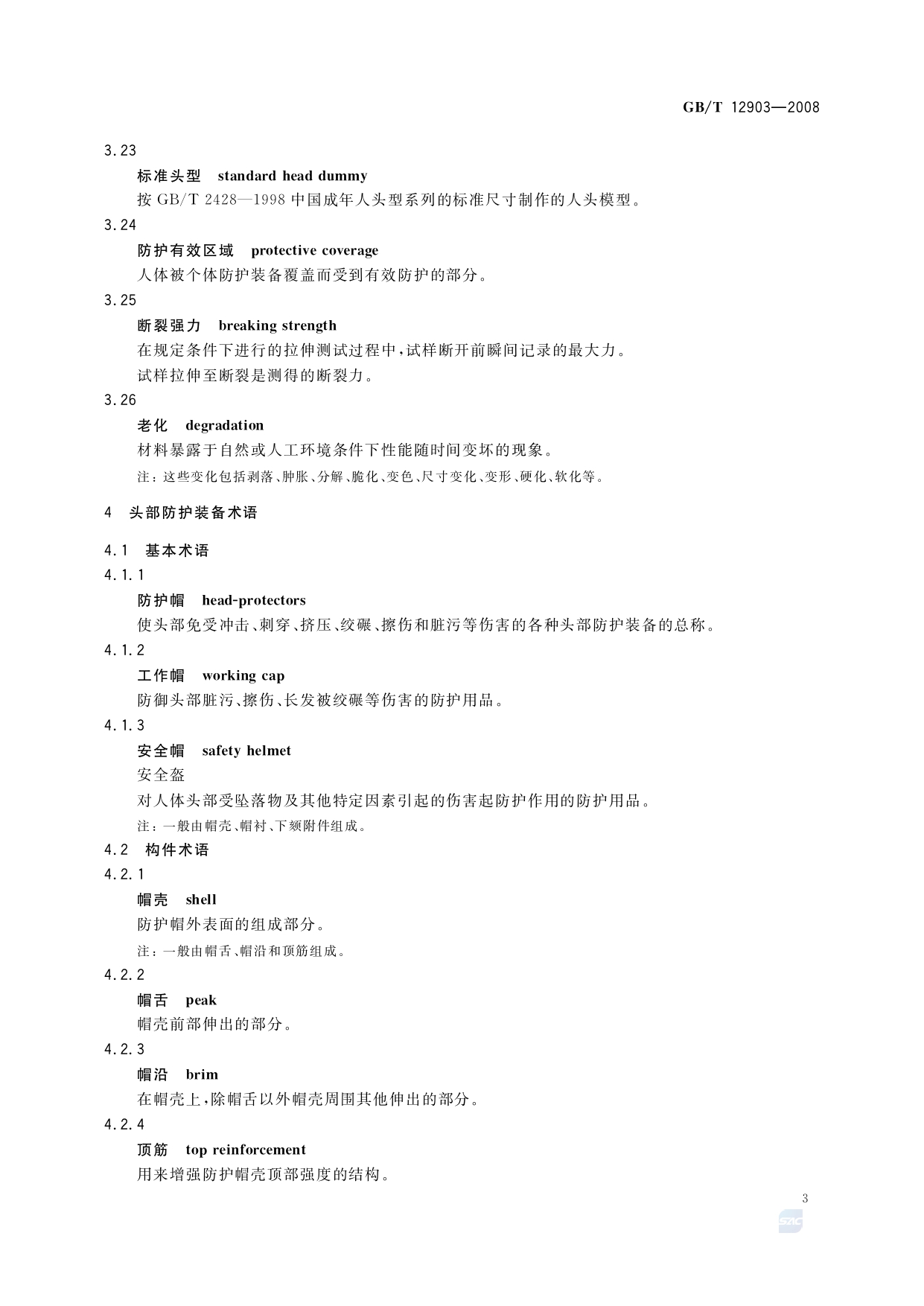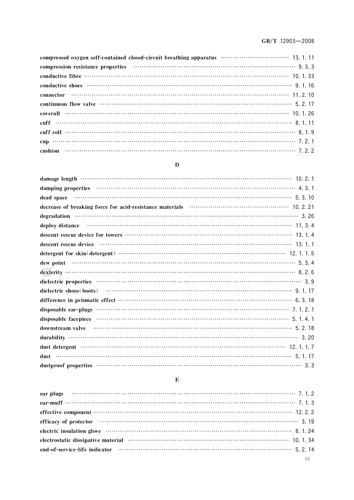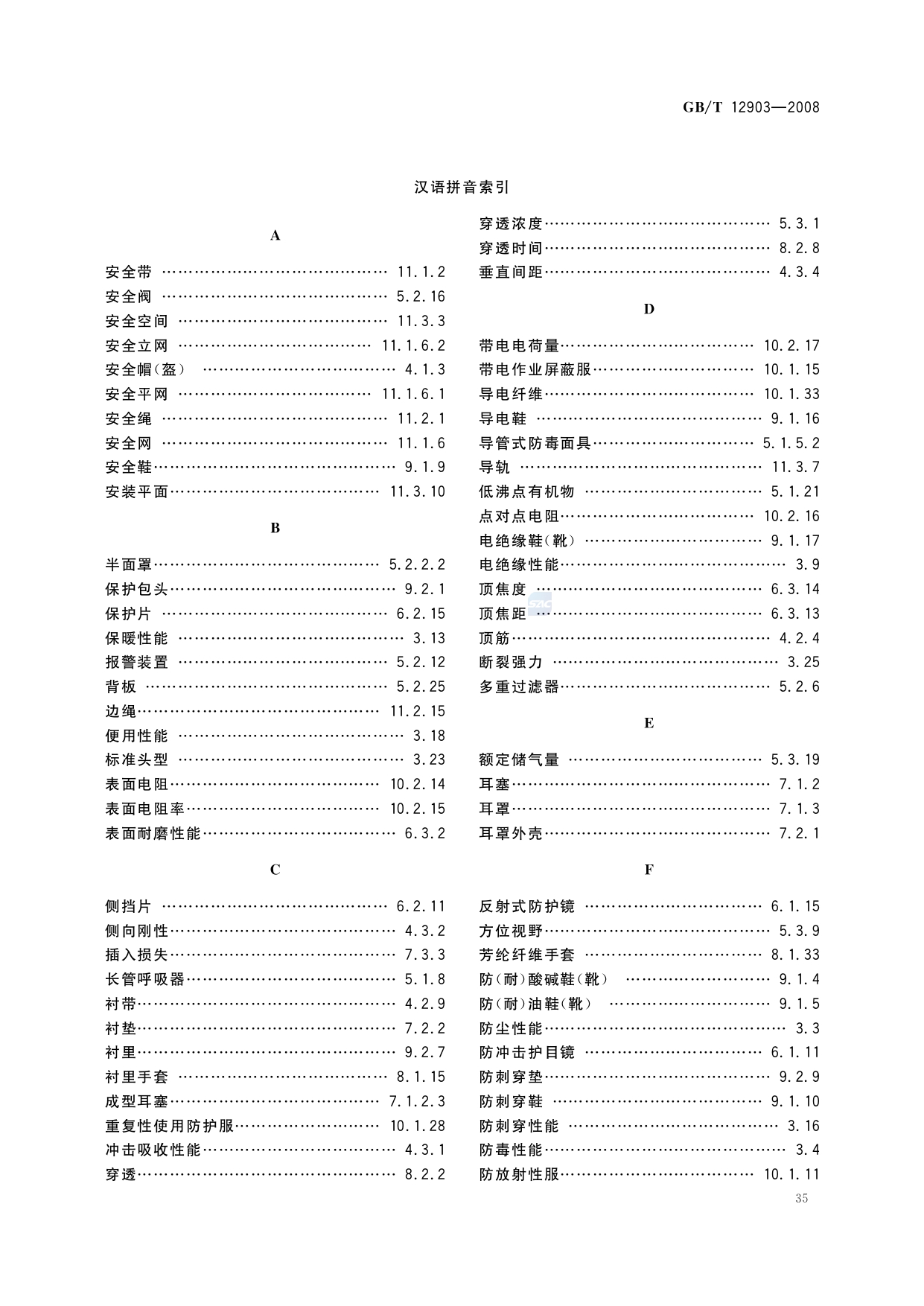 《个体防护装备术语》(GB/T12903-2008)
