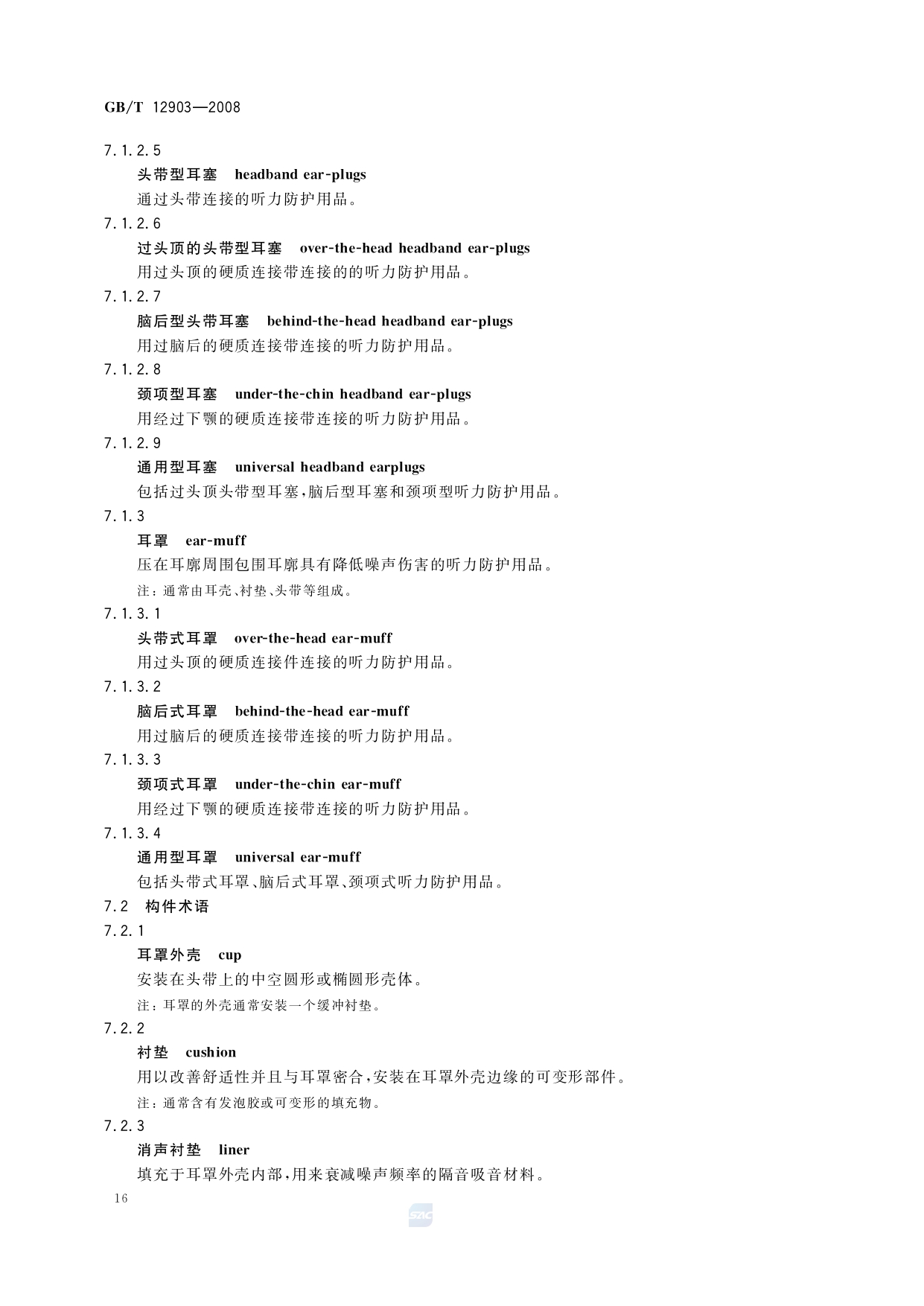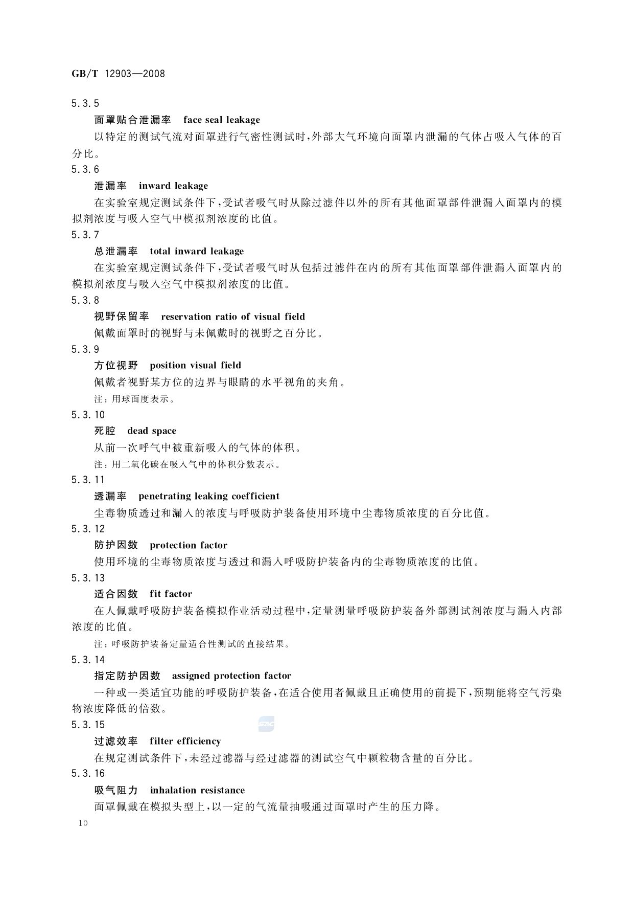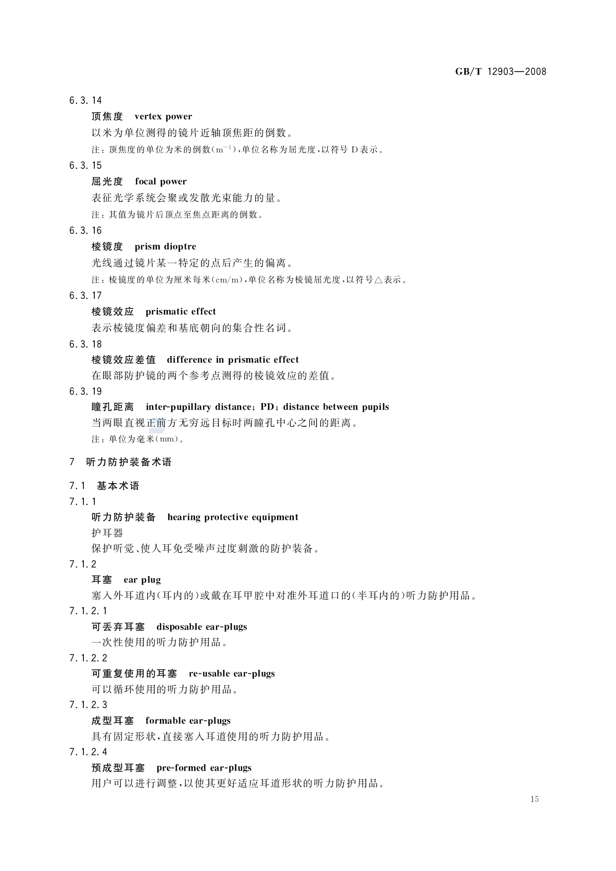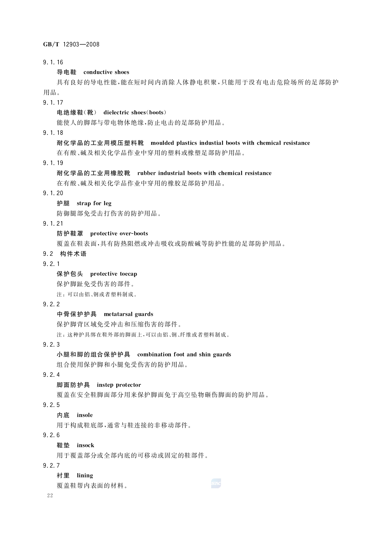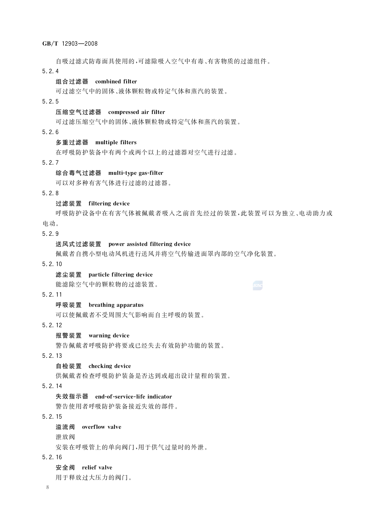 《个体防护装备术语》(GB/T12903-2008)
