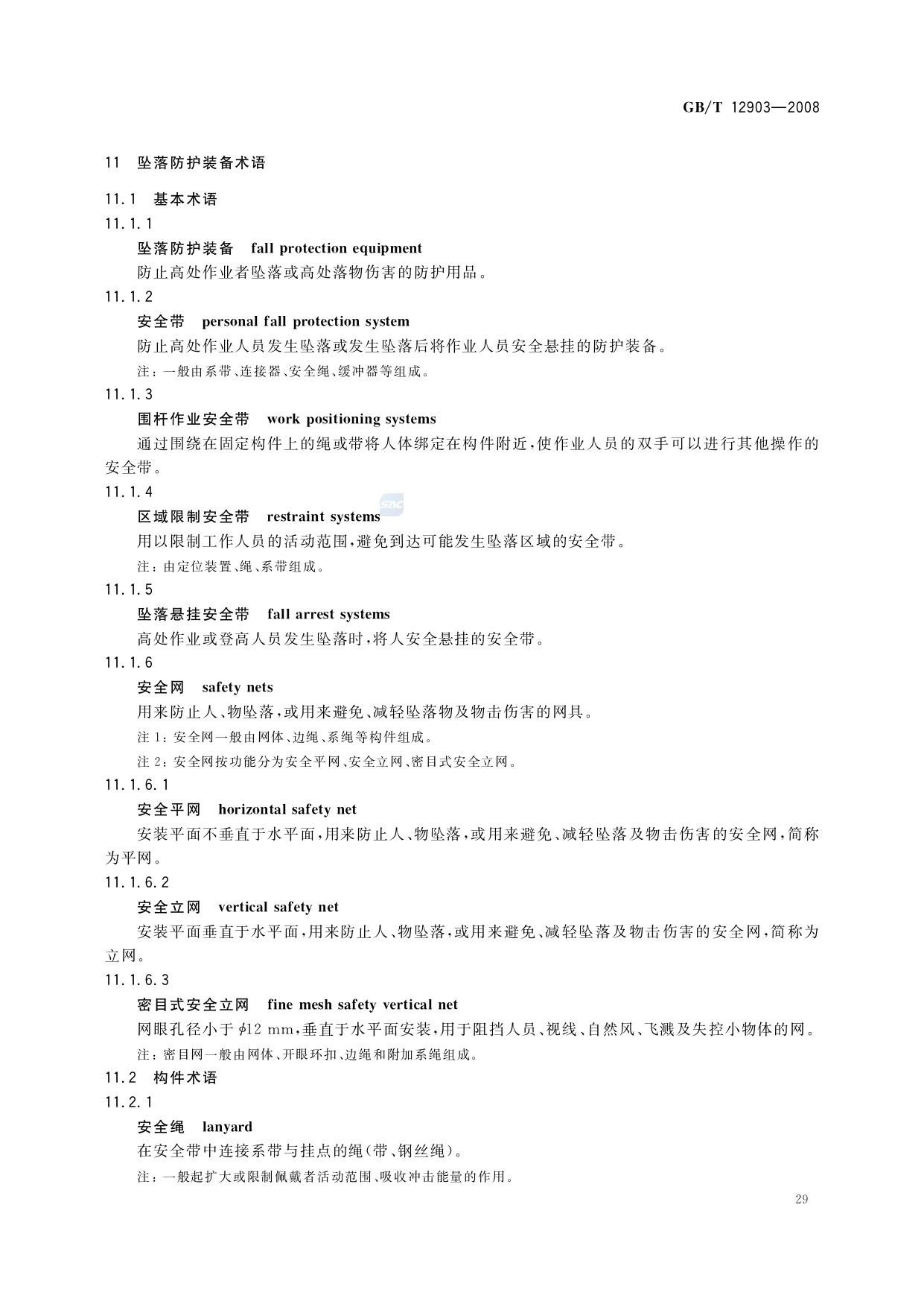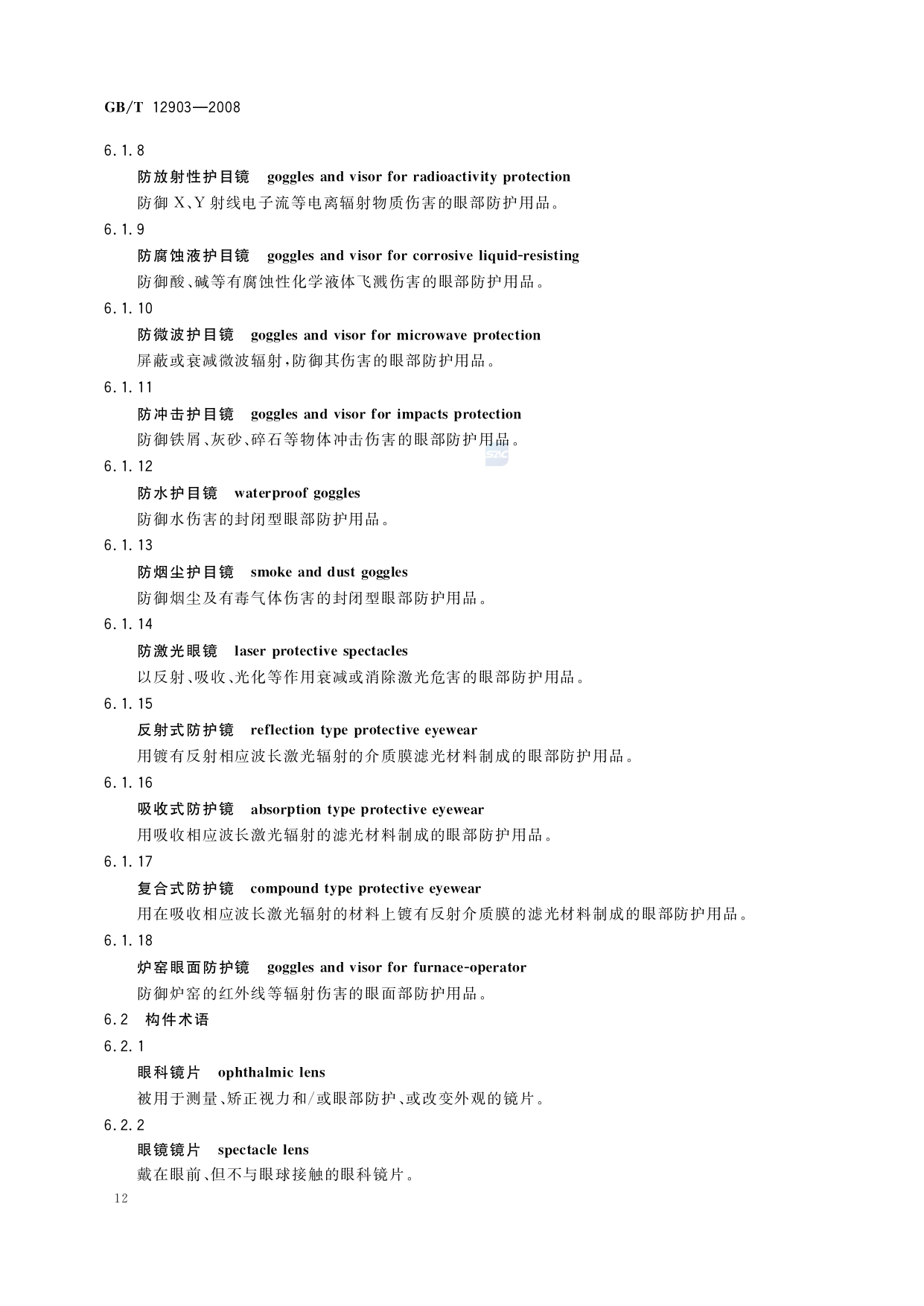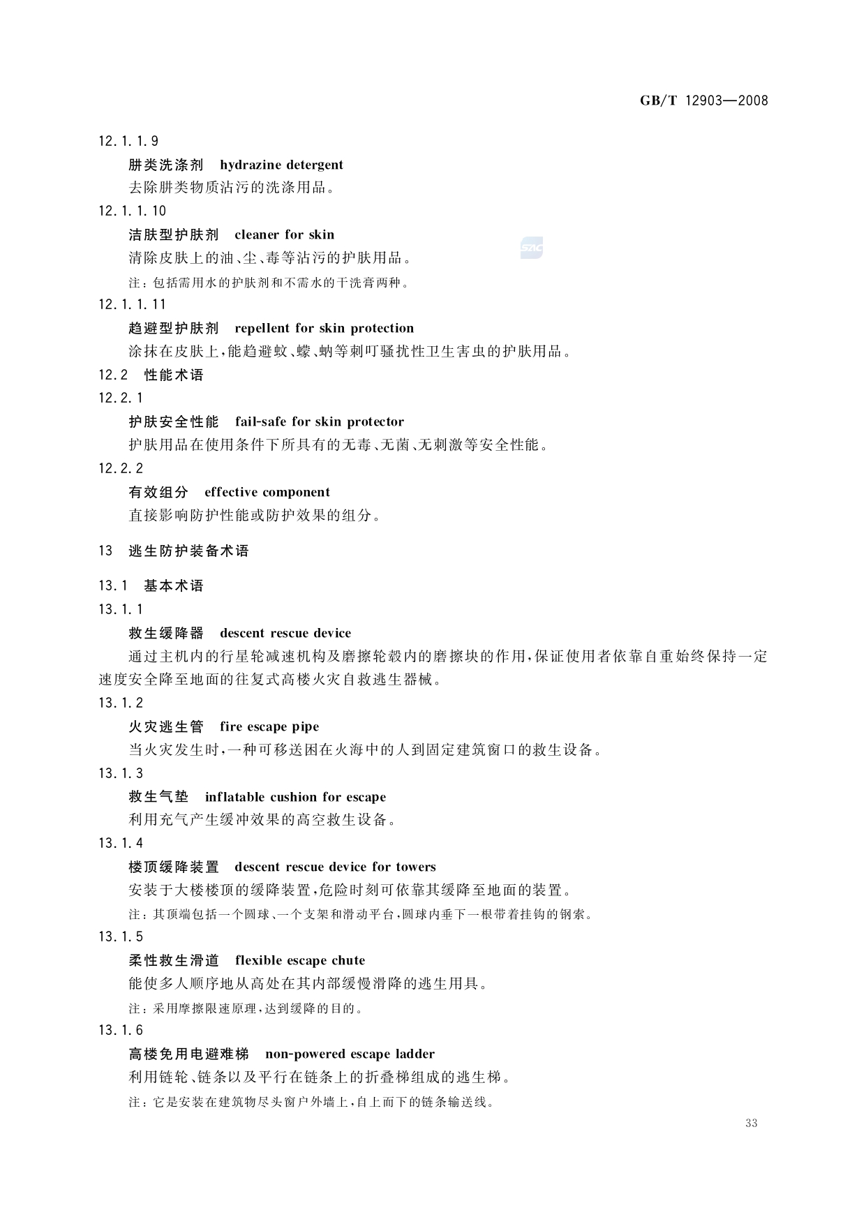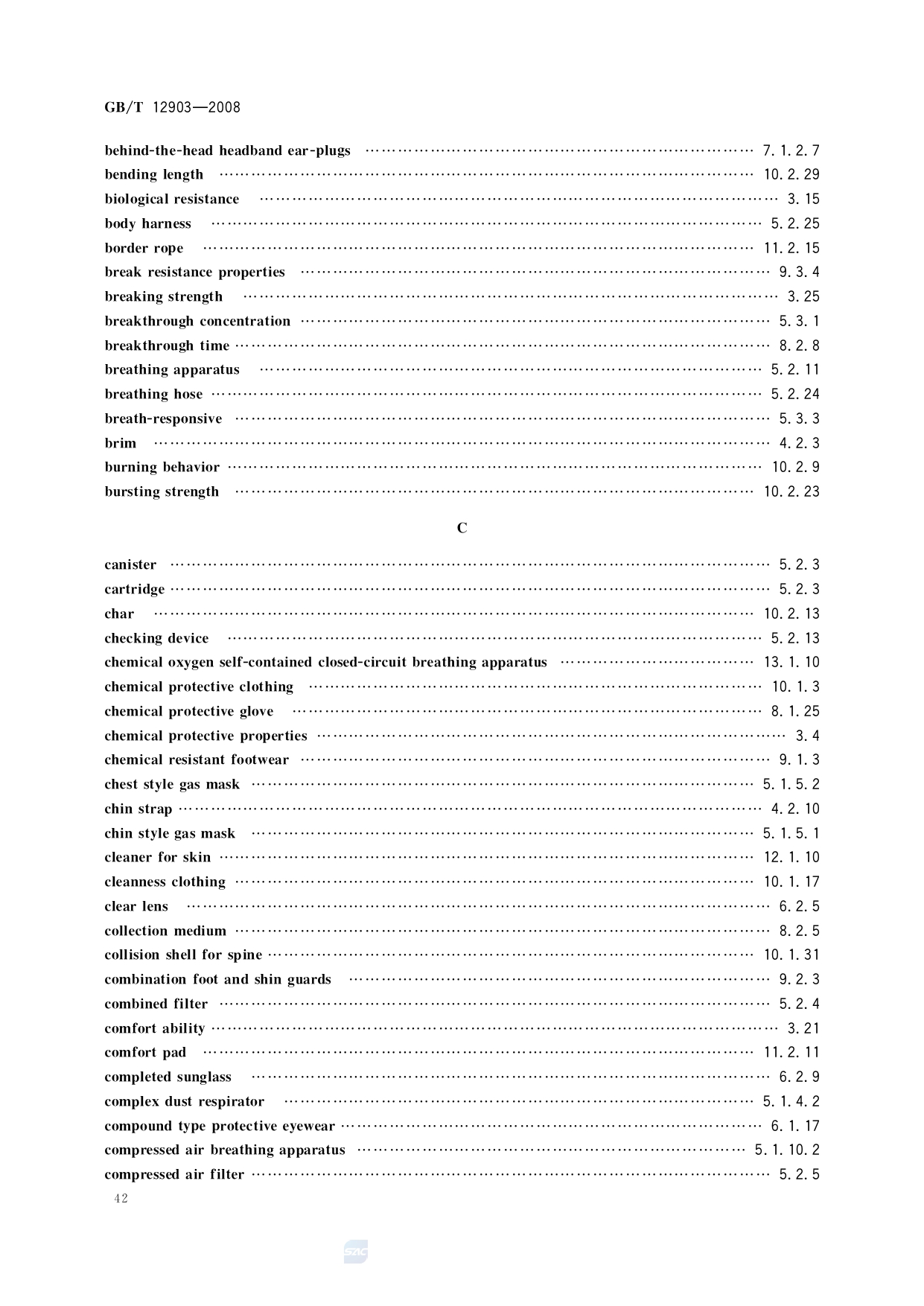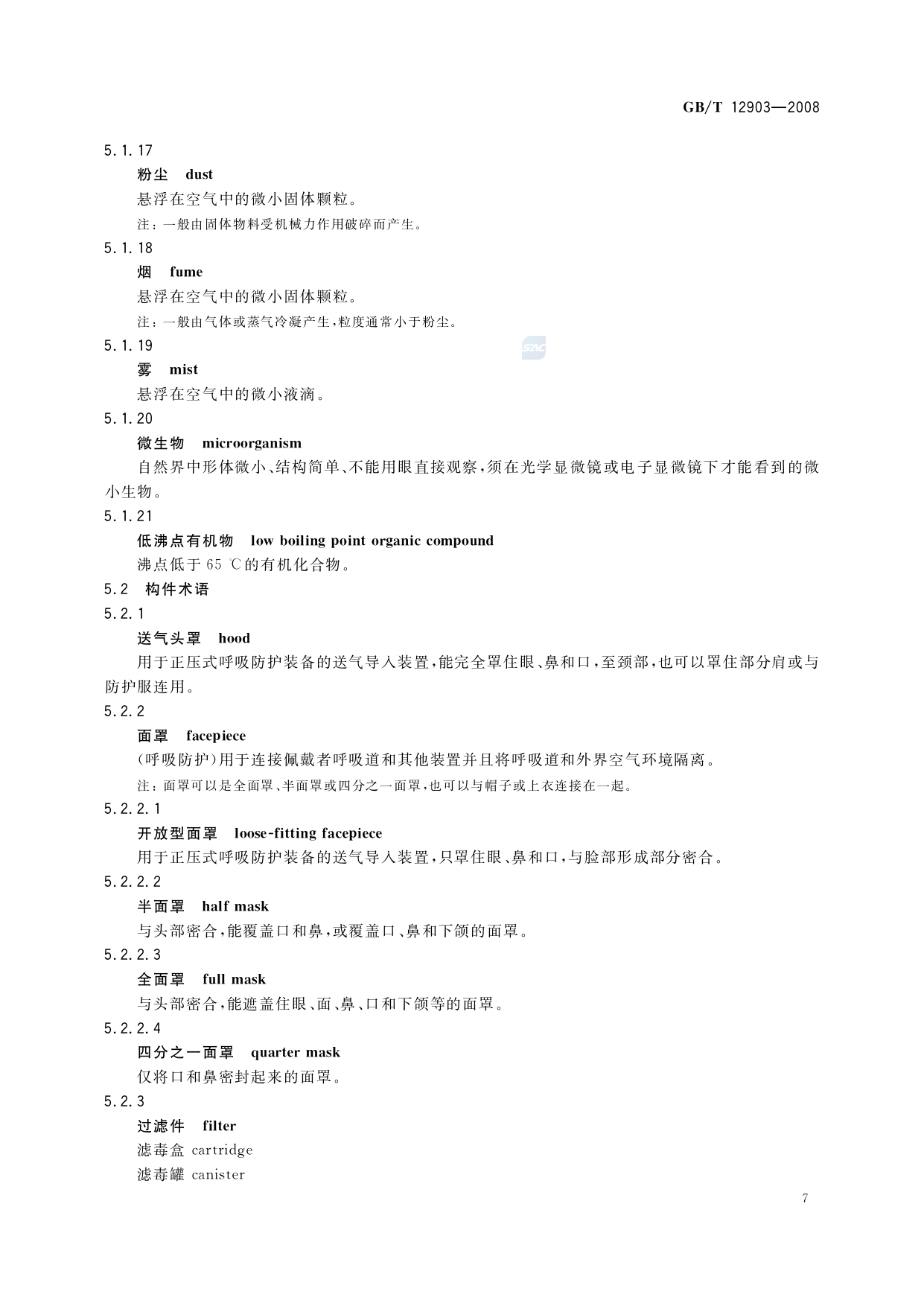 《个体防护装备术语》(GB/T12903-2008)