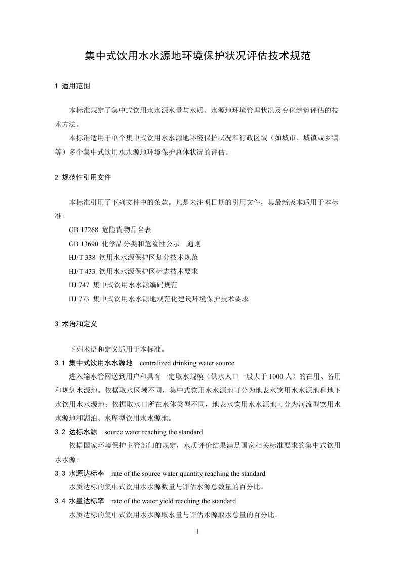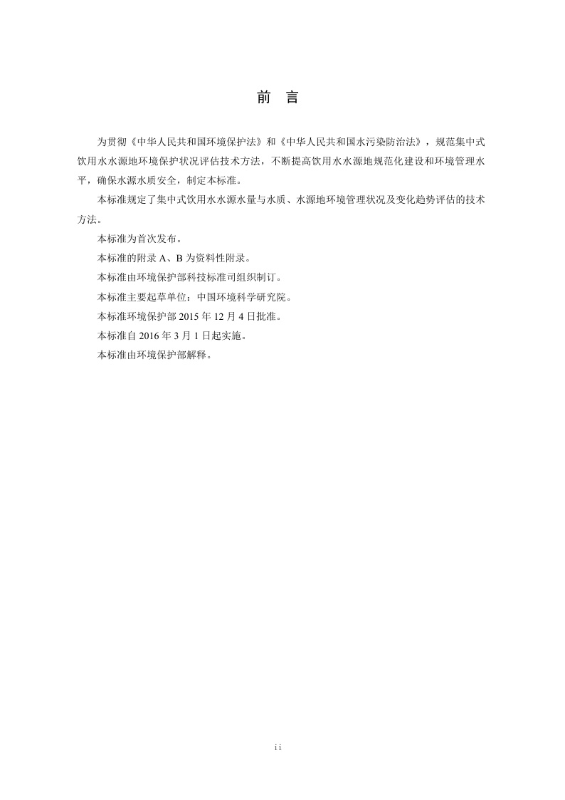 《集中式饮用水水源地环境保护状况评估技术规范》(HJ774-2015)
