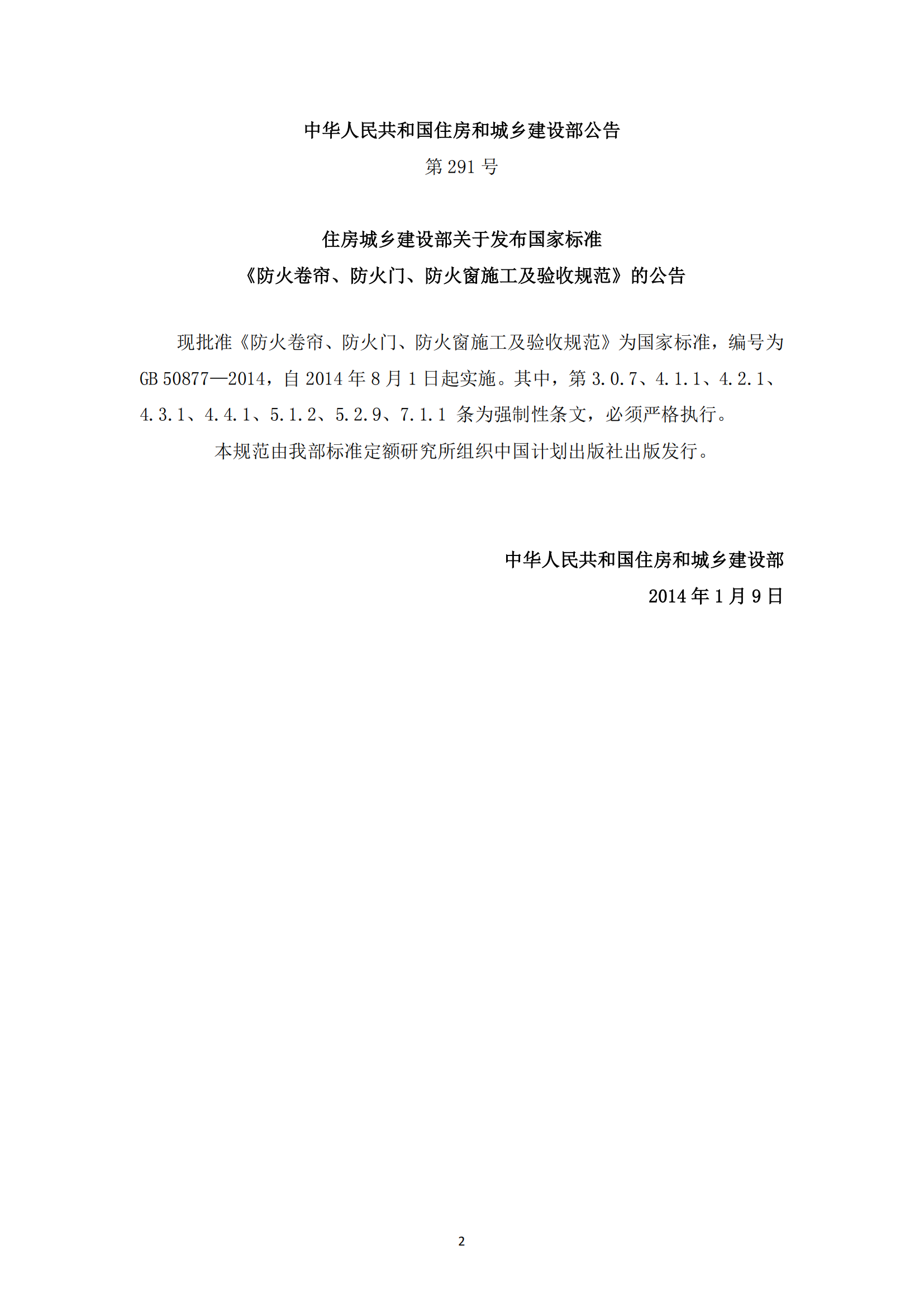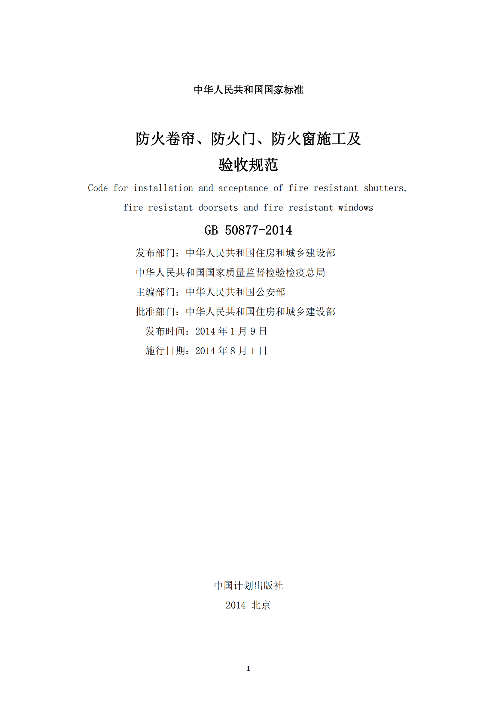 《防火卷帘、防火门、防火窗施工及验收规范》GB50877-2014