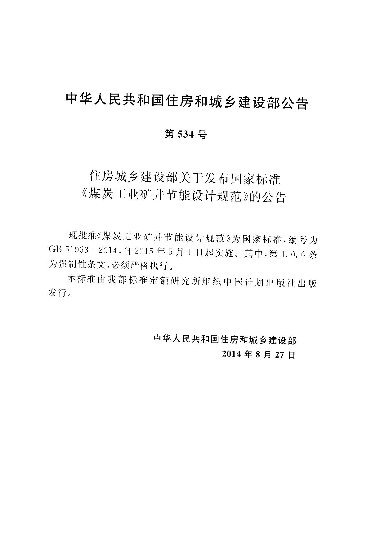 《煤炭工业矿井节能设计规范_节能保温规范》(GB51053-2014)