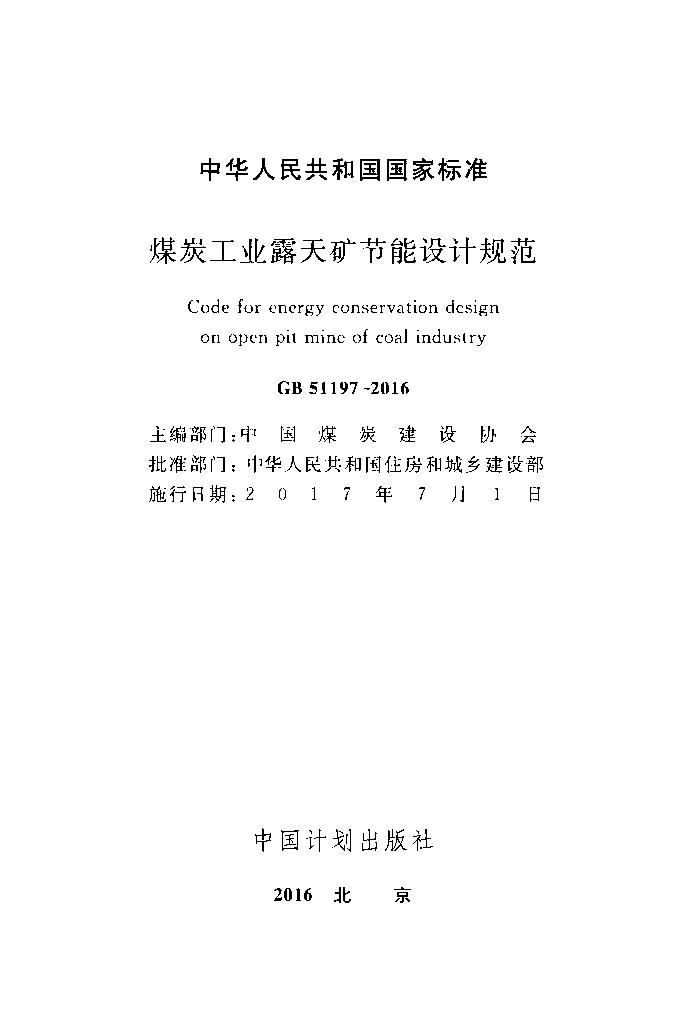 《煤炭工业露天矿节能设计规范》(GB51197-2016)