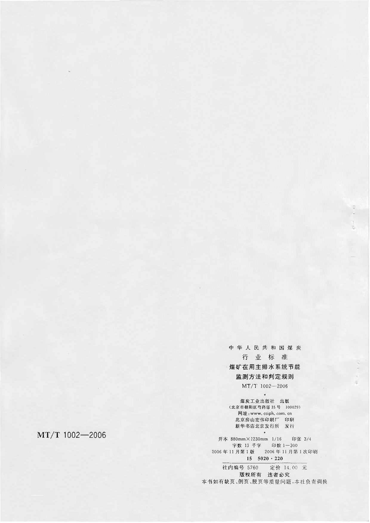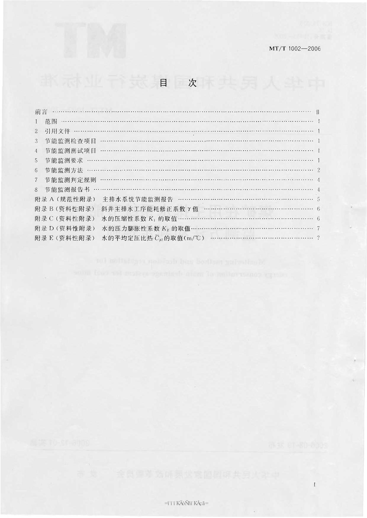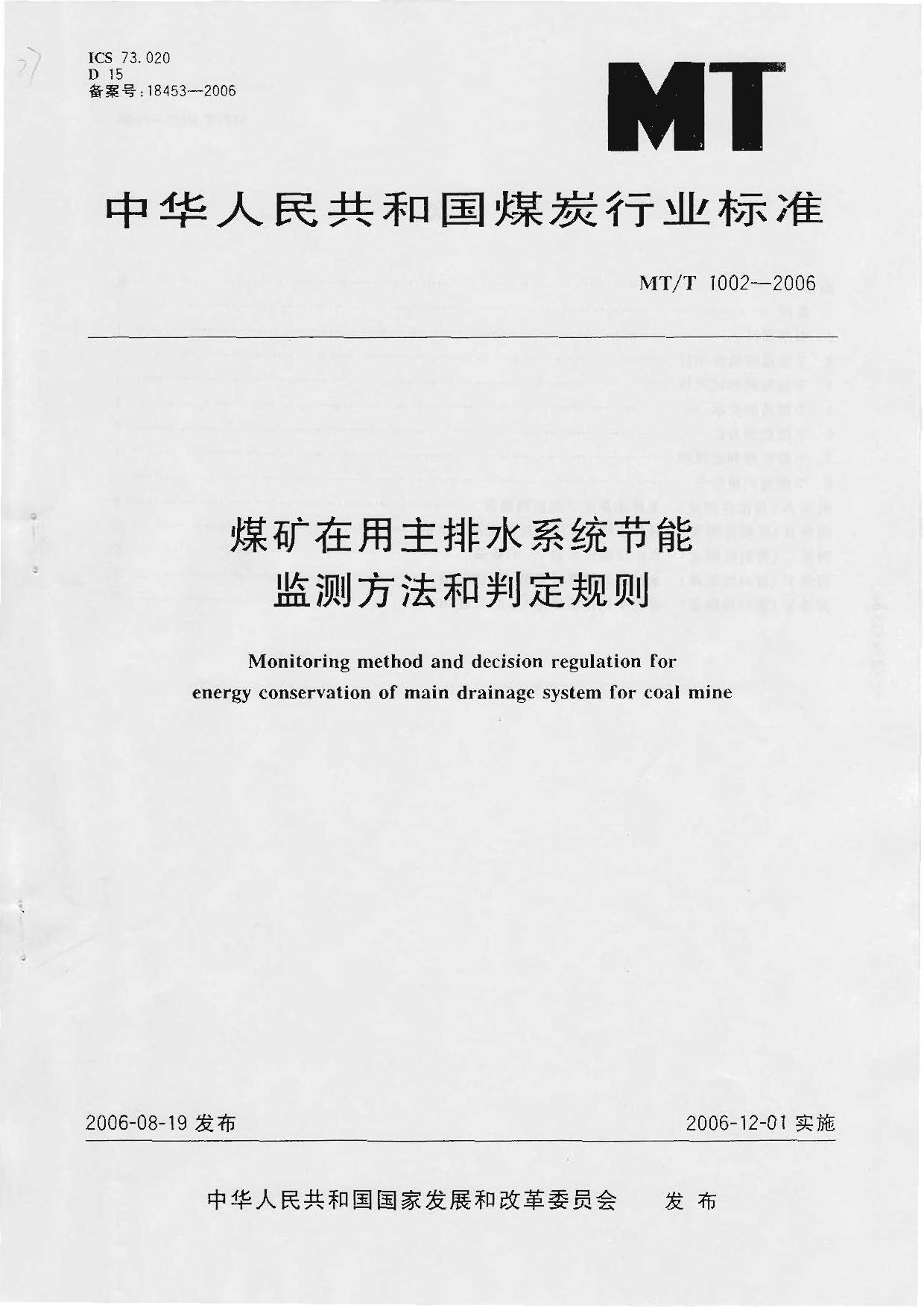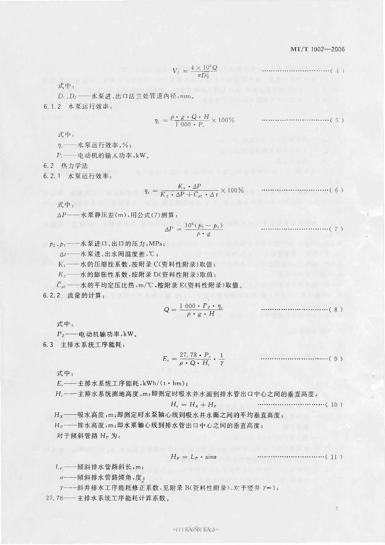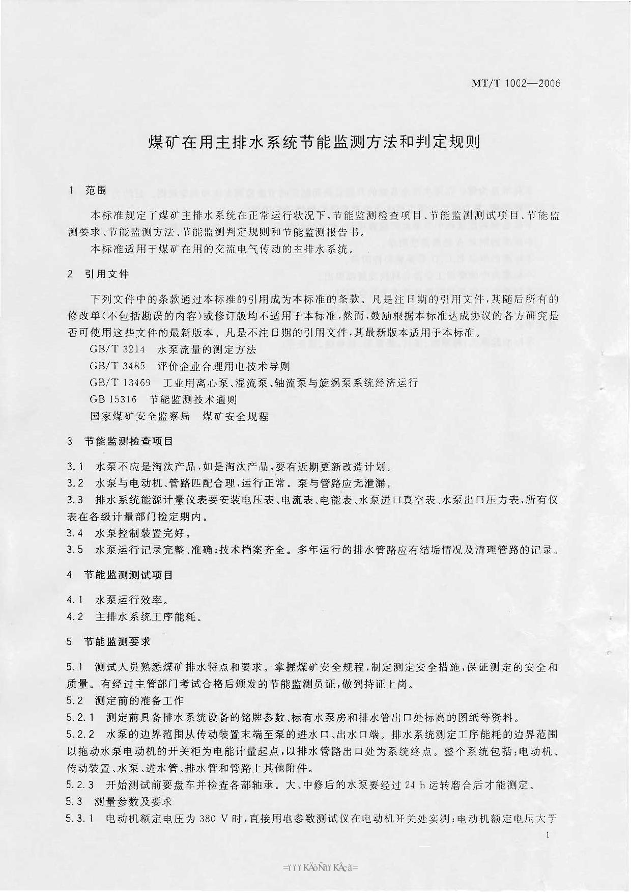 《煤矿在用主排水系统节能监测方法和判定规则》(MTT1002-2006)