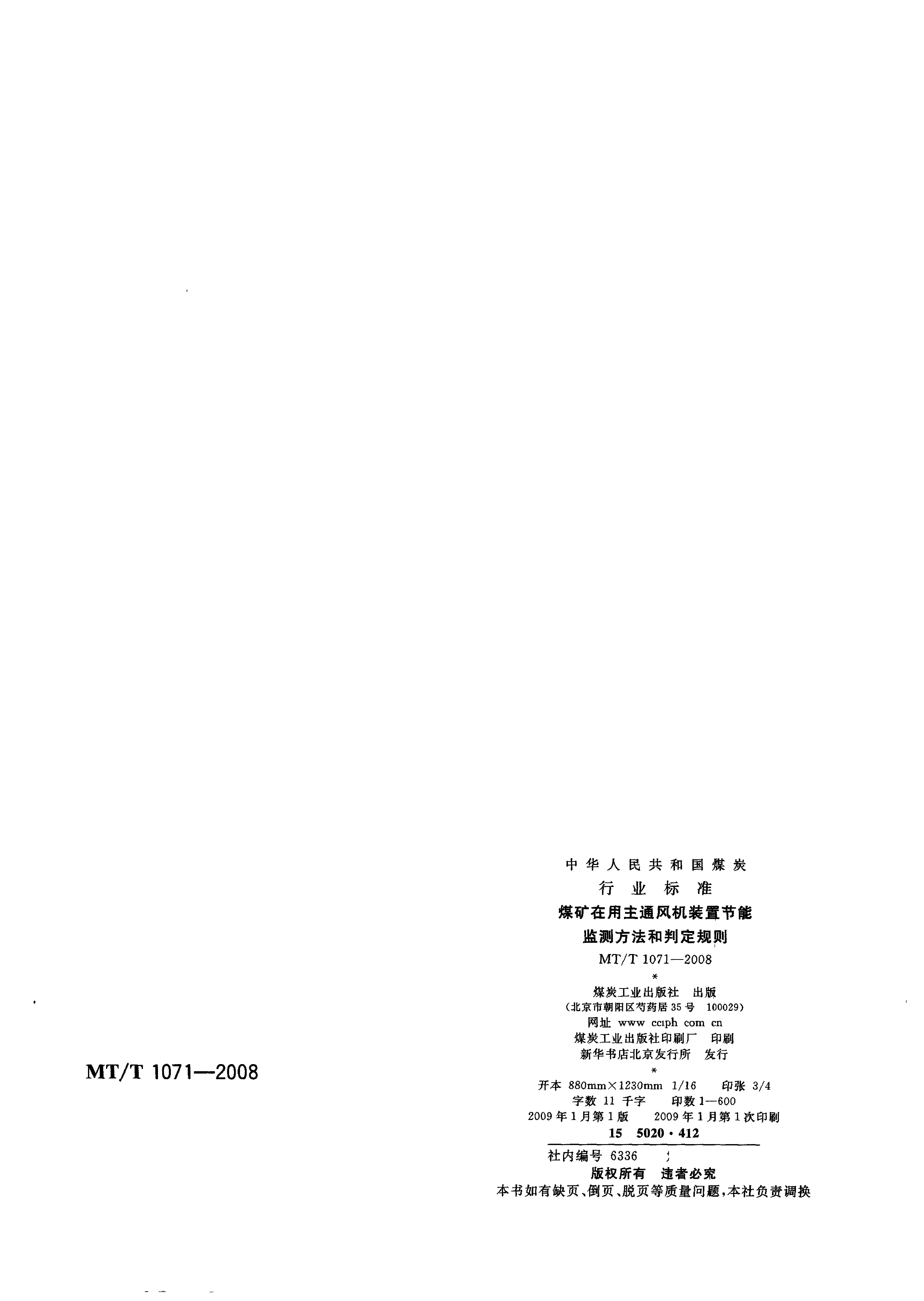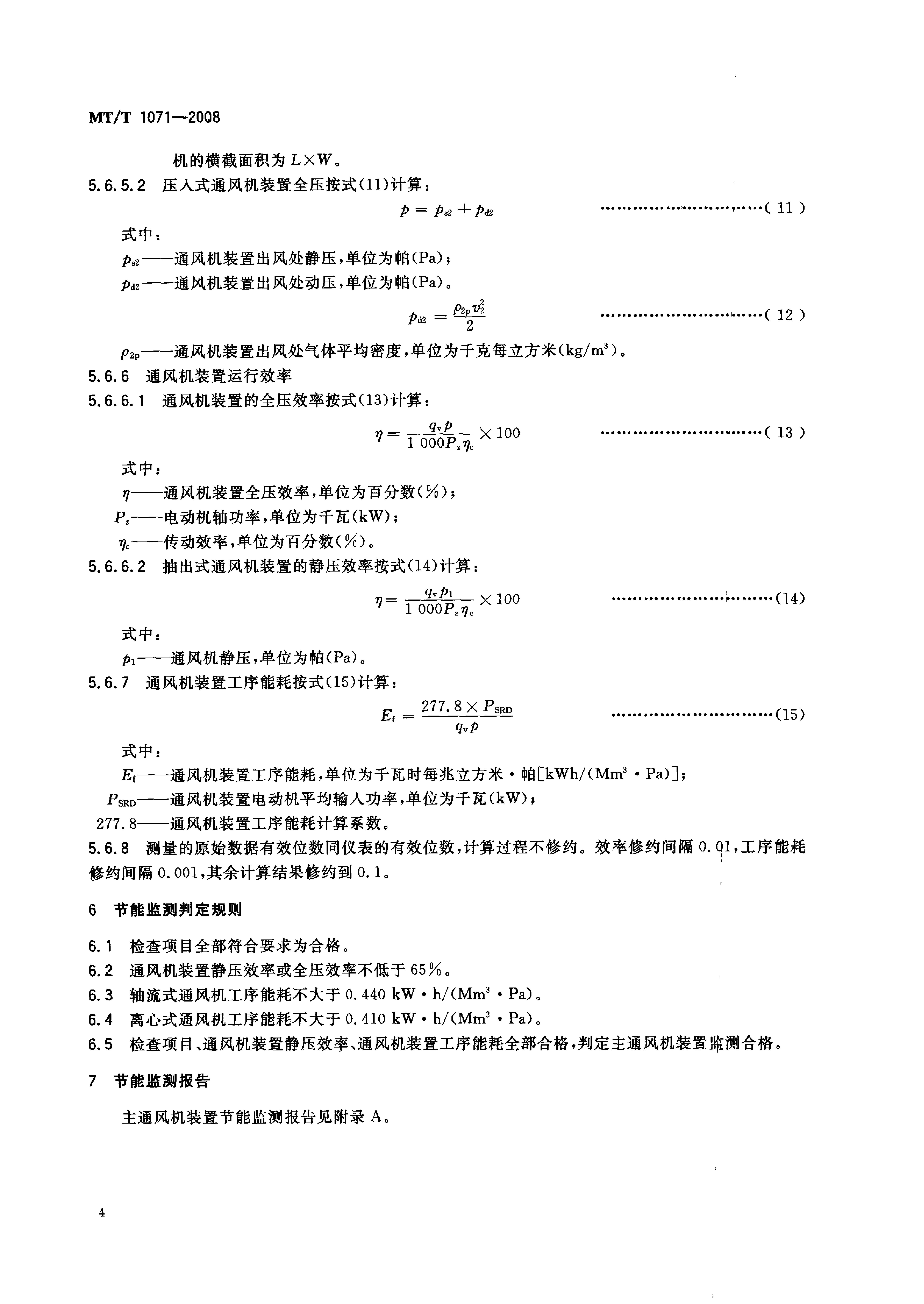 《煤矿在用主通风机装置节能监测方法和判定规则》(MTT1071-2008)