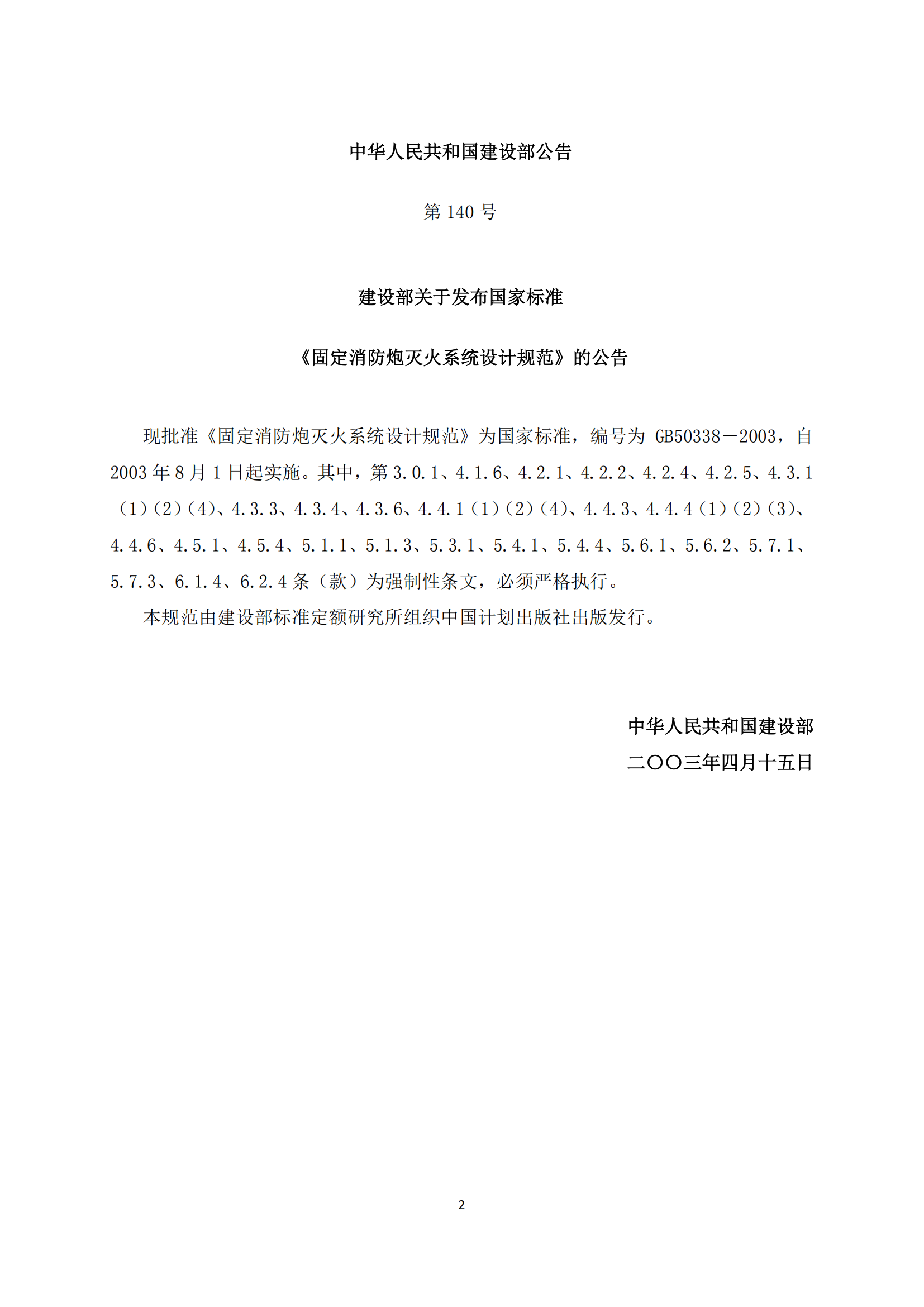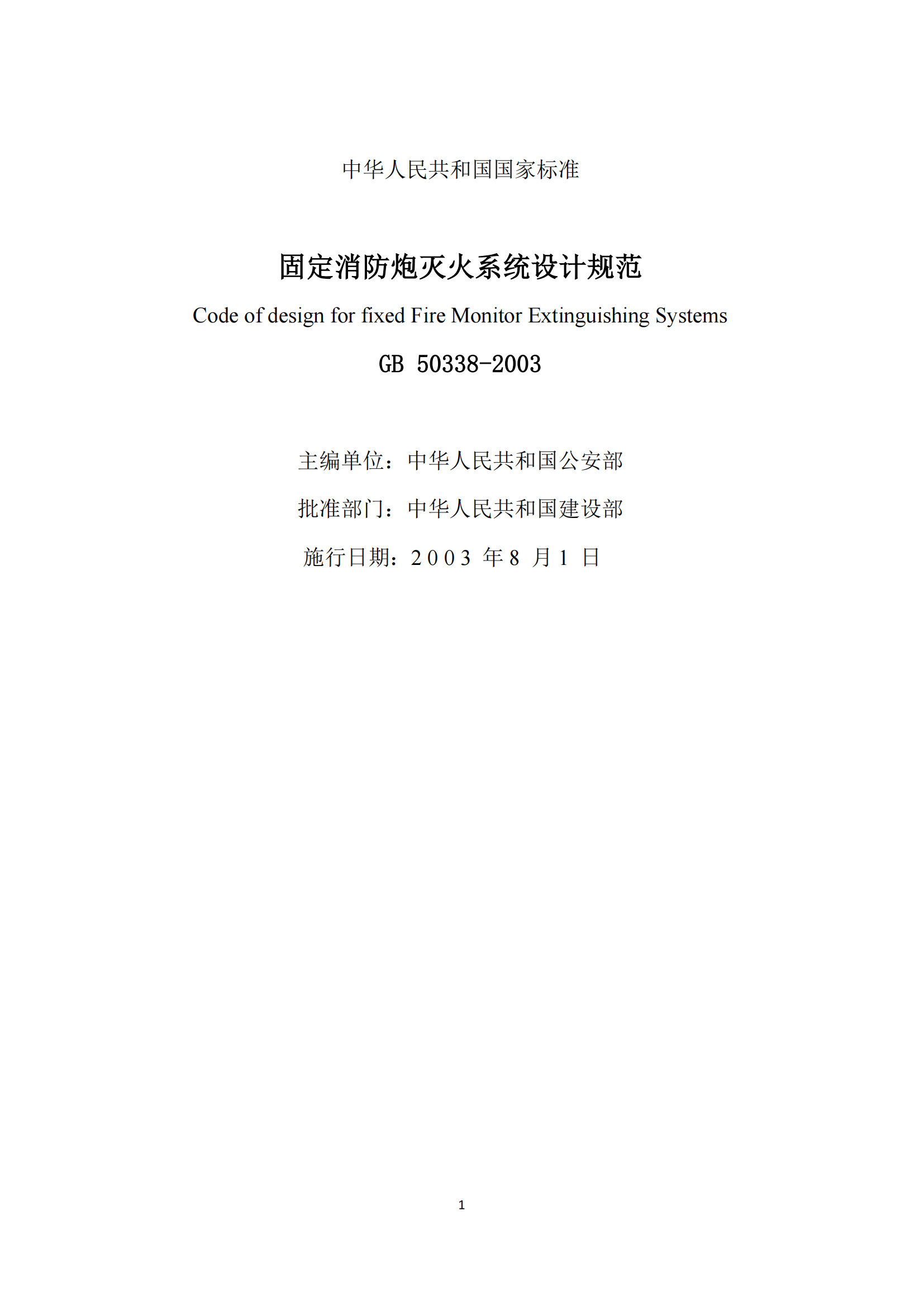 《固定消防炮灭火系统设计规范》GB50338-2003