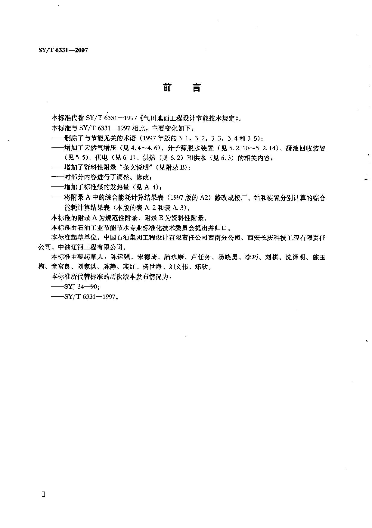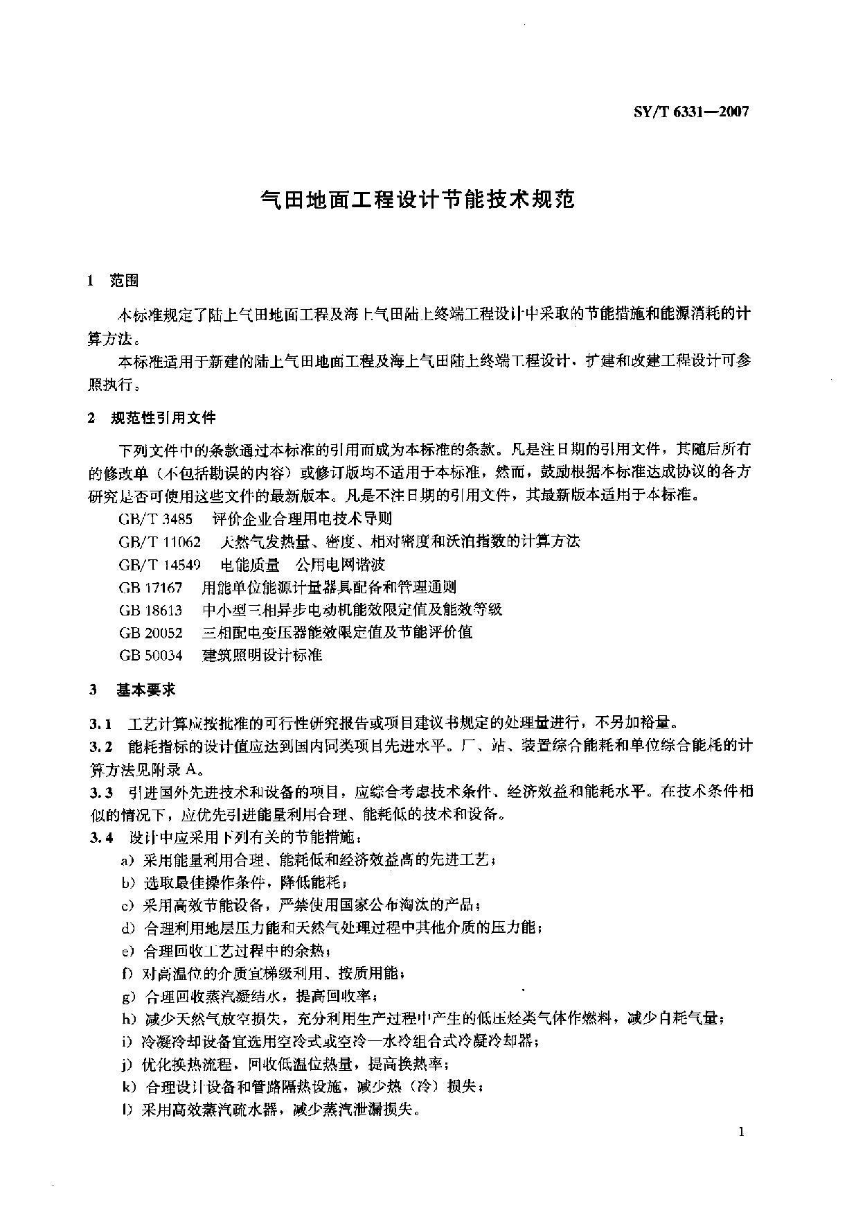 《气田地面工程设计节能技术规范》(SYT6331-2007)