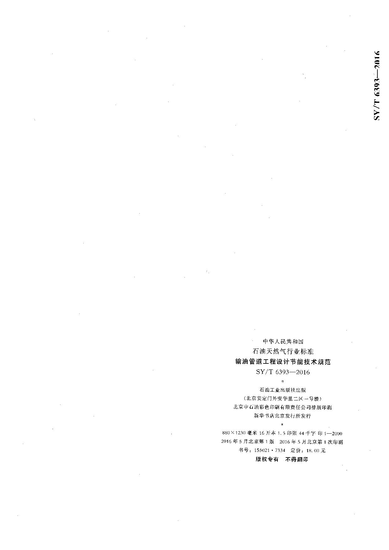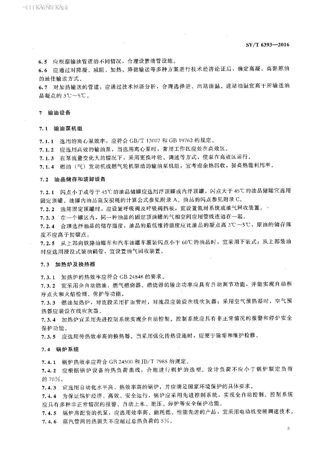 《输油管道工程设计节能技术规范》(SYT6393-2016)