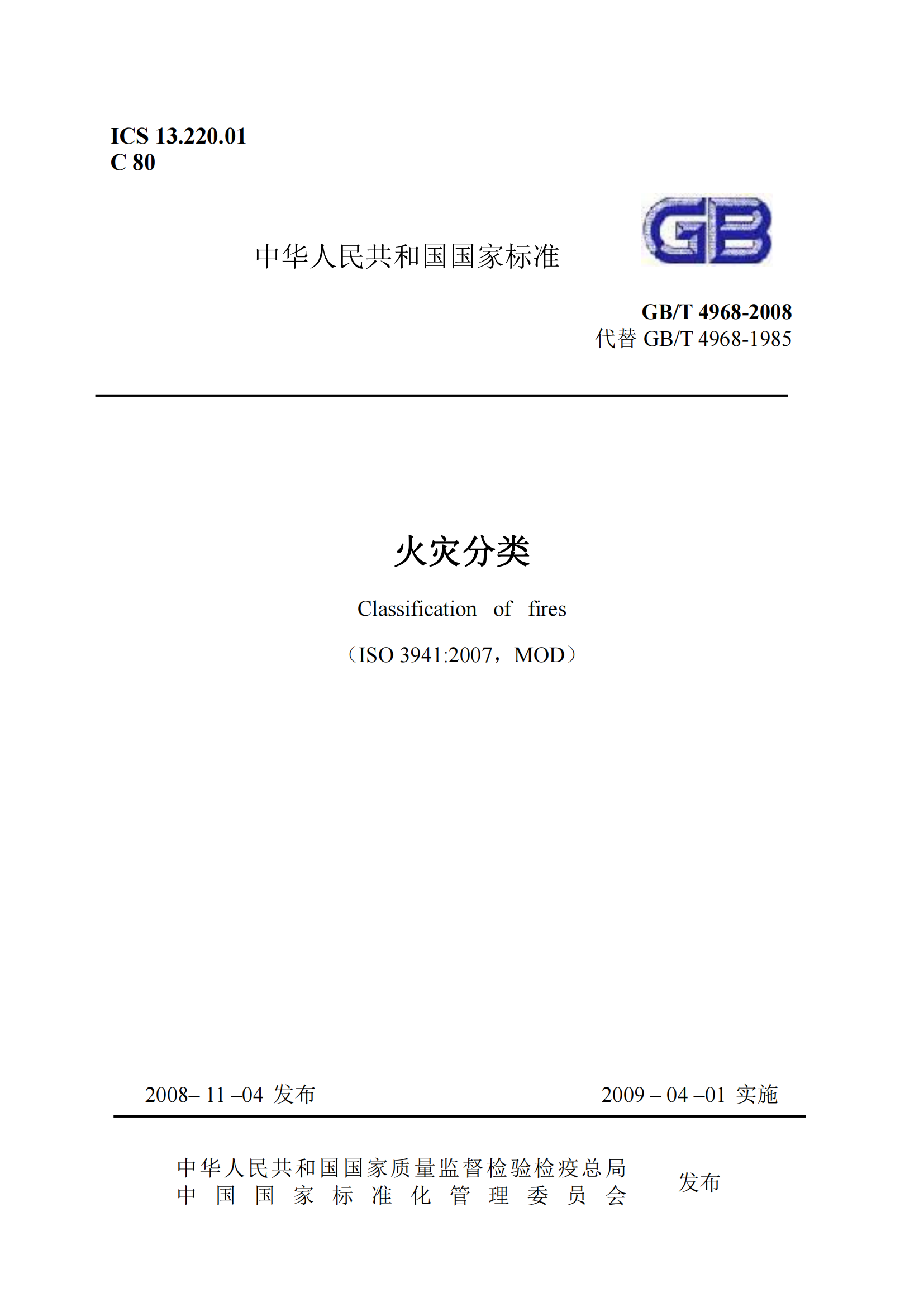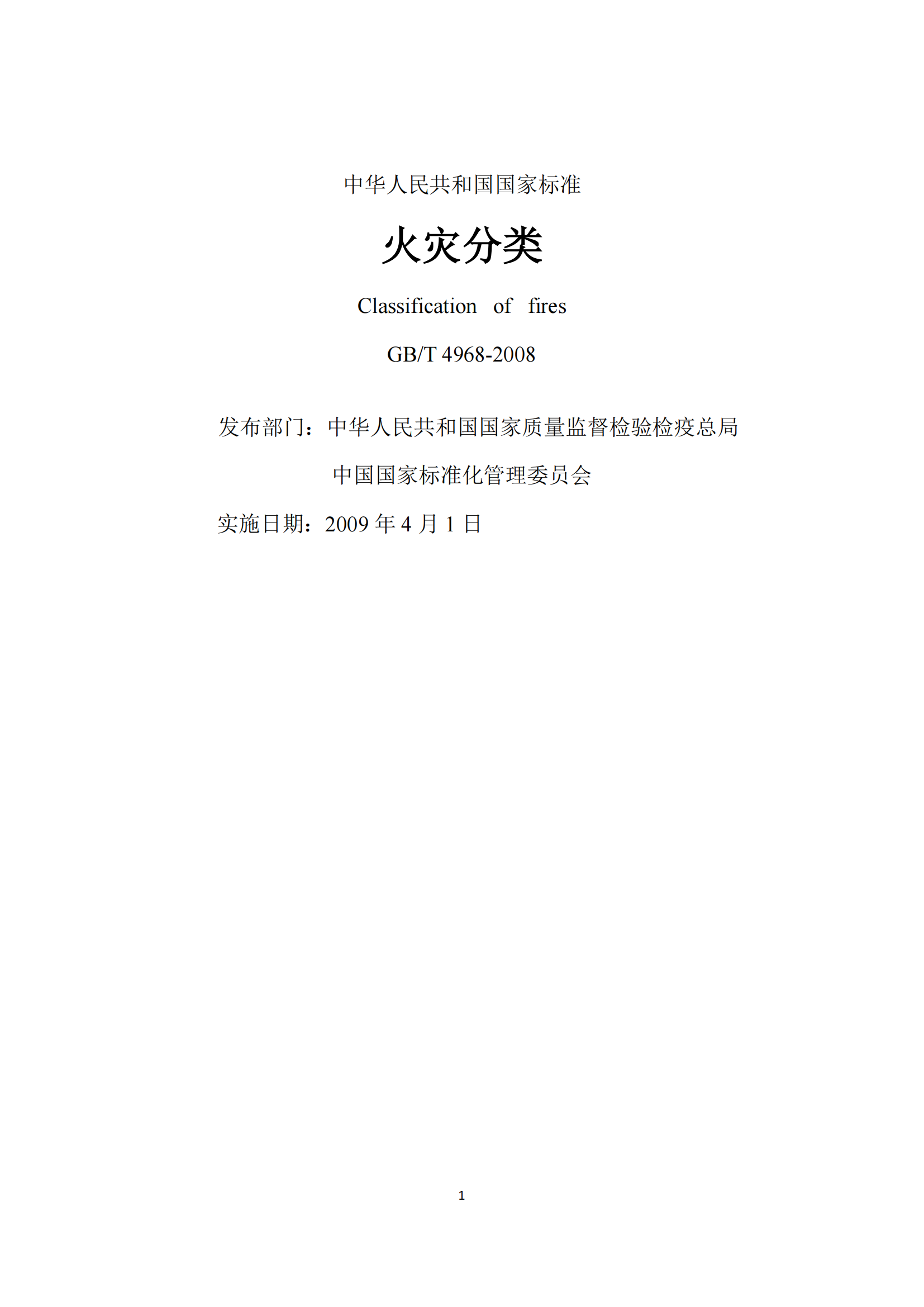《火灾分类》GBT4968-2008