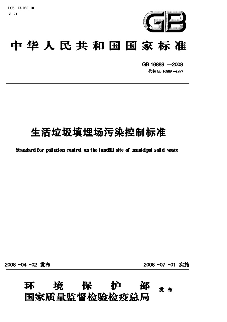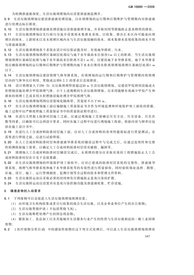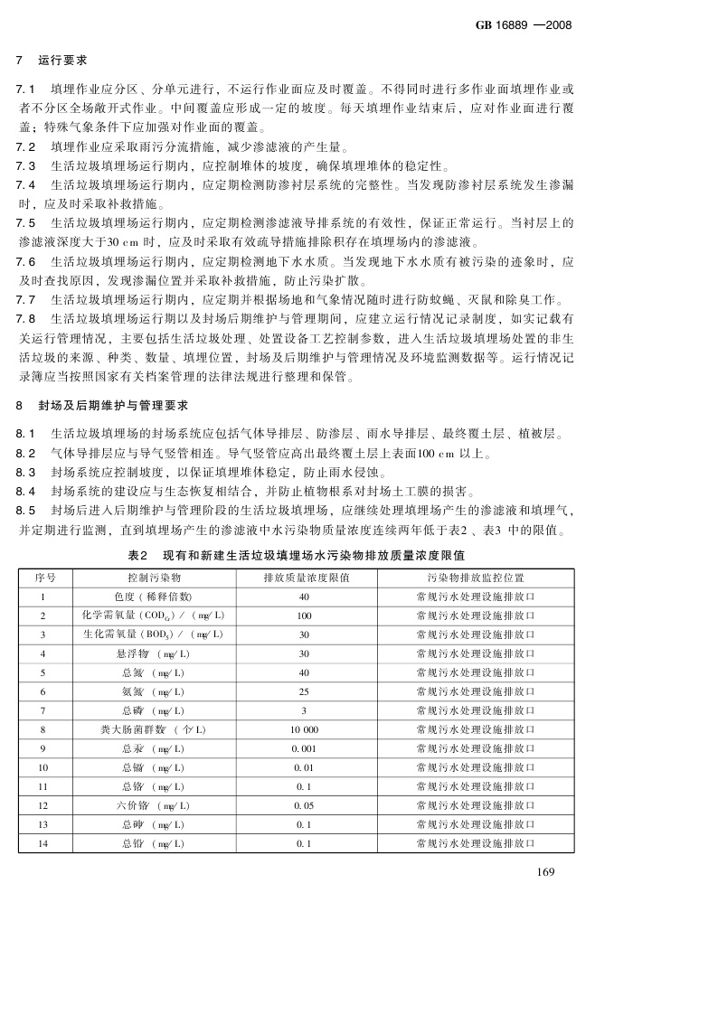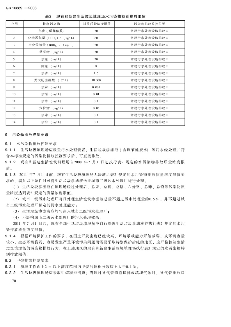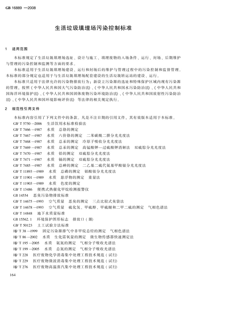《生活垃圾填埋污染控制标准》(GB16889-2008)