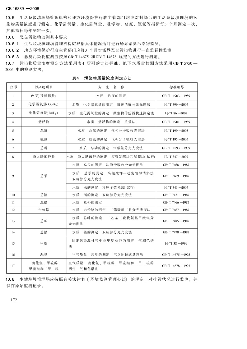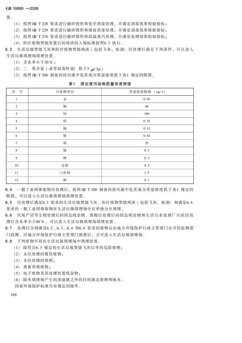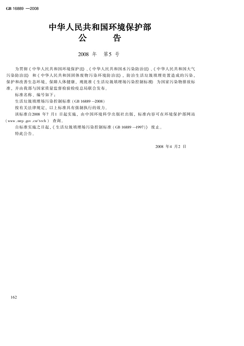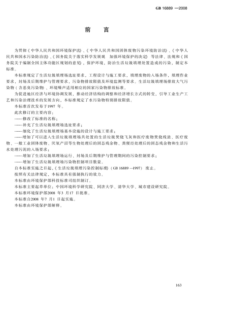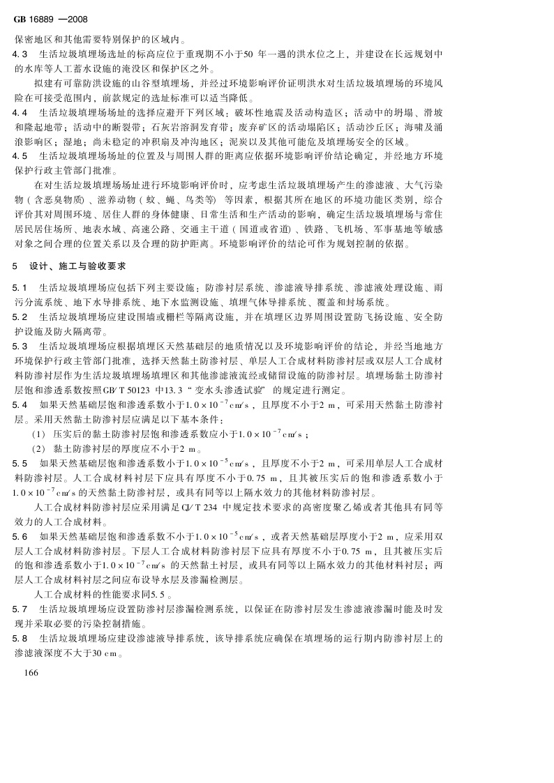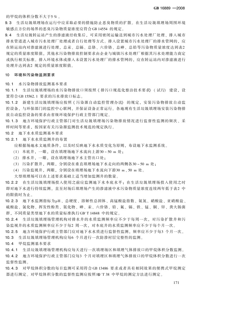 《生活垃圾填埋污染控制标准》(GB16889-2008)