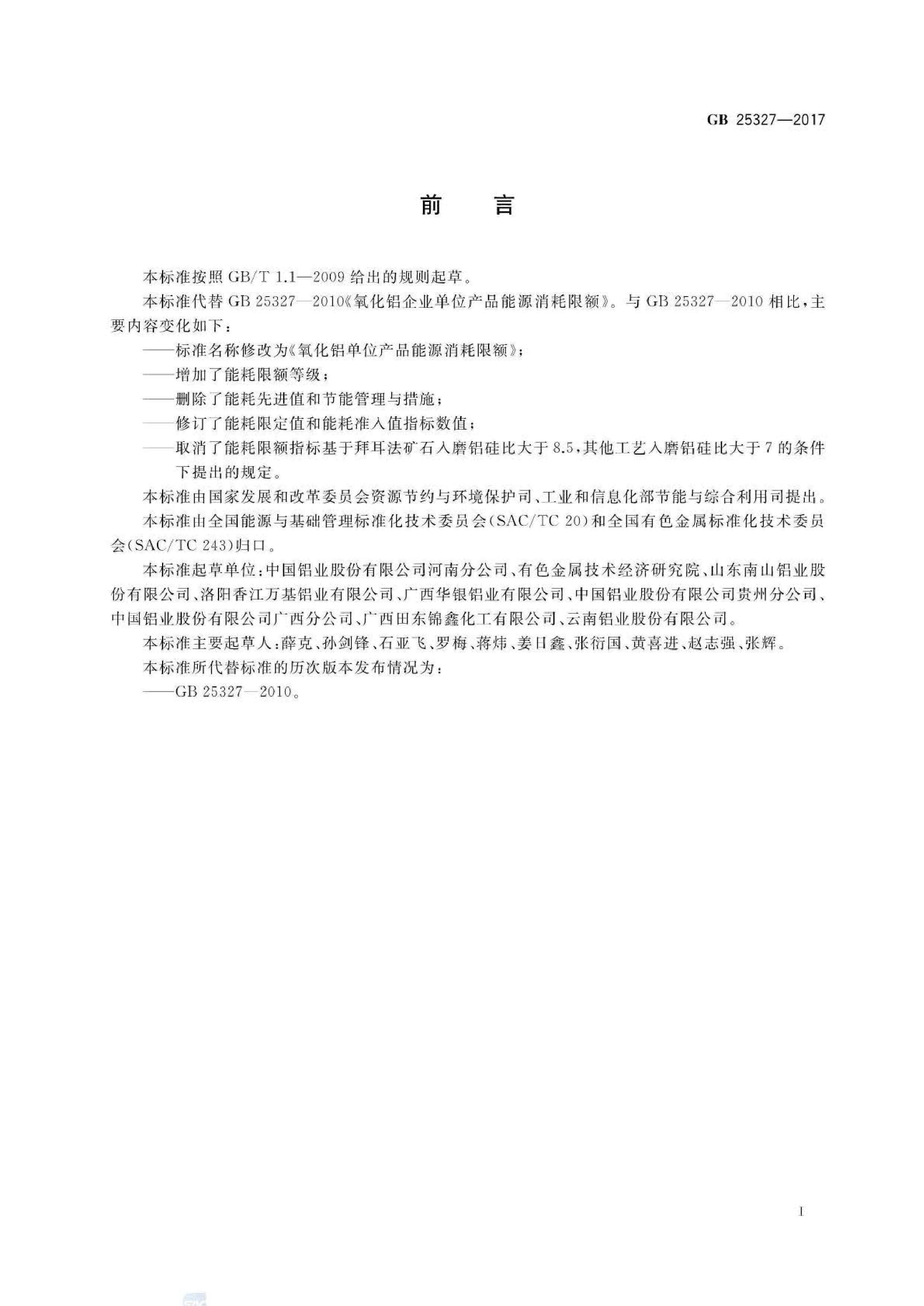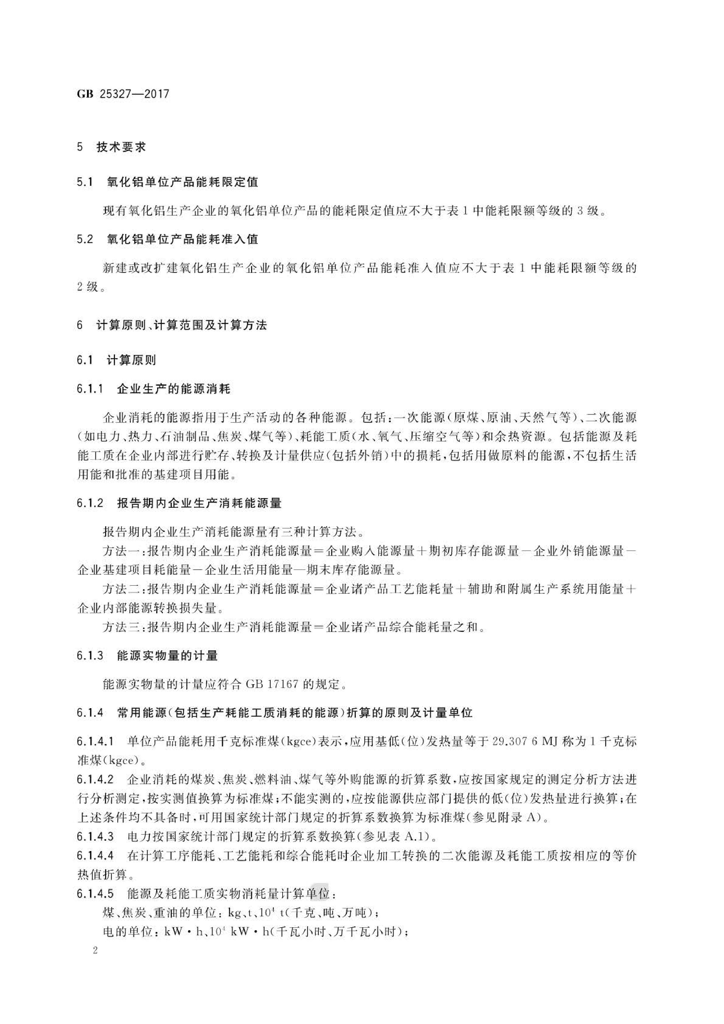 《氧化铝单位产品能源消耗限额》(GB25327-2017)