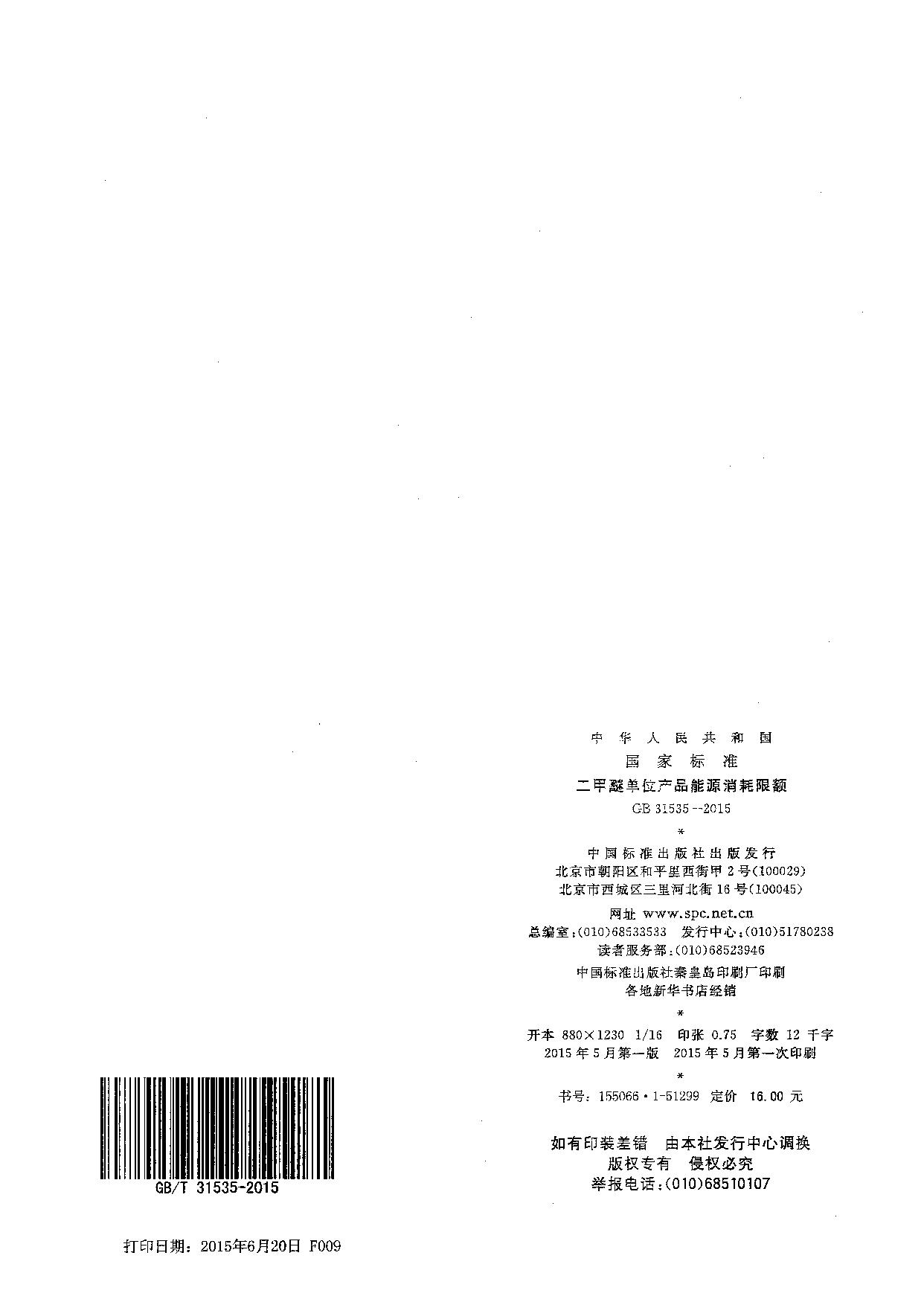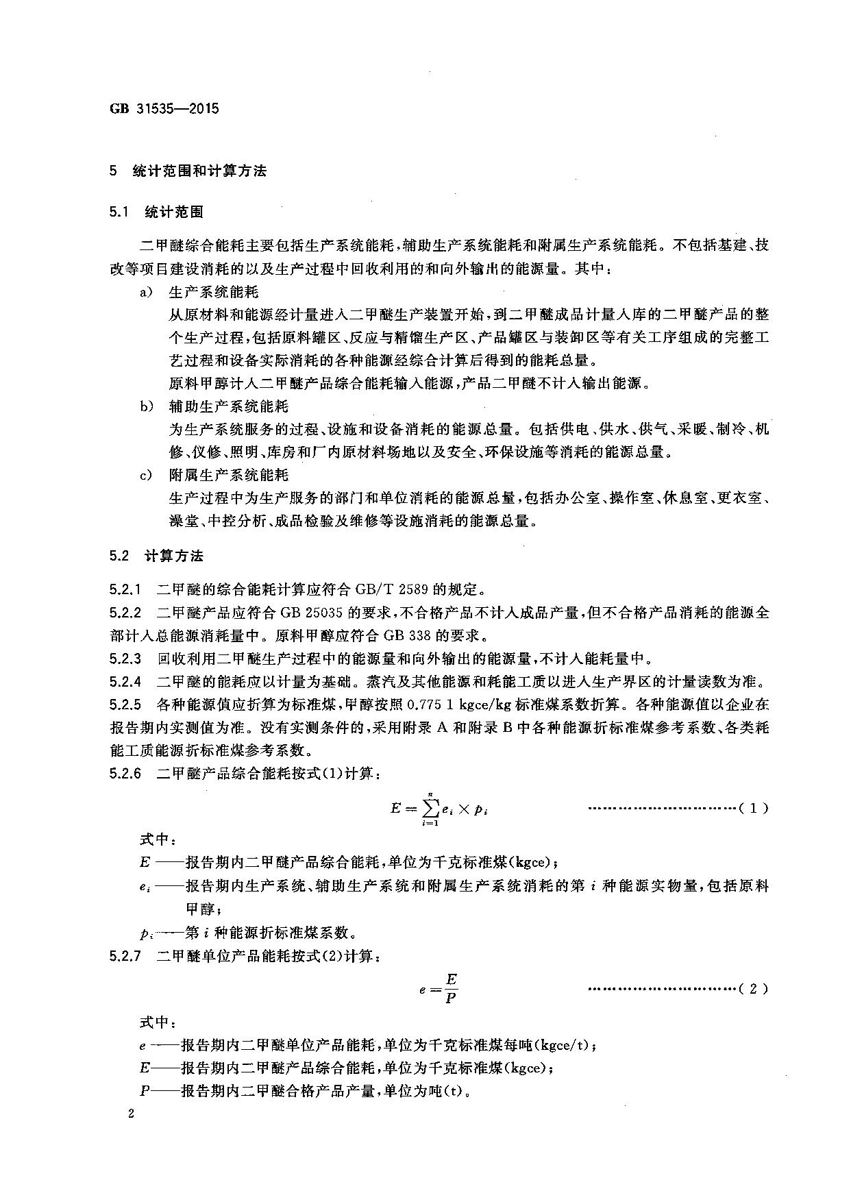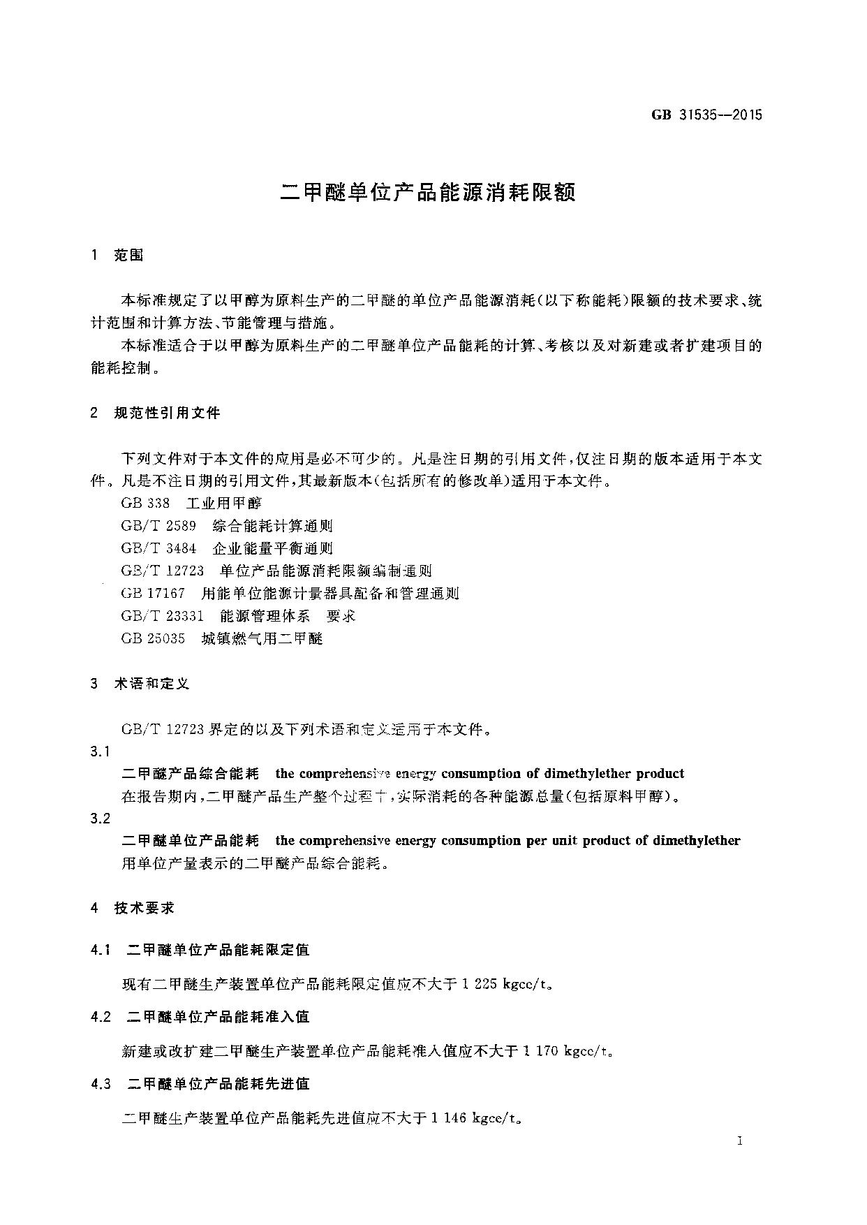 《二甲醚单位产品能源消耗限额》(GB31535-2015)