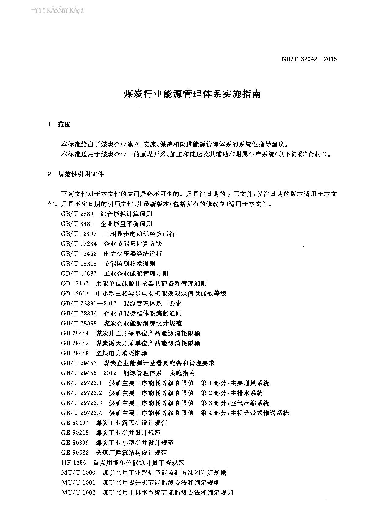 《煤炭行业能源管理体系实施指南》(GBT32042-2015)