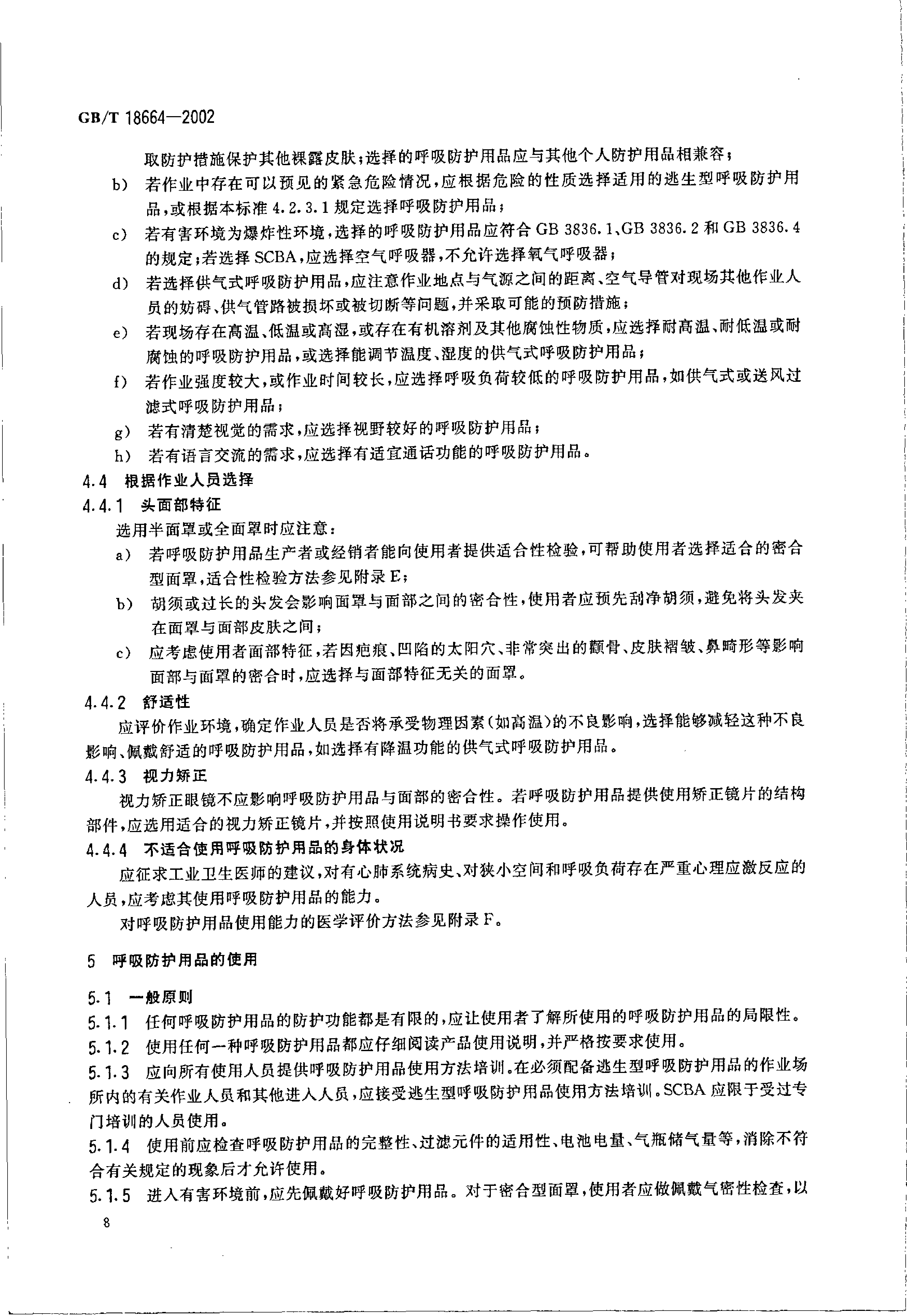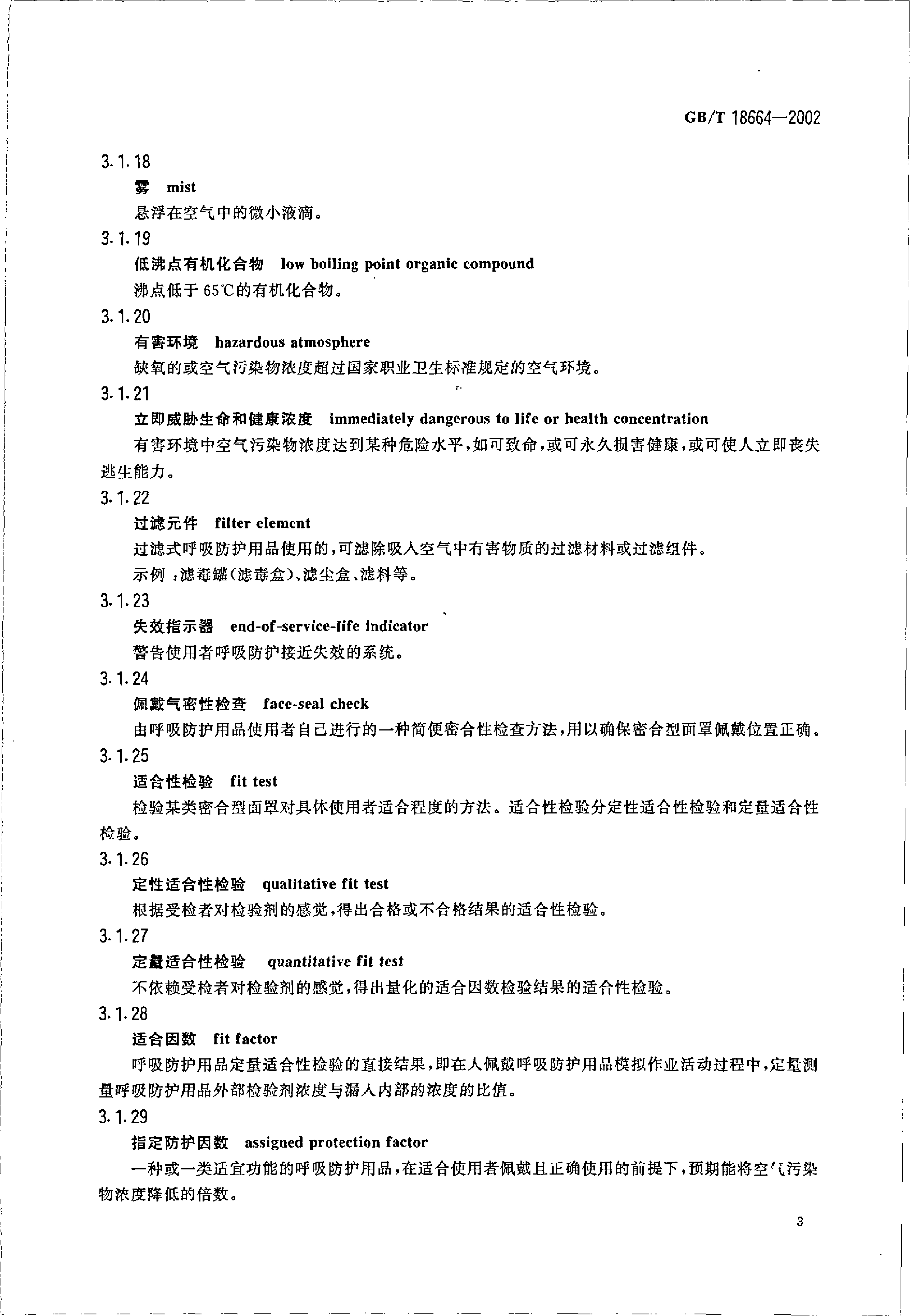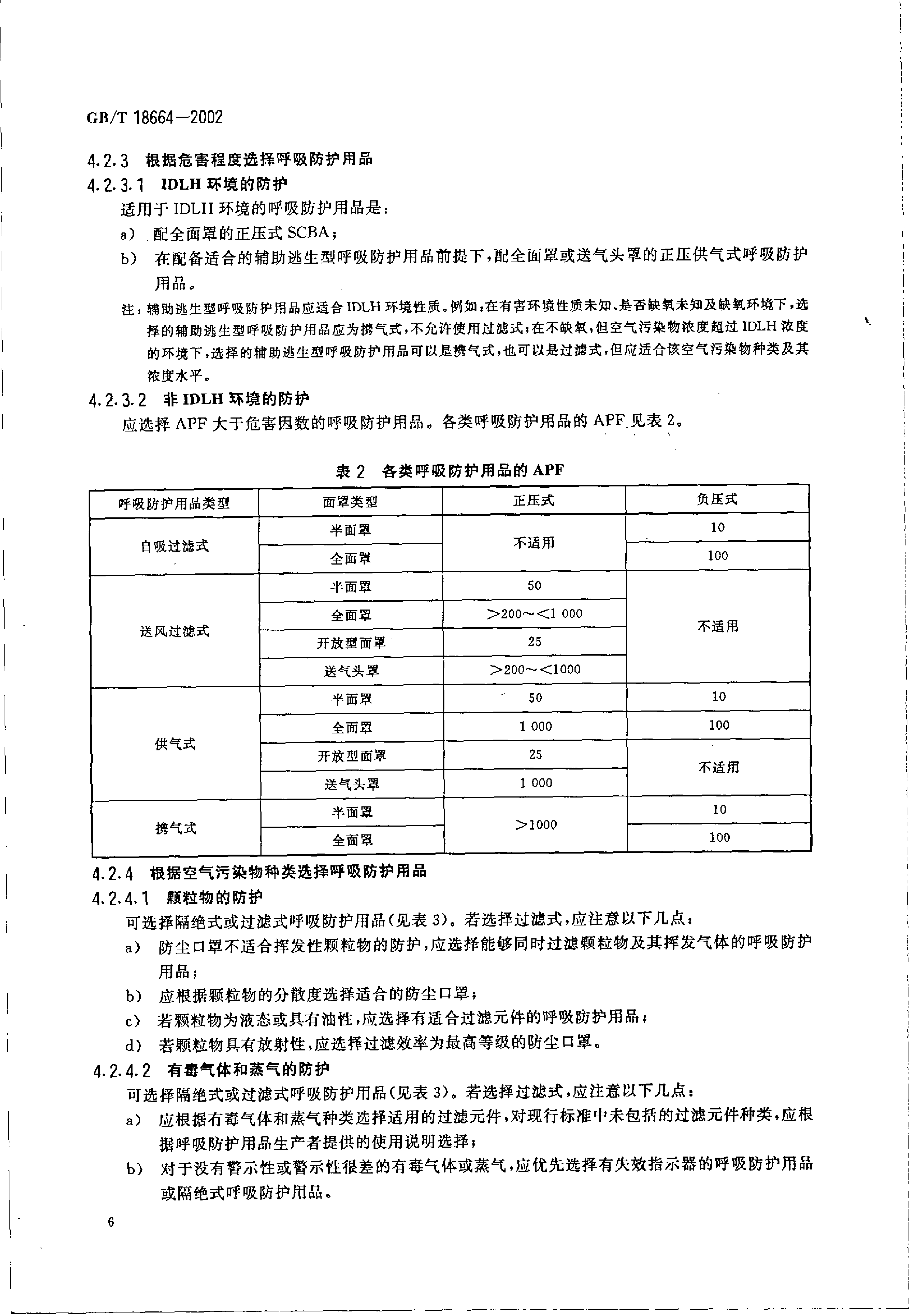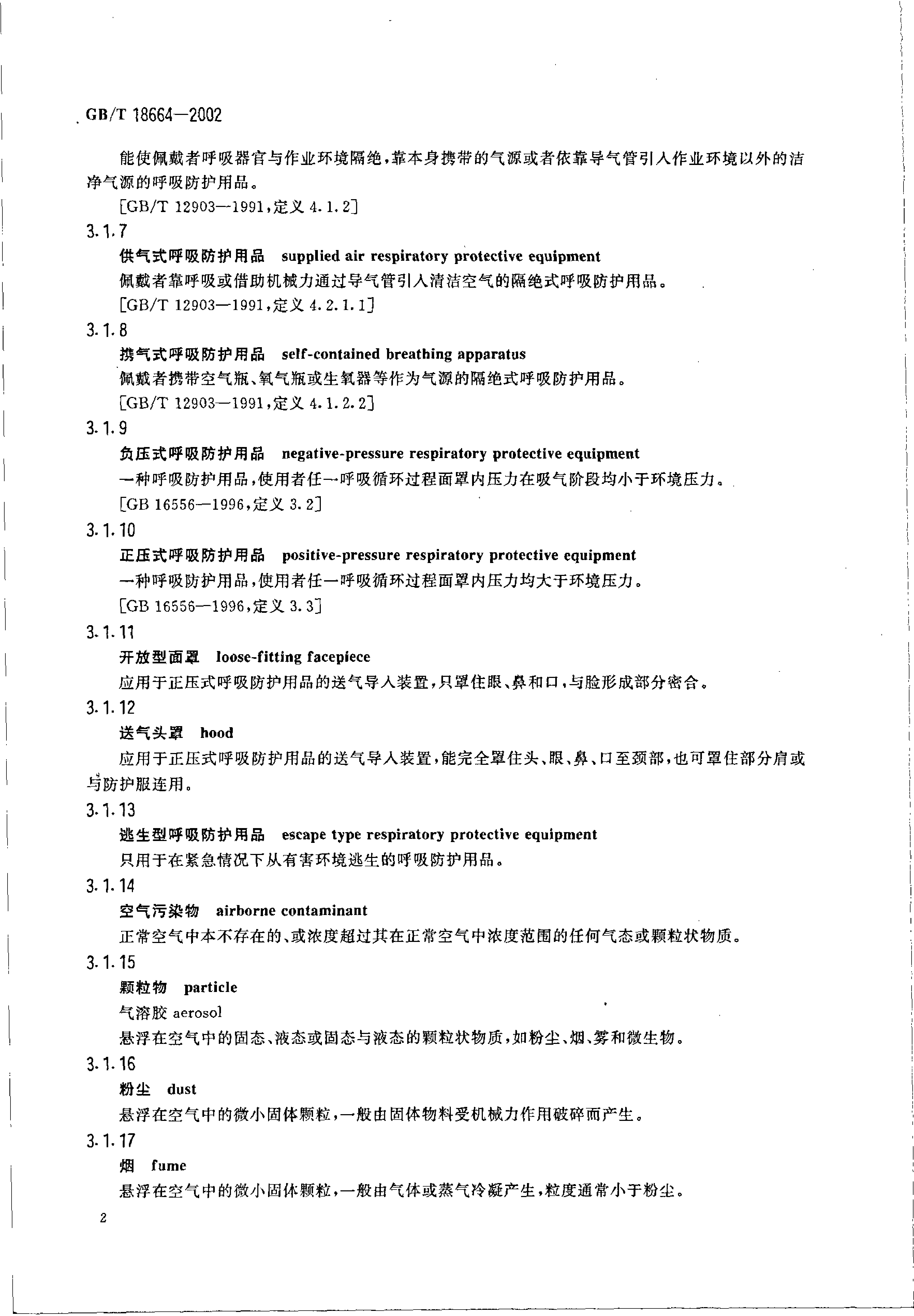 《呼吸防护用品的选择、使用与维护》(GB/T18664-2002)
