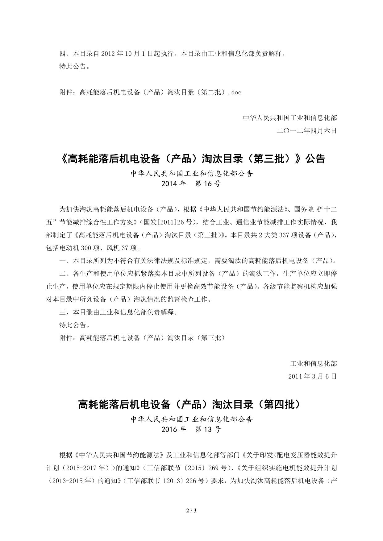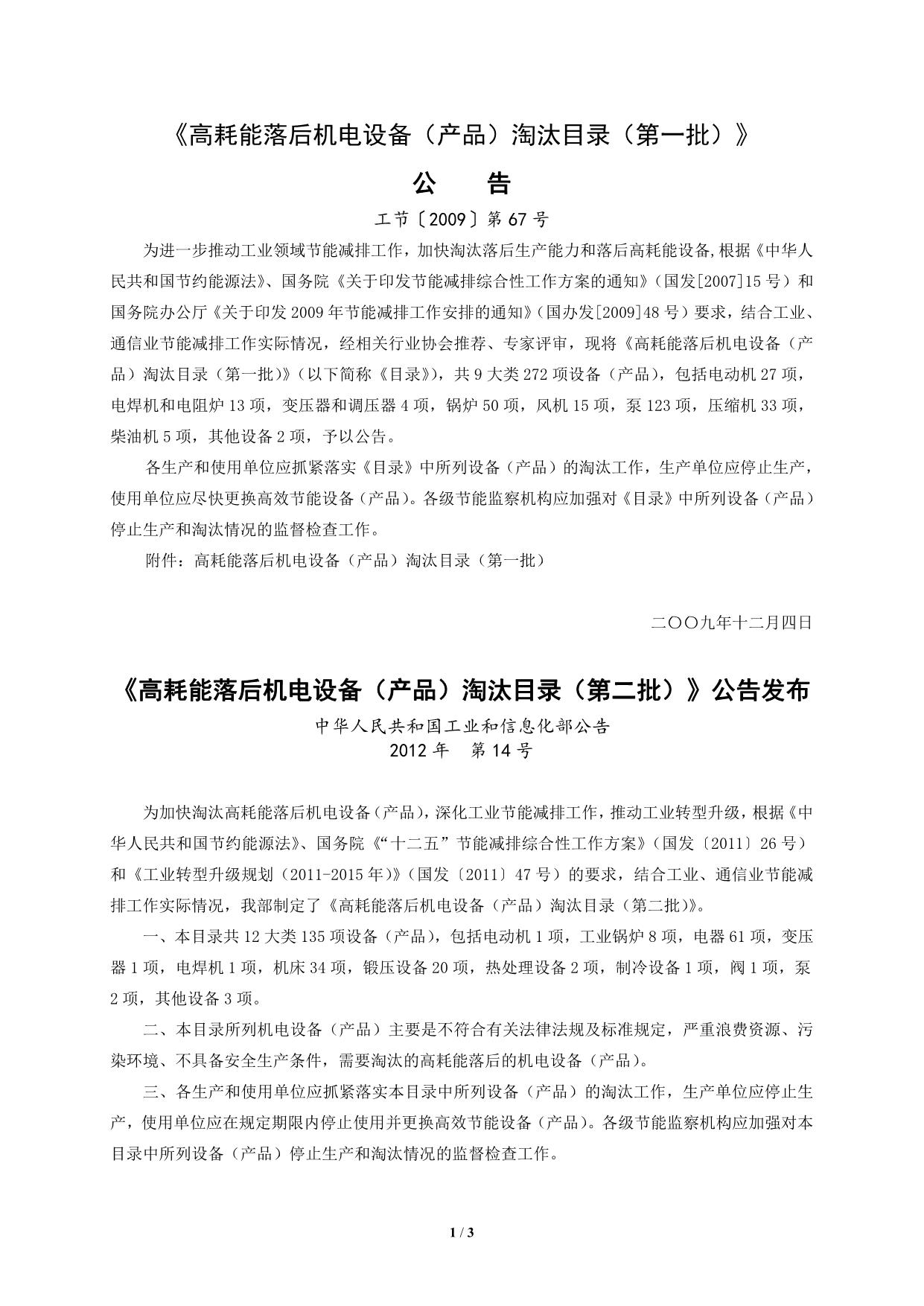 《高耗能落后机电设备(产品)淘汰目录》四批公告