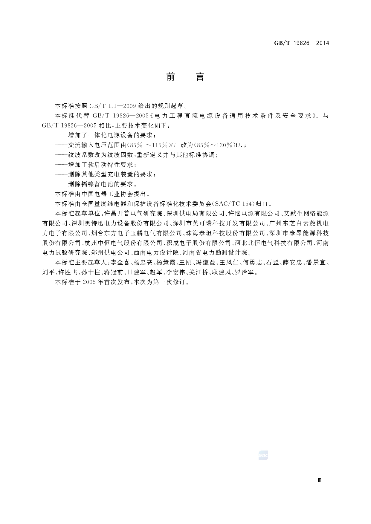 《电力工程直流电源设备通用技术条件及安全要求》(GB/T19826-2014)