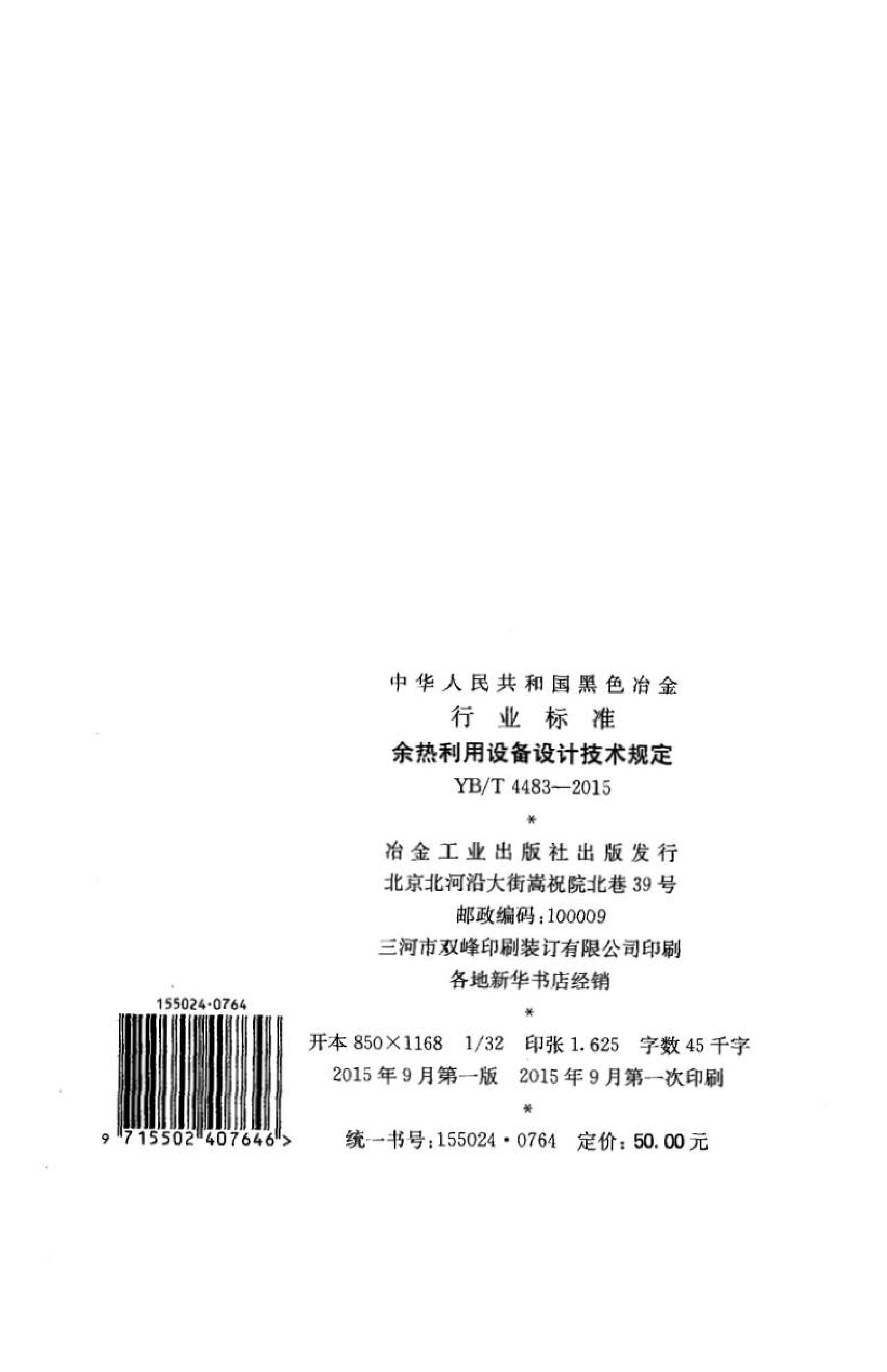 《余热利用设备设计技术规定》(YB∕T4483-2015)