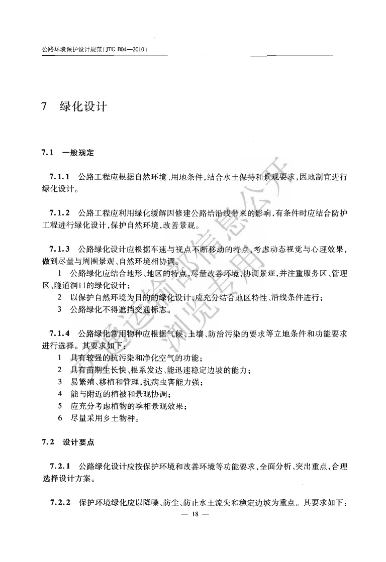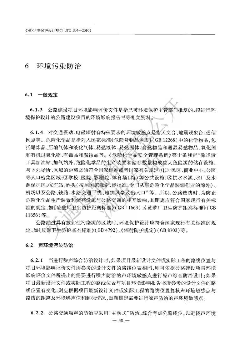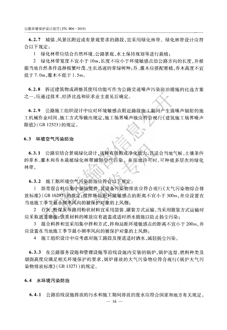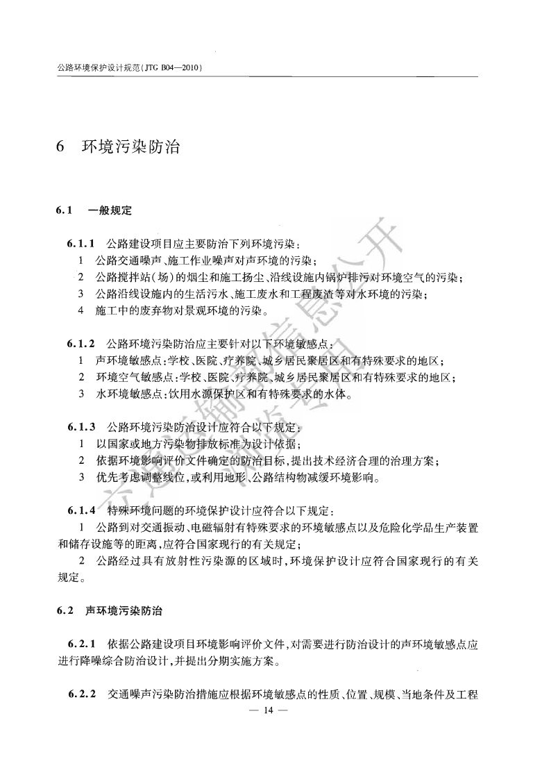 《公路环境保护设计规范》JTGB04-2010