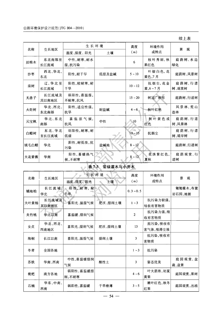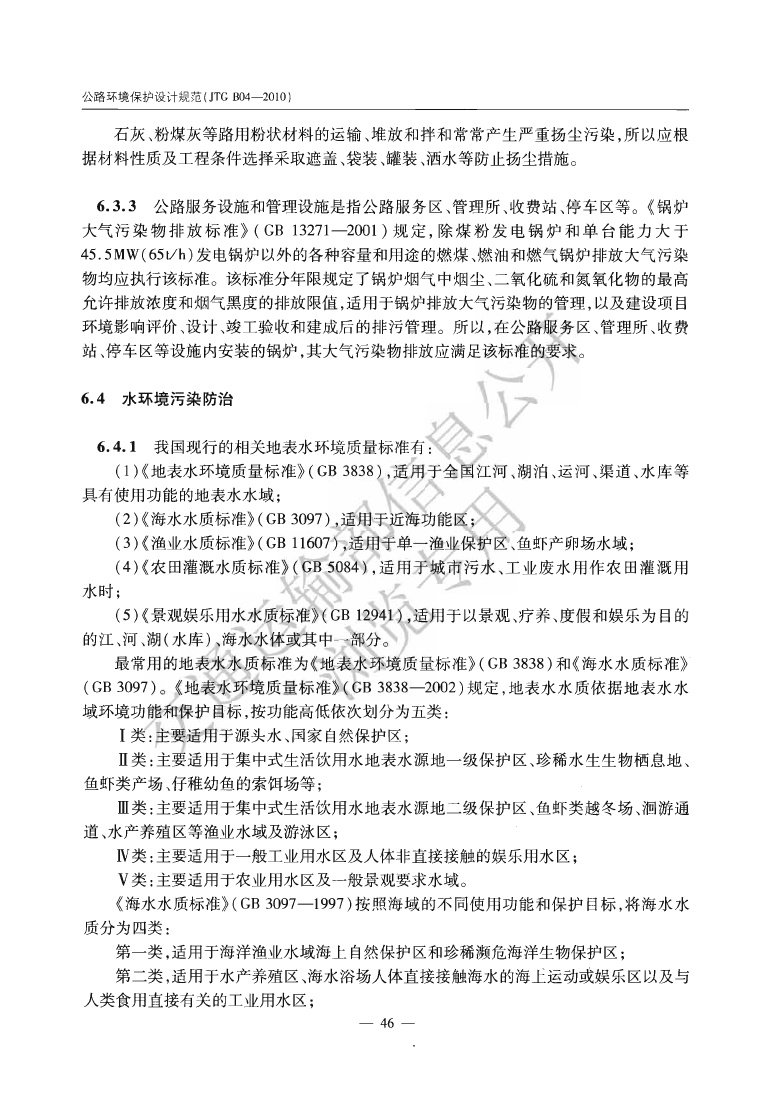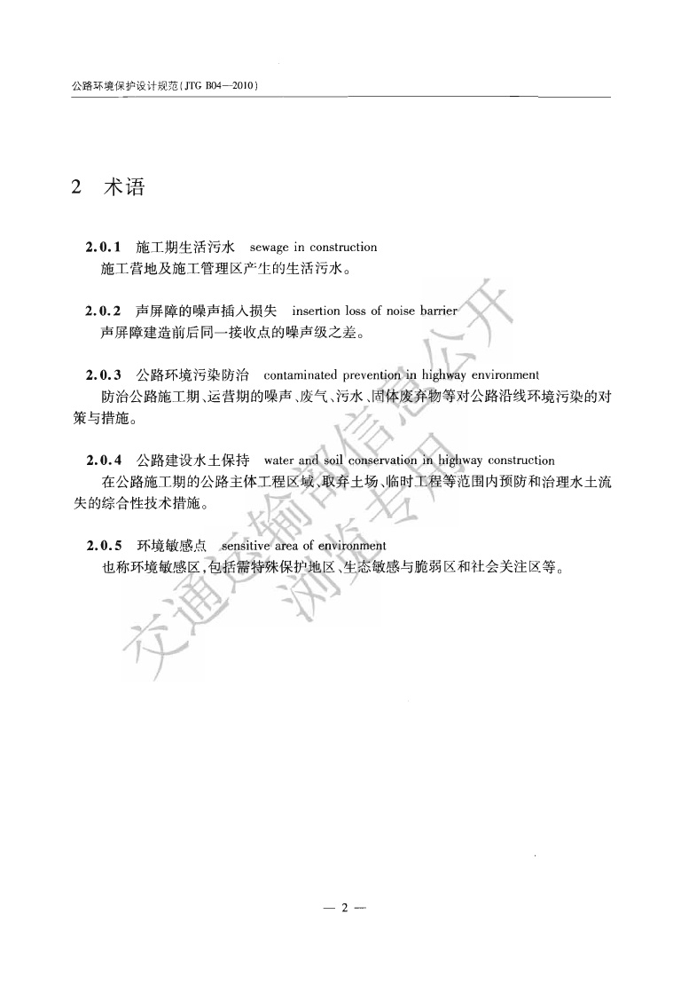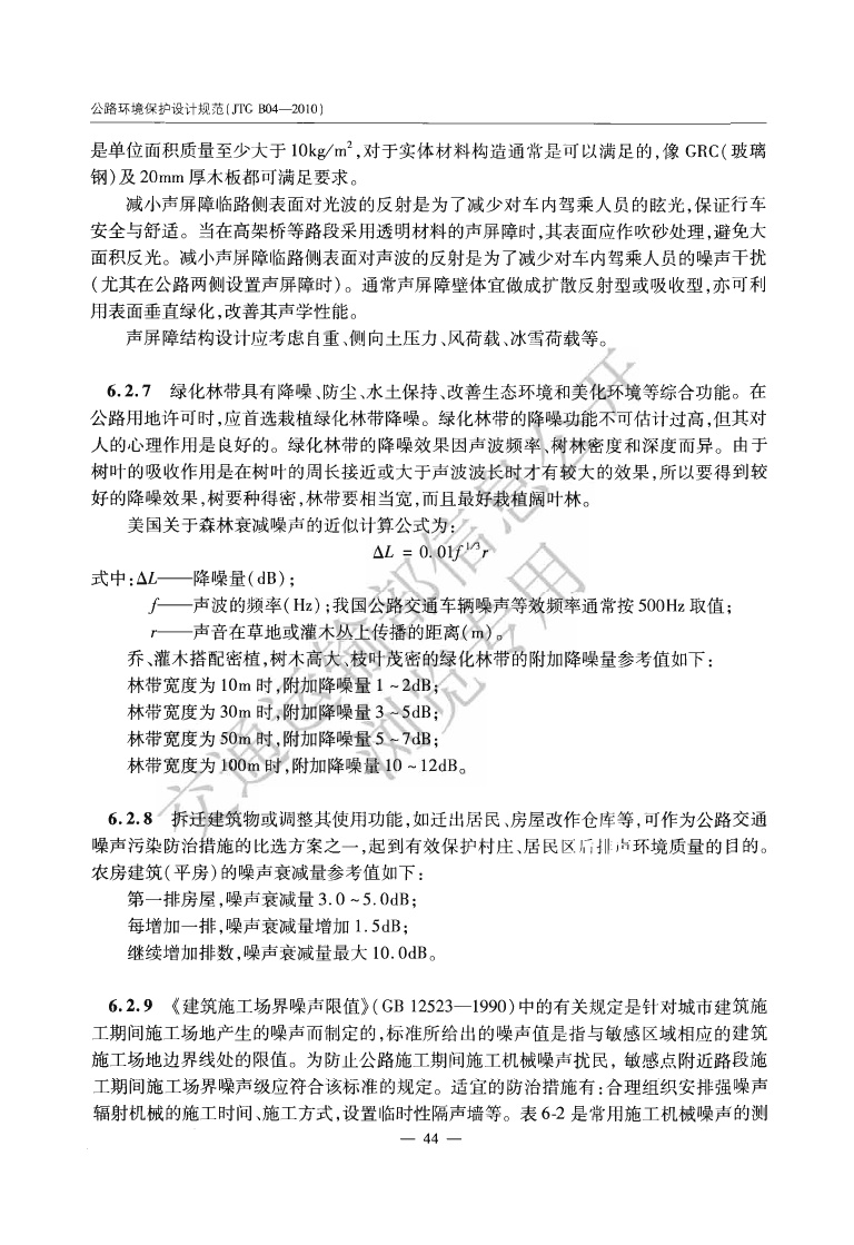 《公路环境保护设计规范》JTGB04-2010
