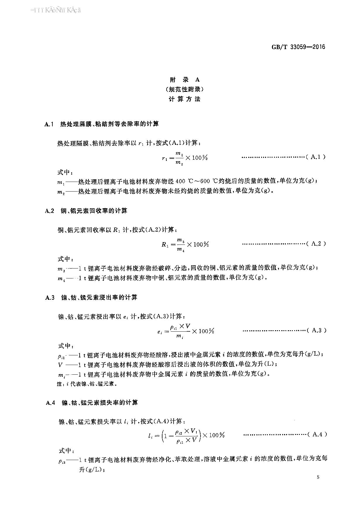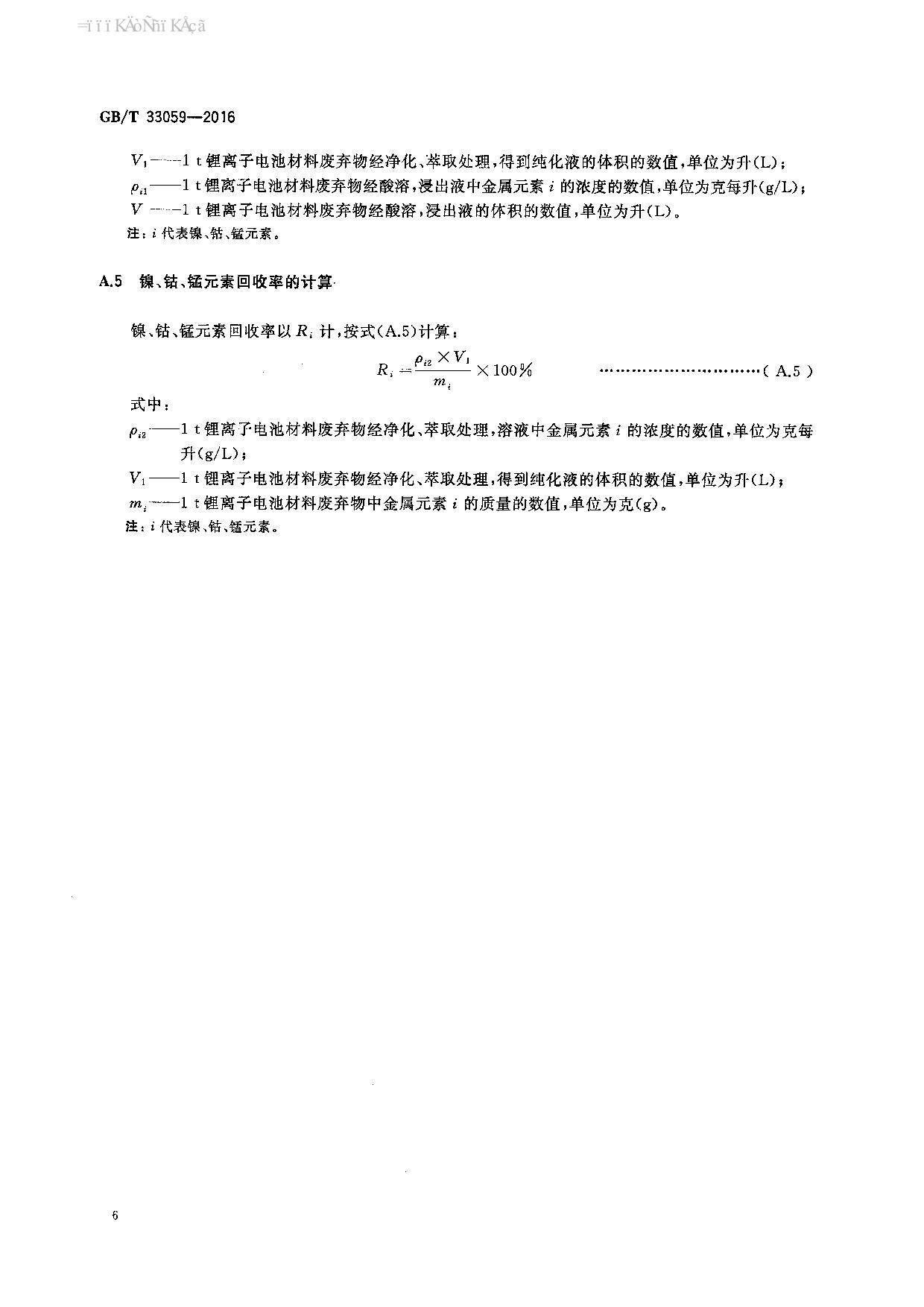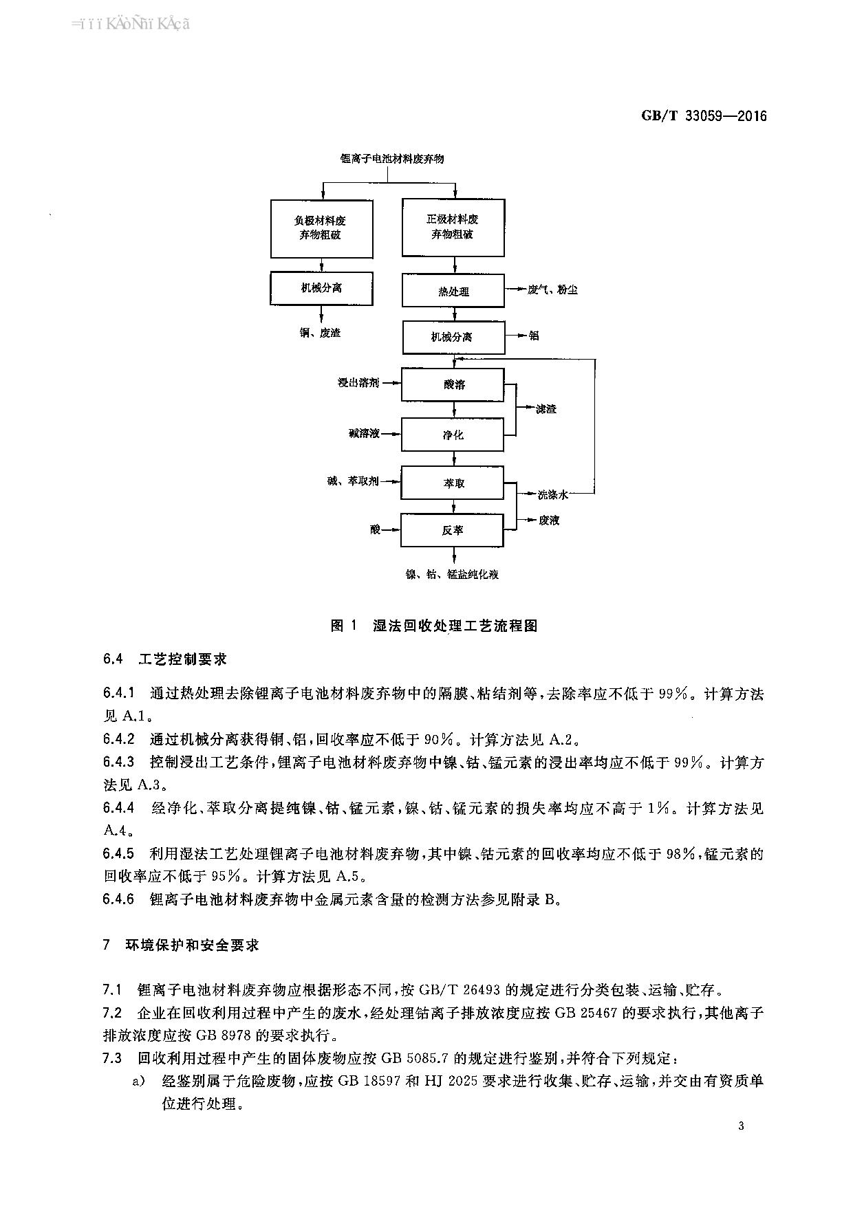《锂离子电池材料废弃物回收利用的处理方法》(GBT 33059-2016 )