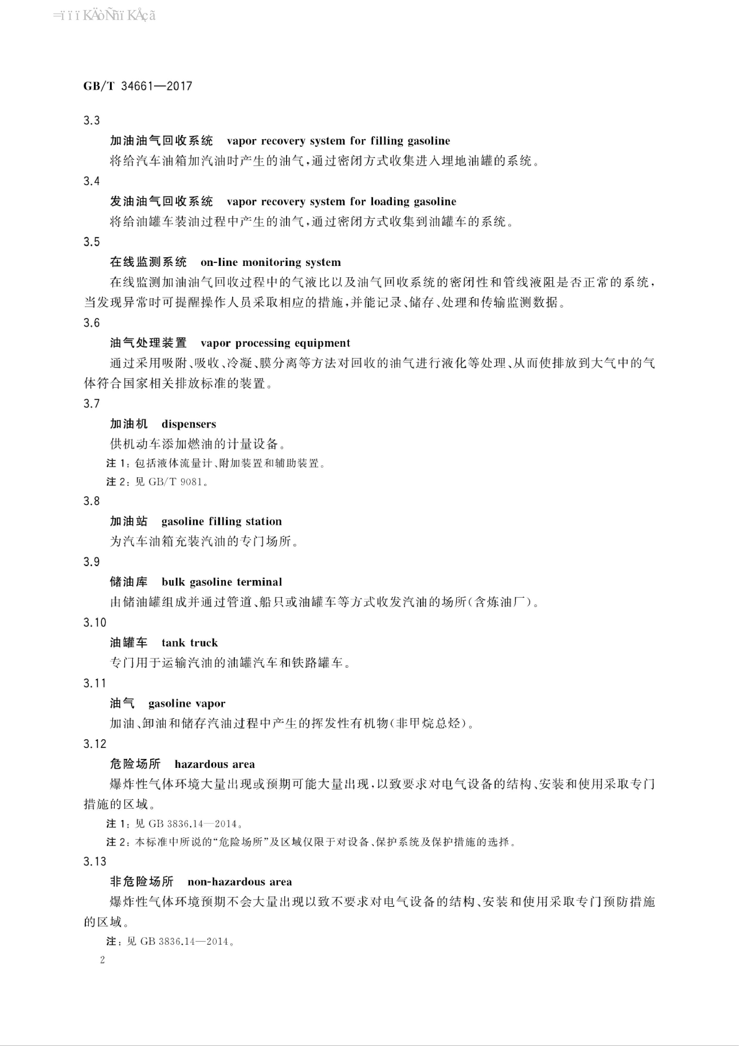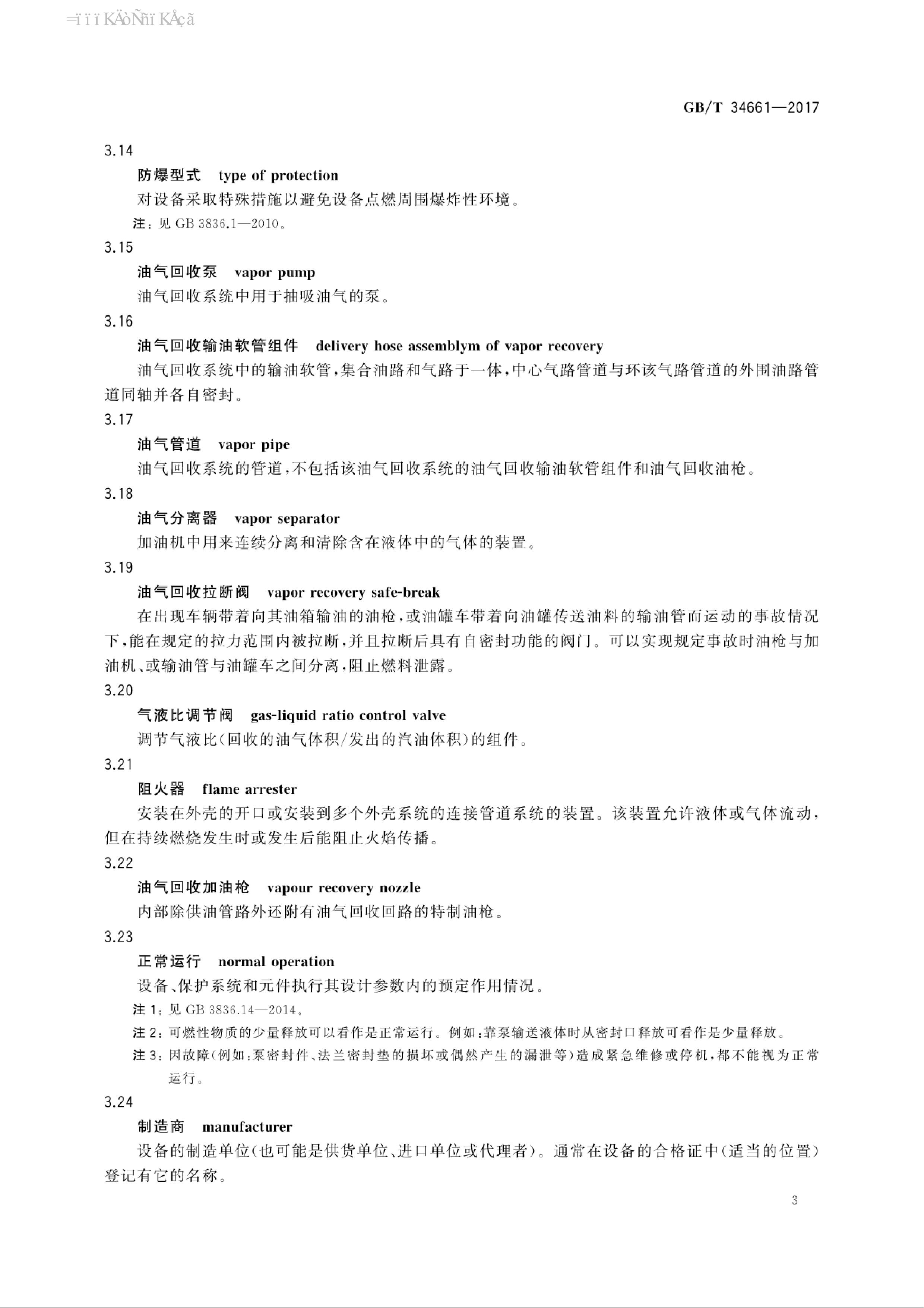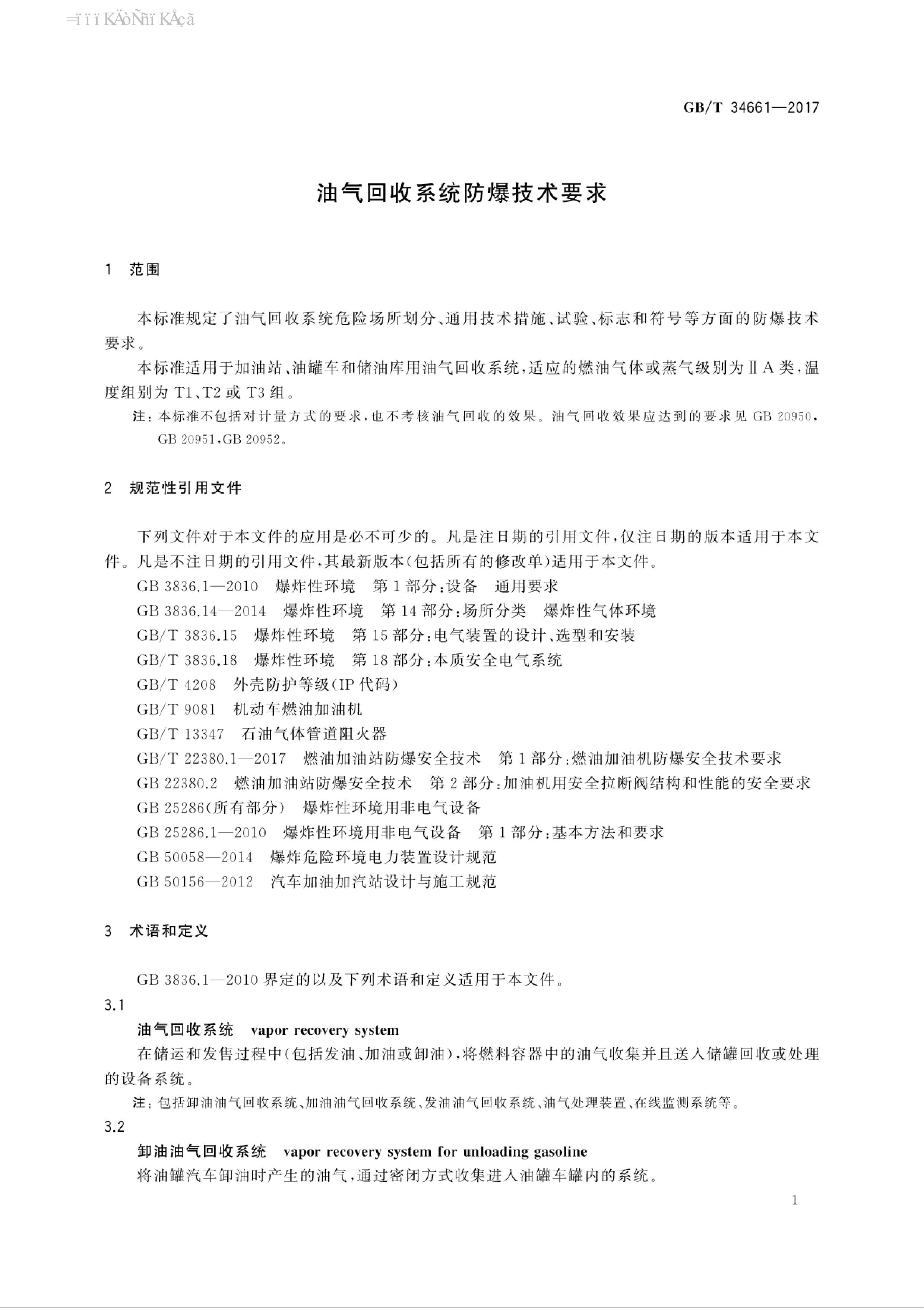 《油气回收系统防爆技术要求》(GBT34661-2017)