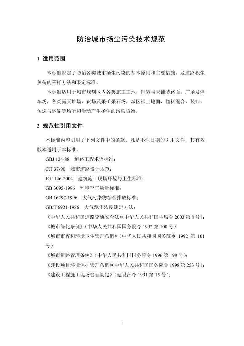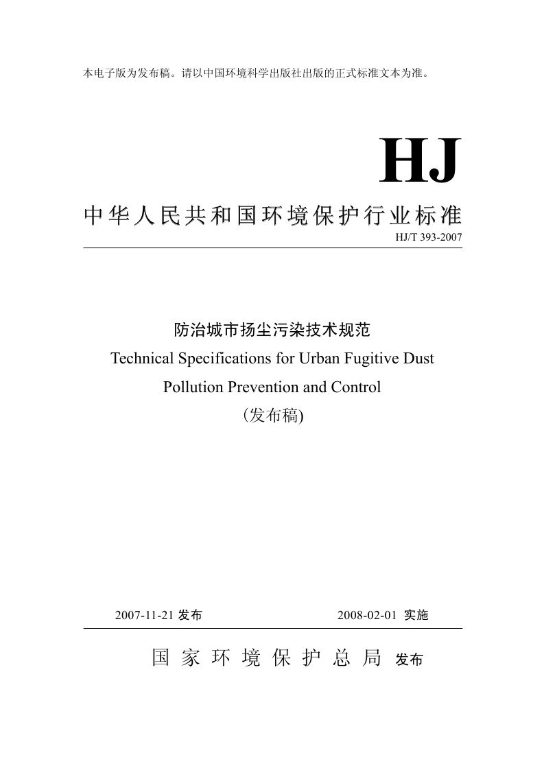 《防治城市扬尘污染技术规范》(HJ/T393-2007)