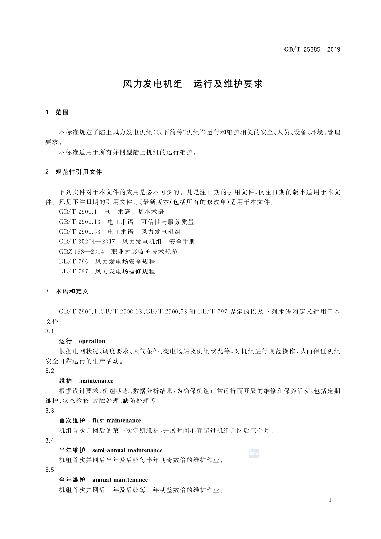 《风力发电机组运行及维护要求》(GB/T25385-2010)