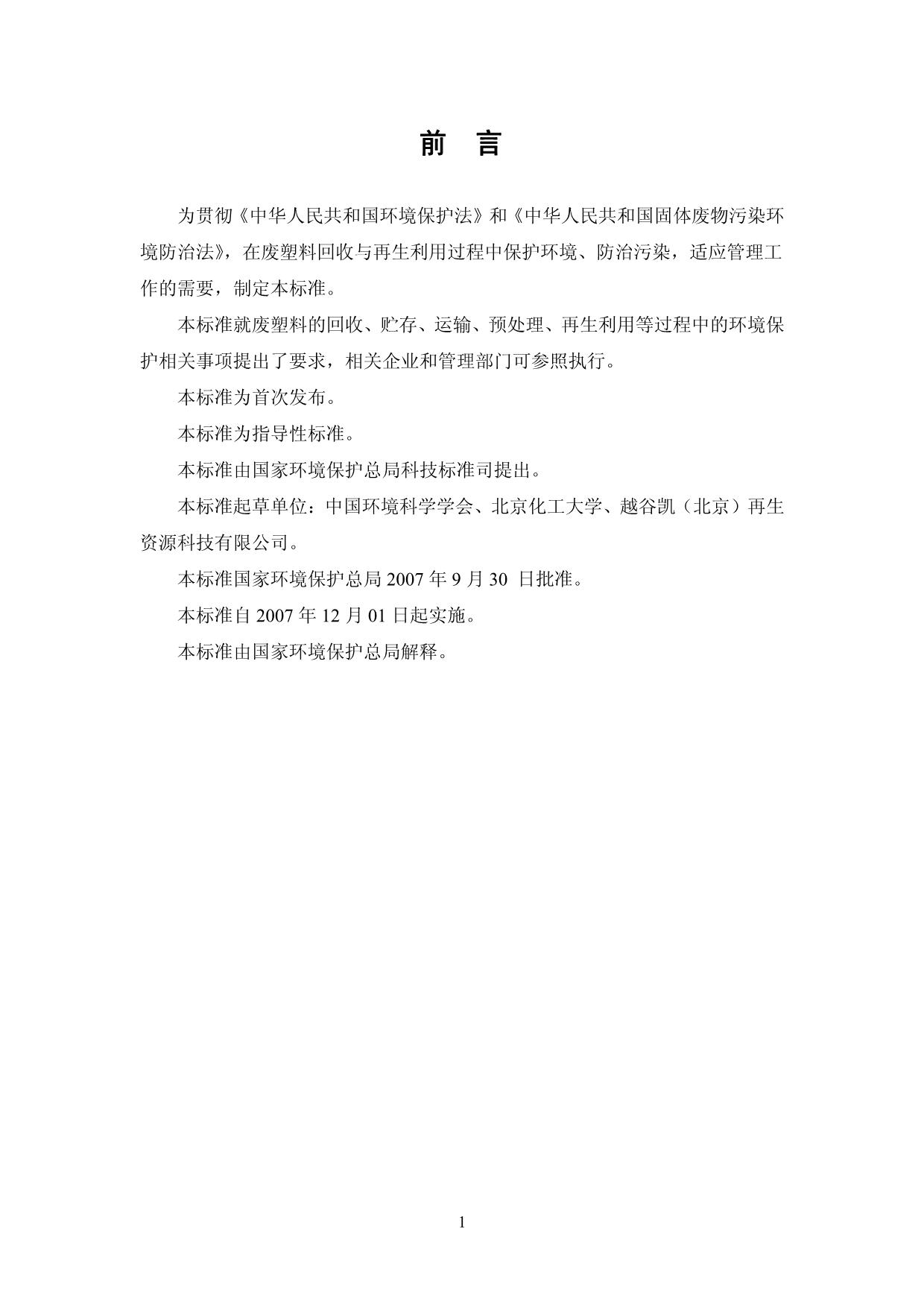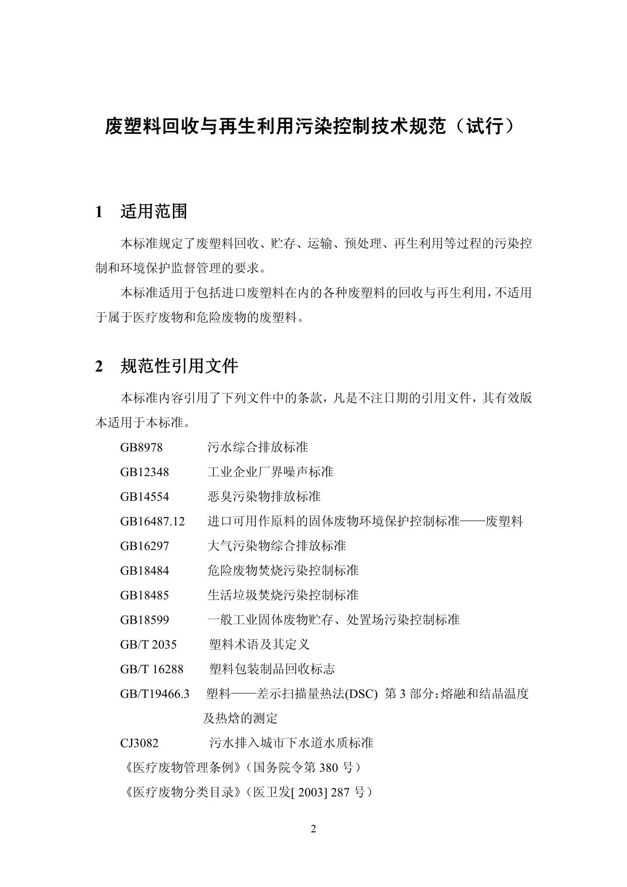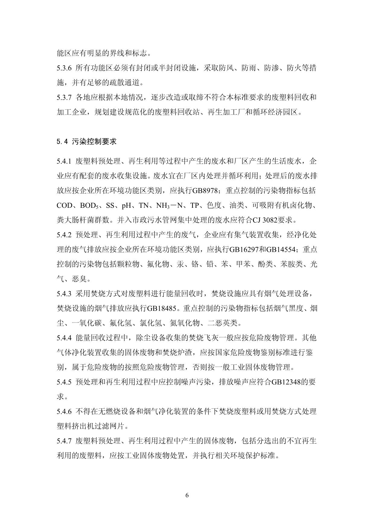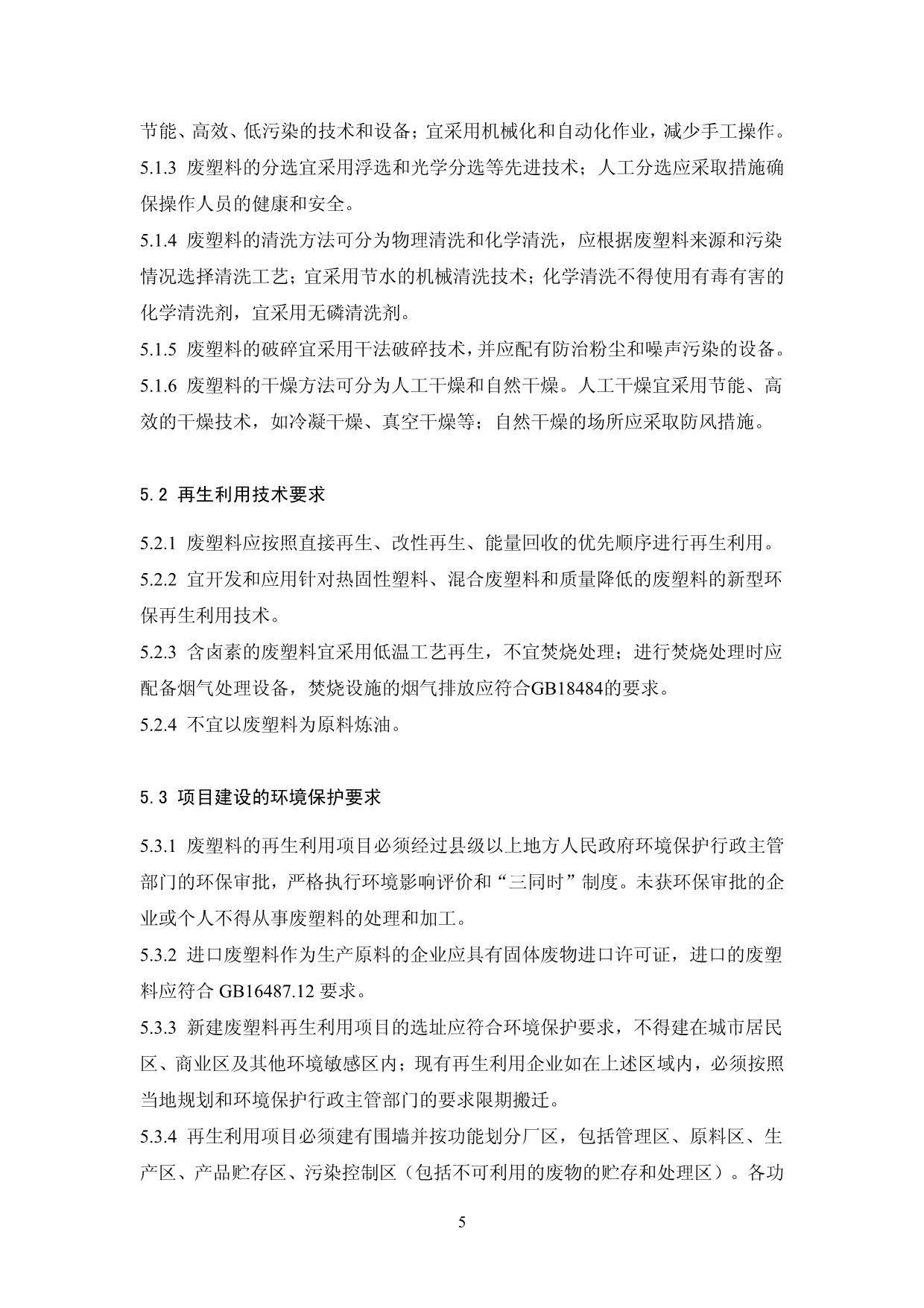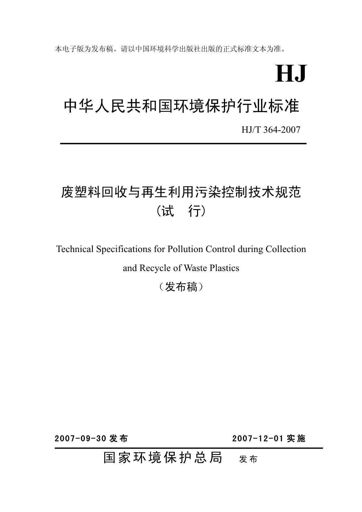 《废塑料回收与再生利用污染控制技术规范(试行)》(HJ∕T364-2007)