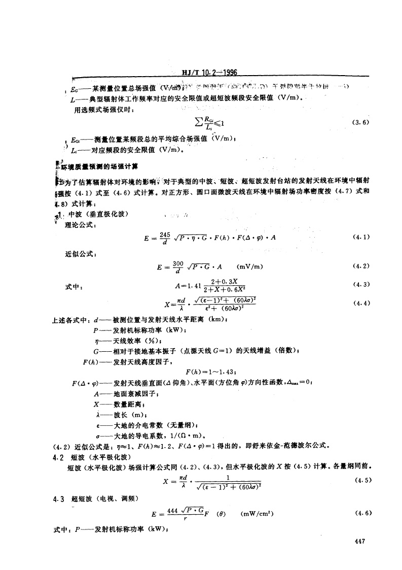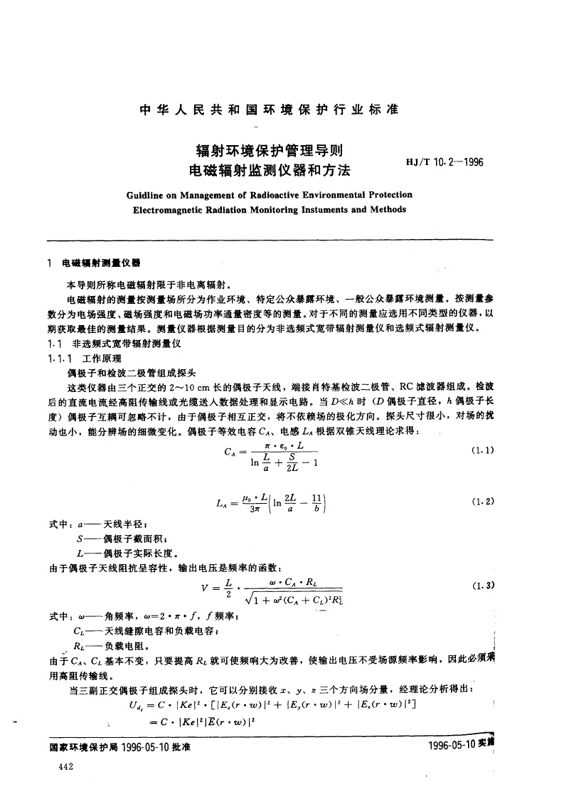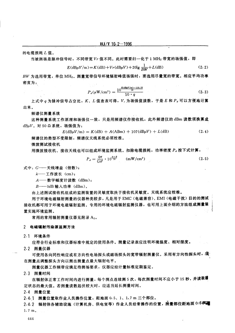 《辐射环境保护管理导则电磁辐射监测仪器和方法》(HJ/T10.2-1996)
