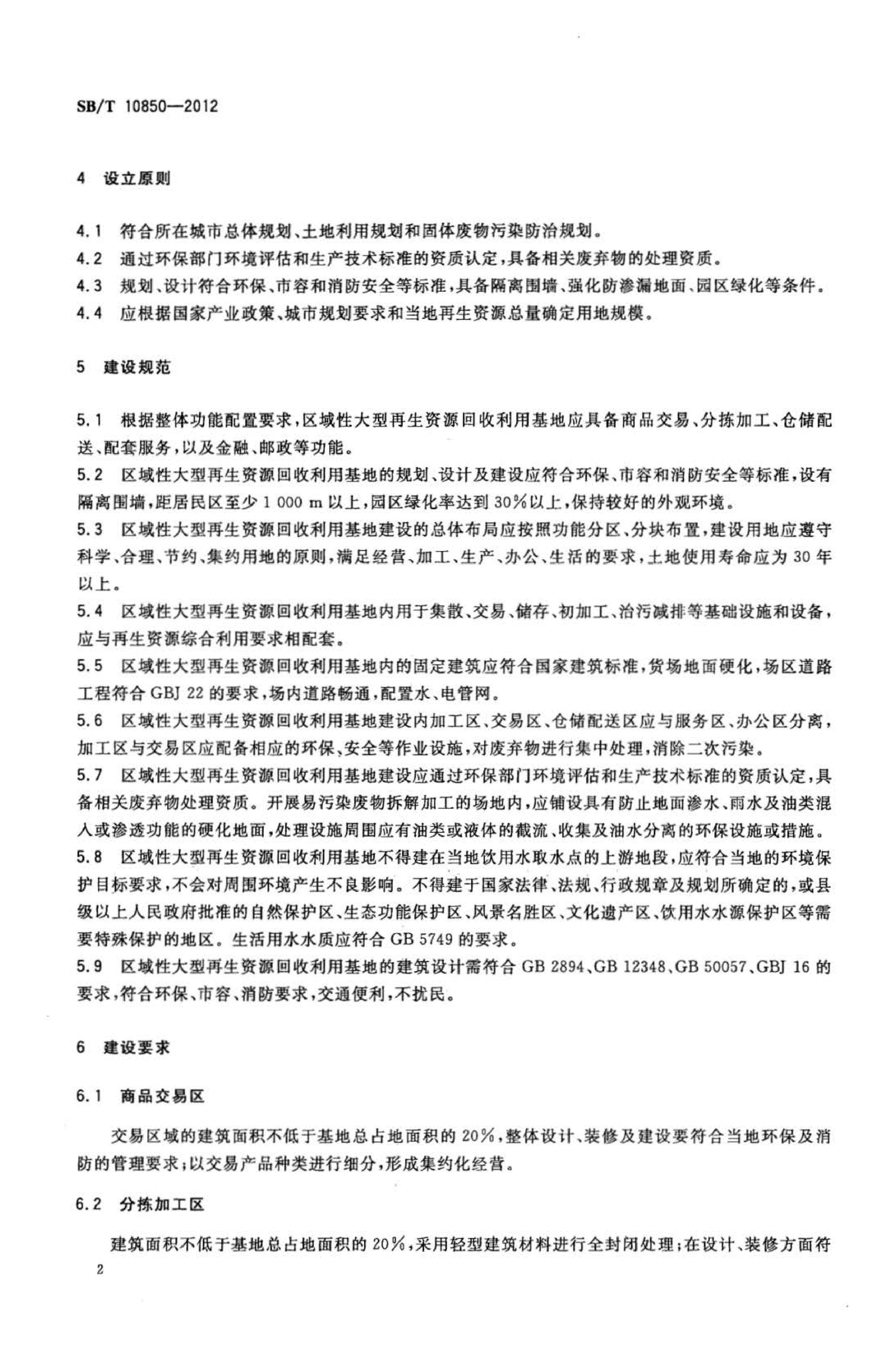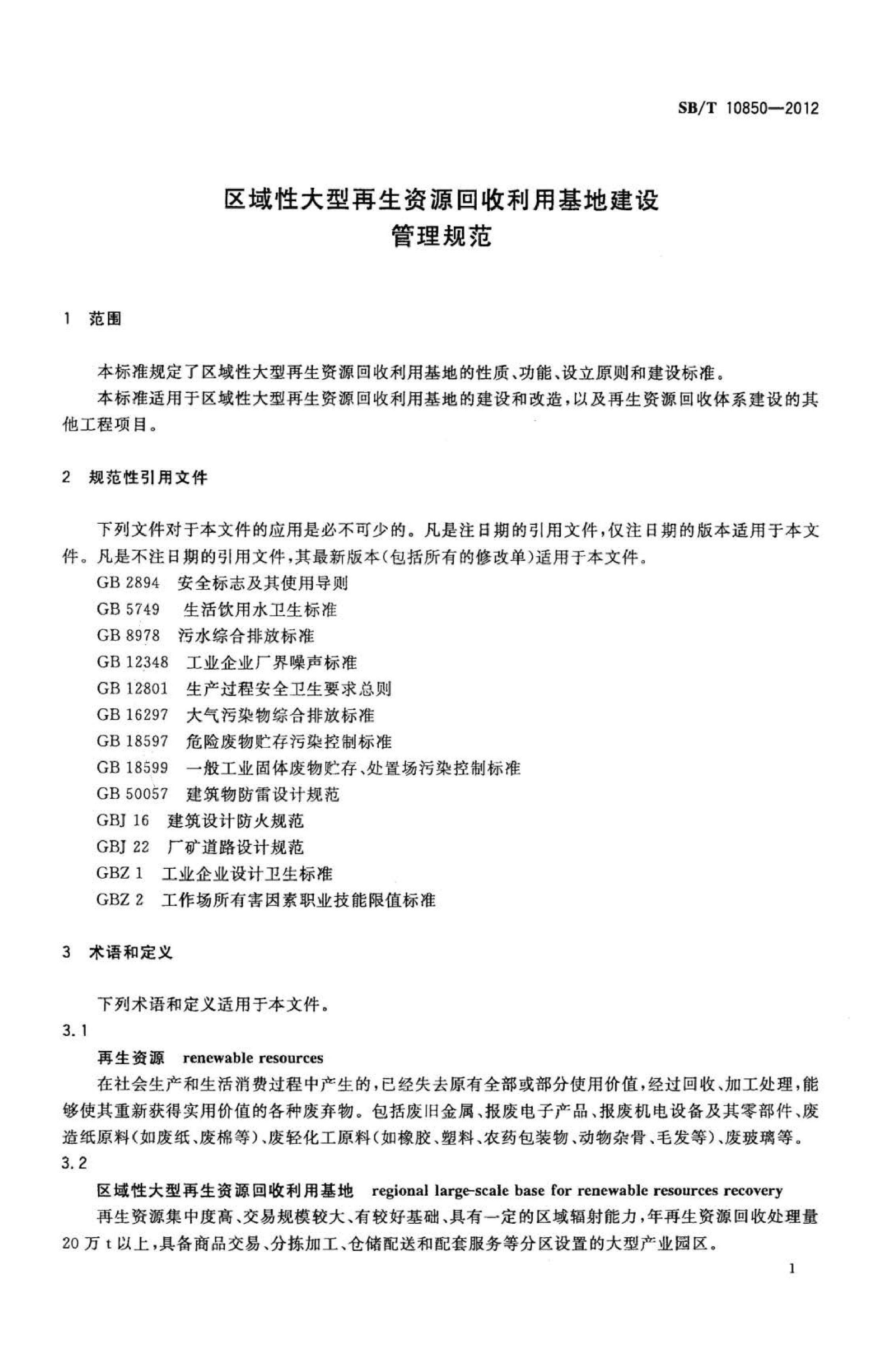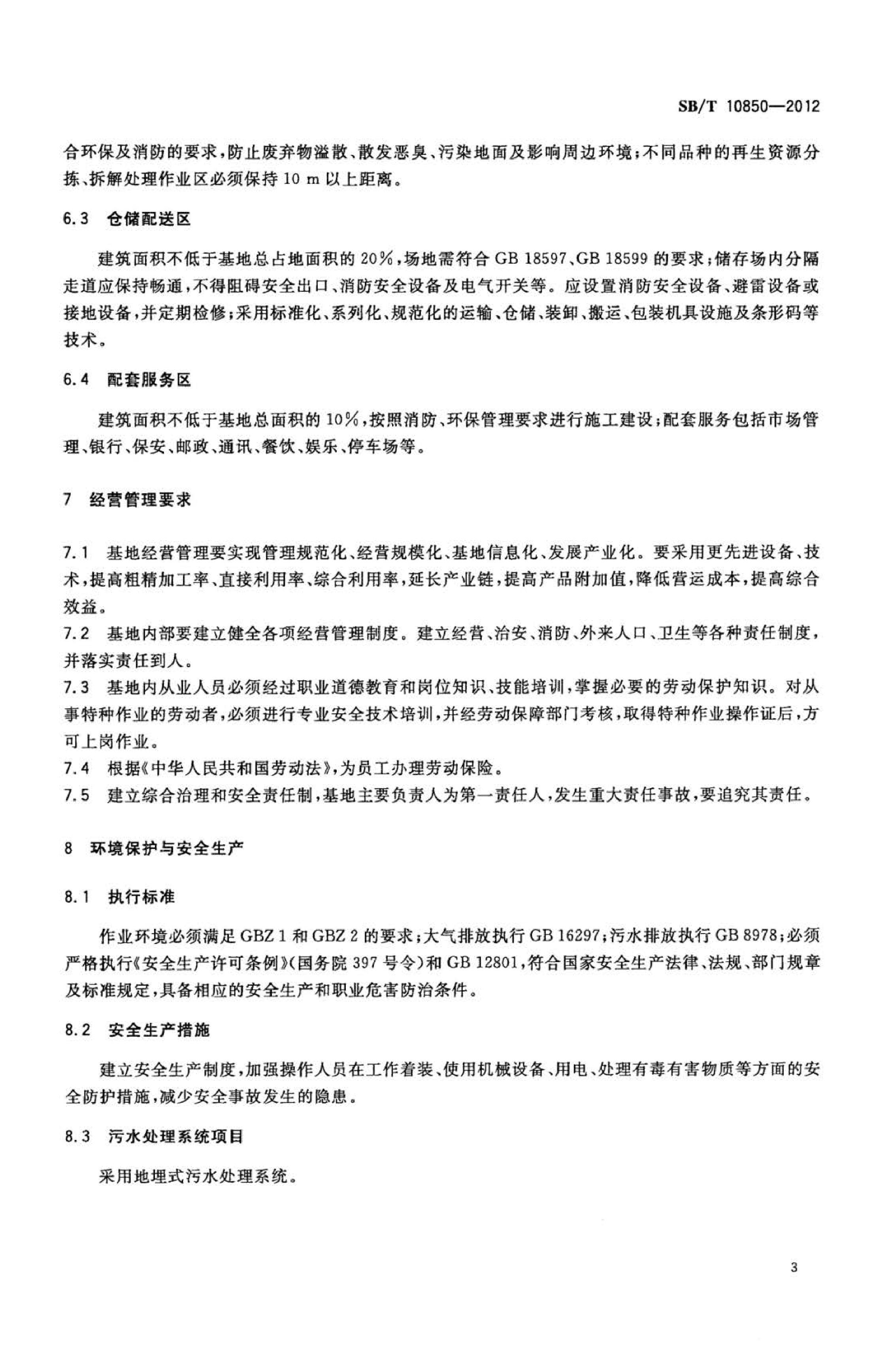 《区域性大型再生资源回收利用基地建设管理规范》(SB∕T10850-2012)