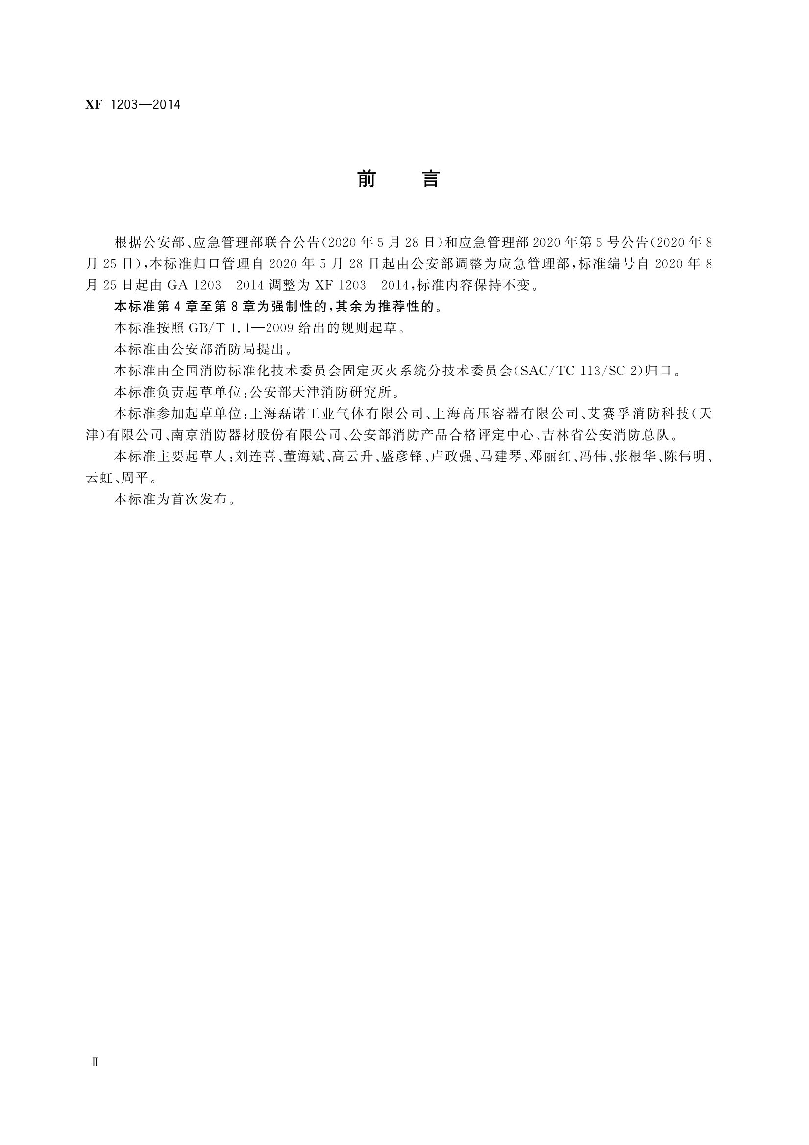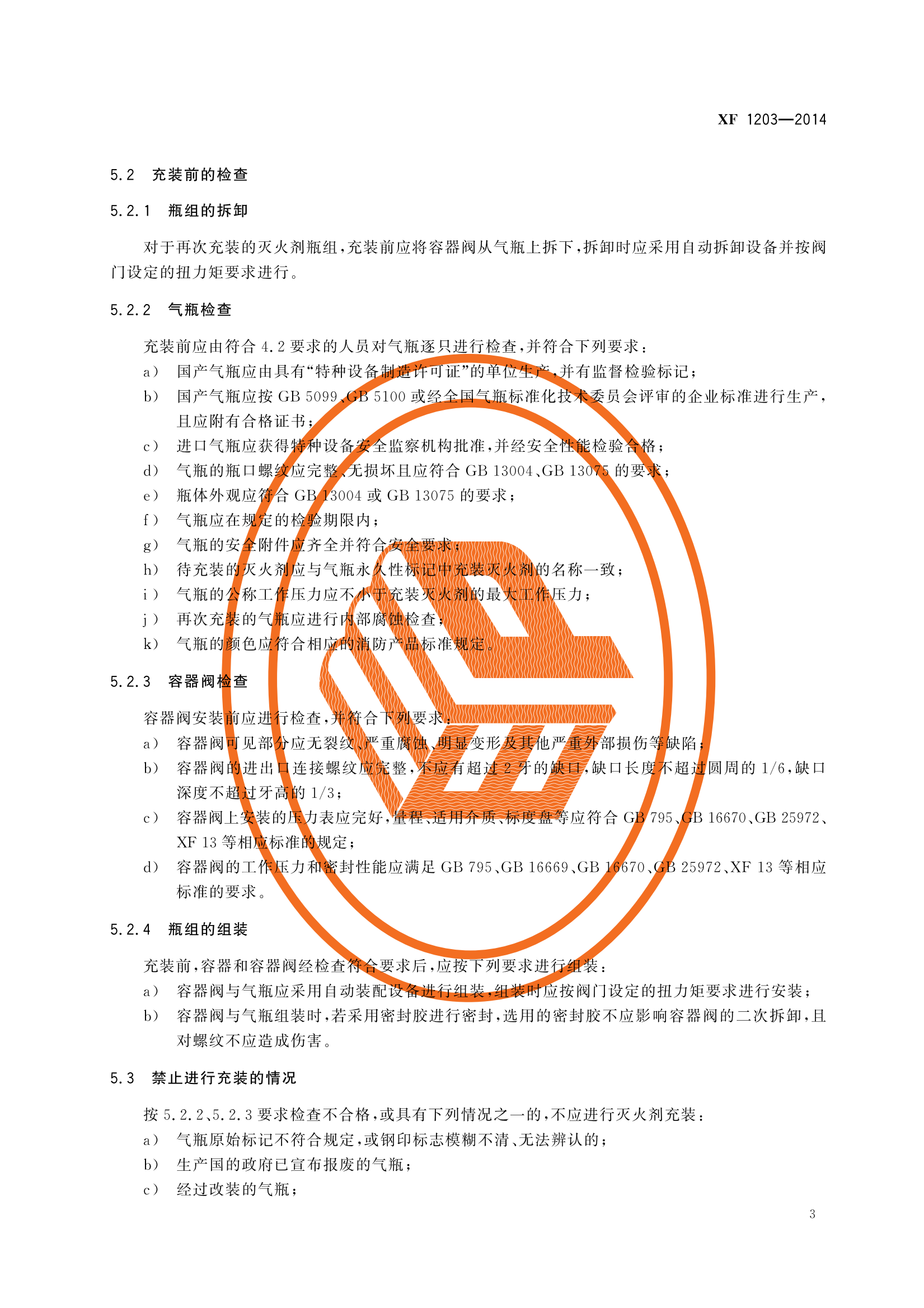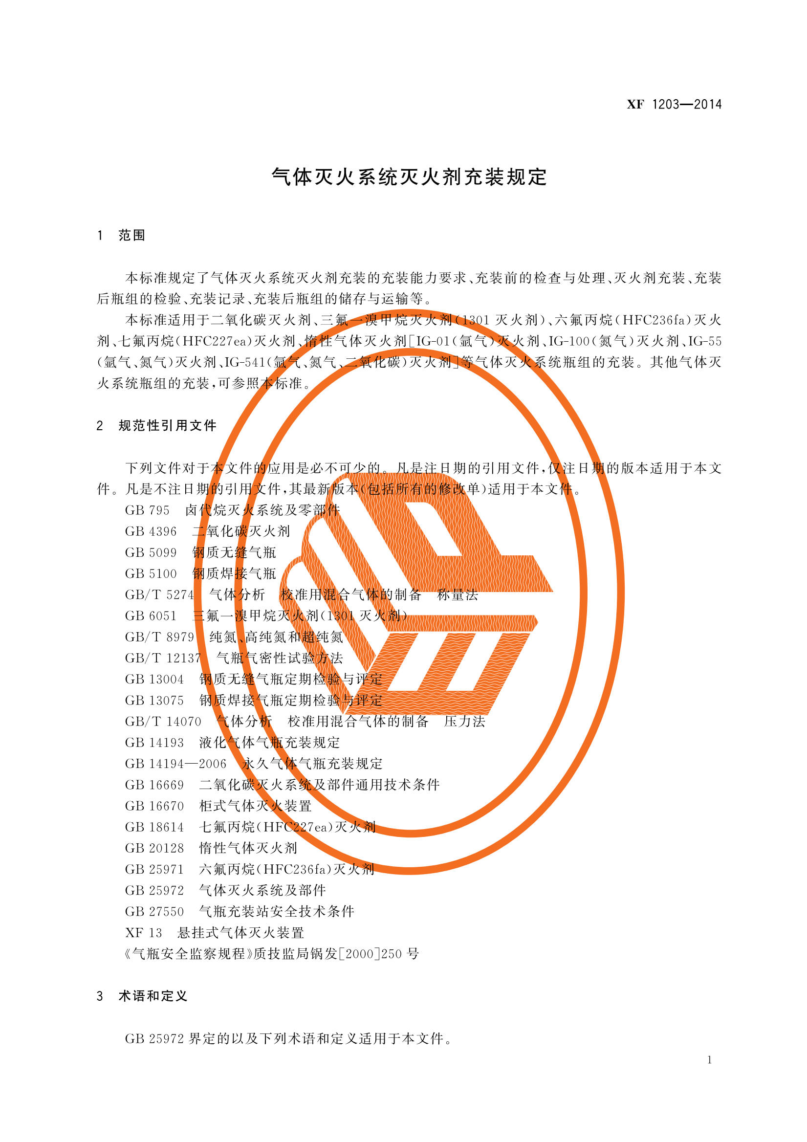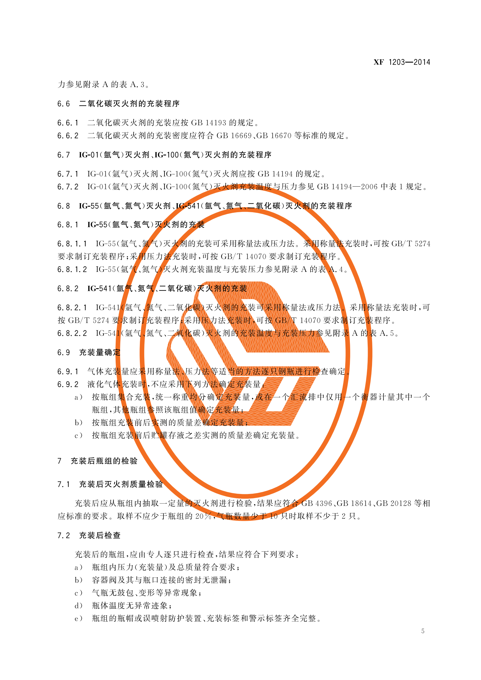 《气体灭火系统灭火剂充装规定》GA1203-2014