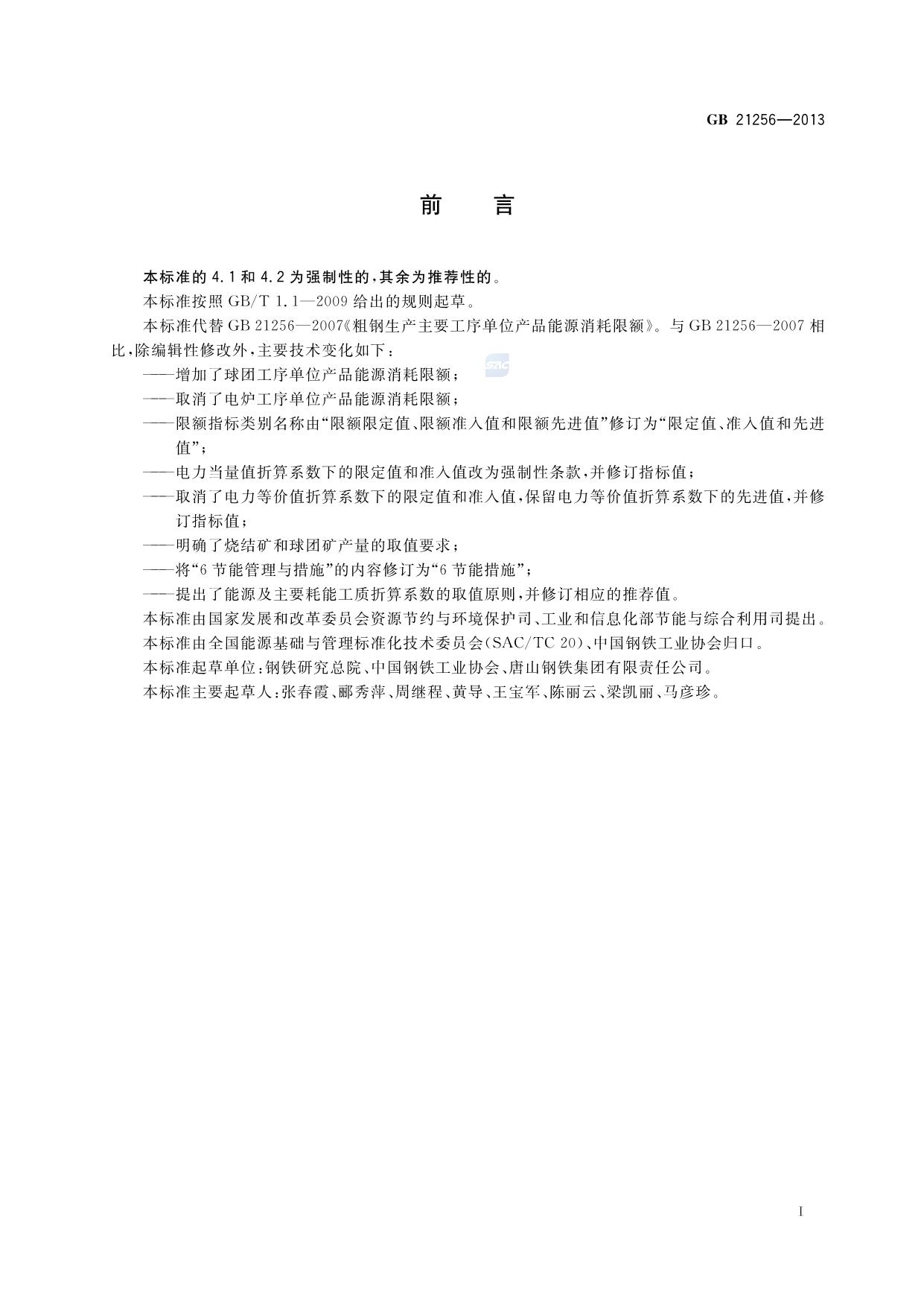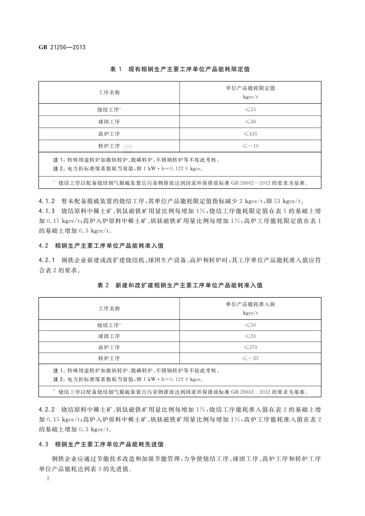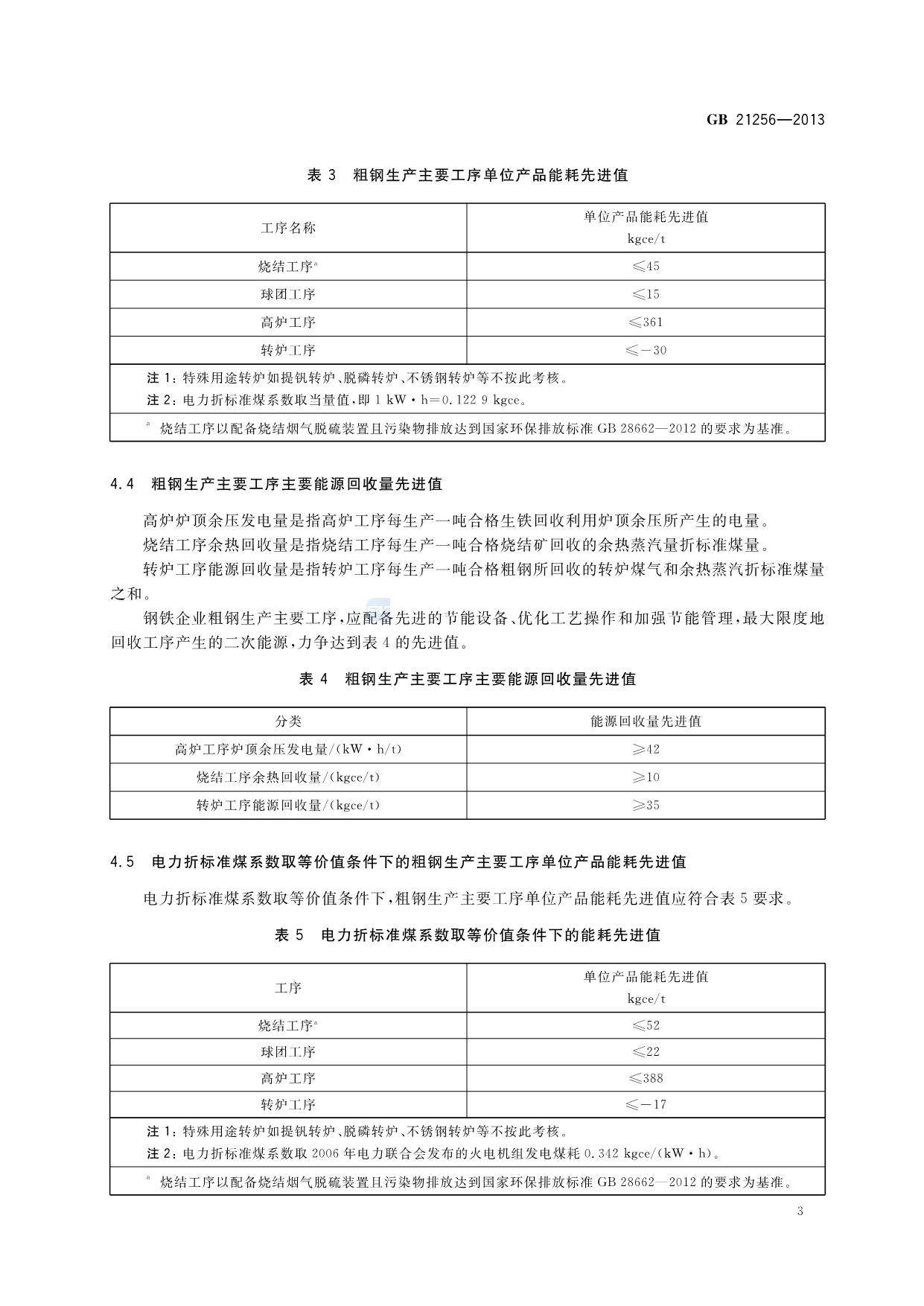 《粗钢生产主要工序单位产品能源消耗限额》(GB 21256-2013)