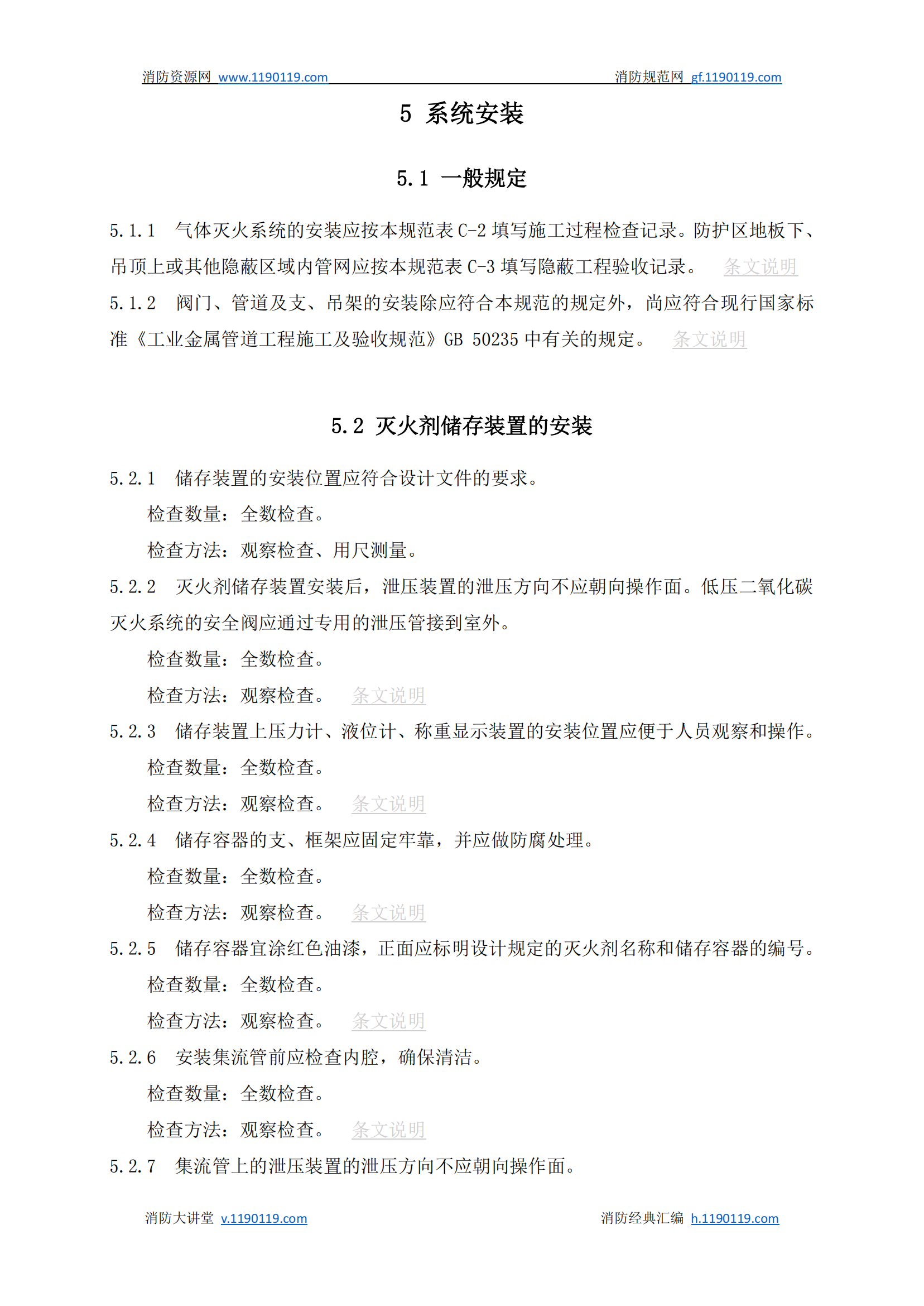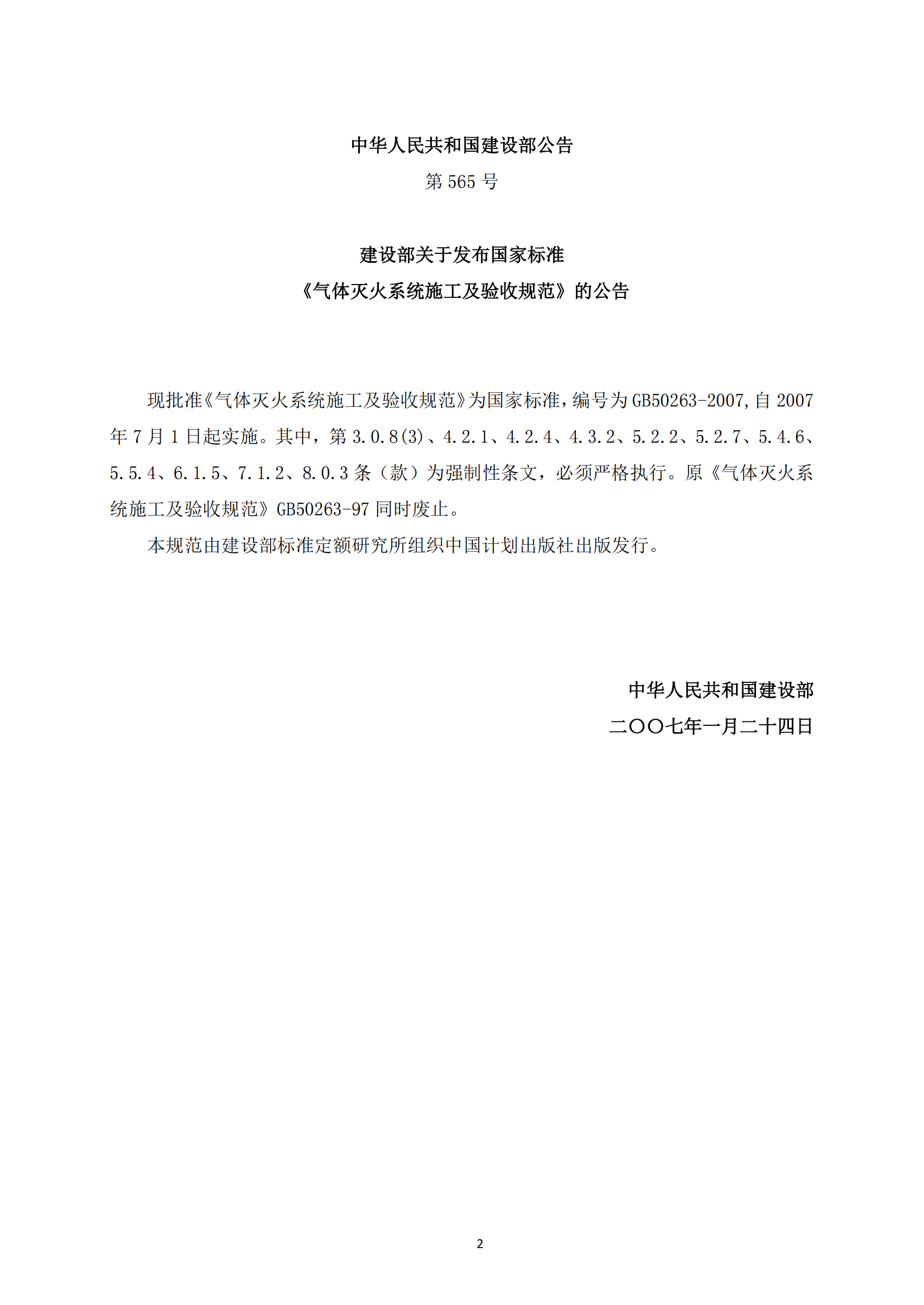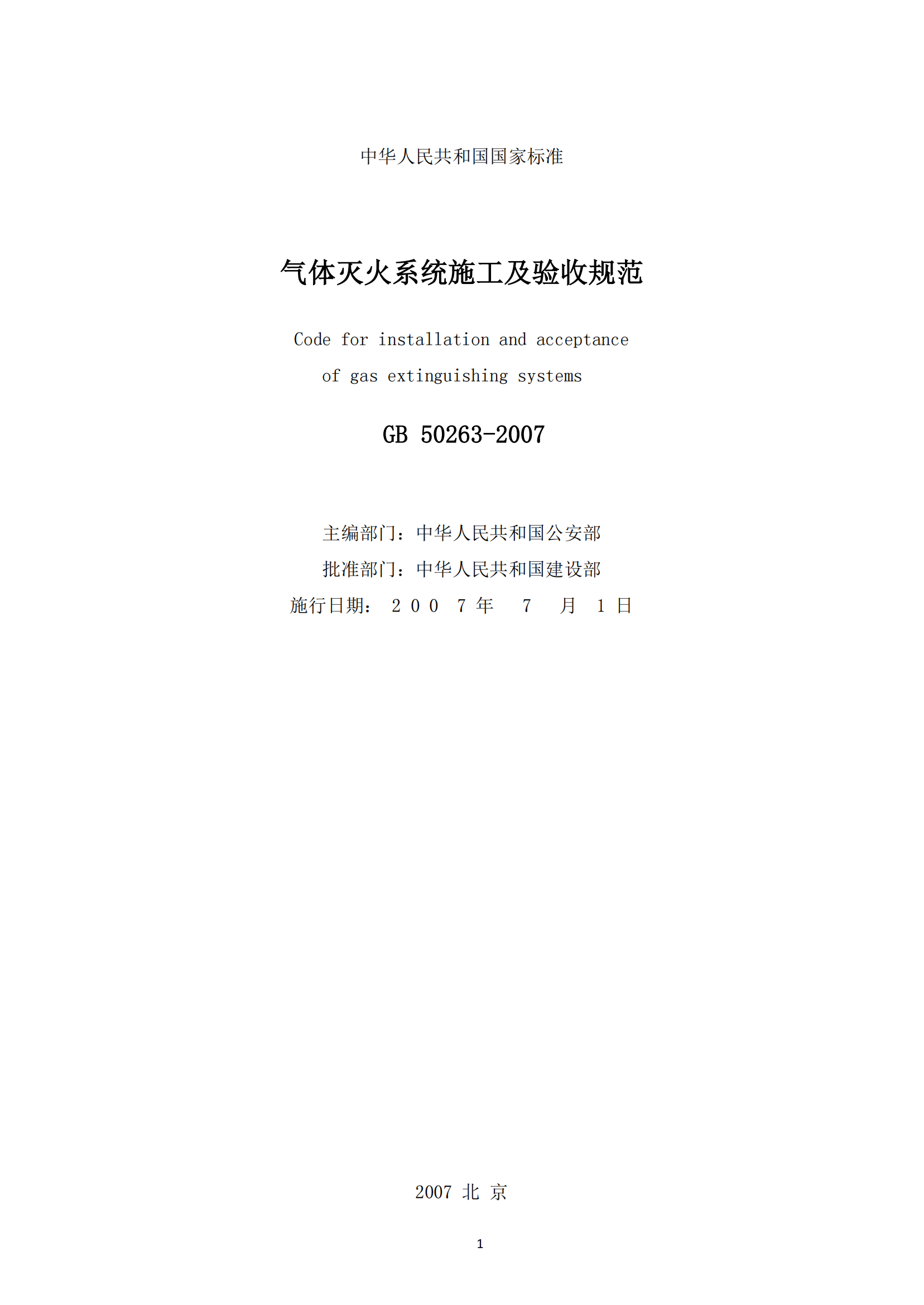 《气体灭火系统施工及验收规范》GB50263-2007