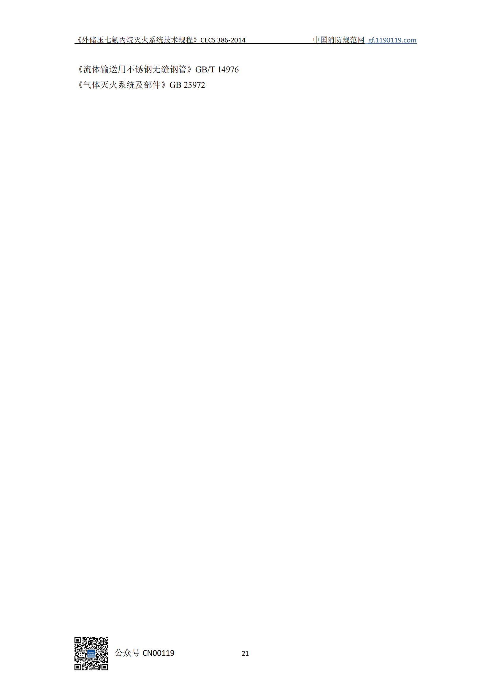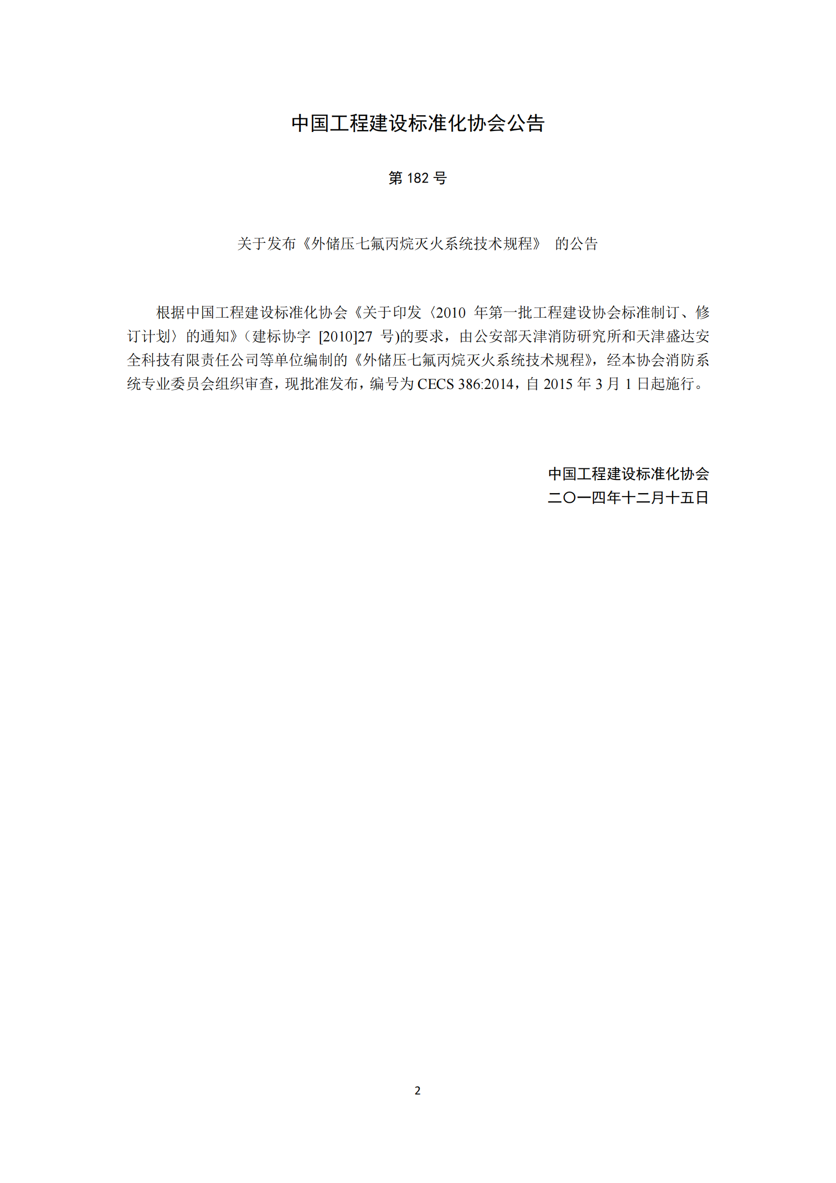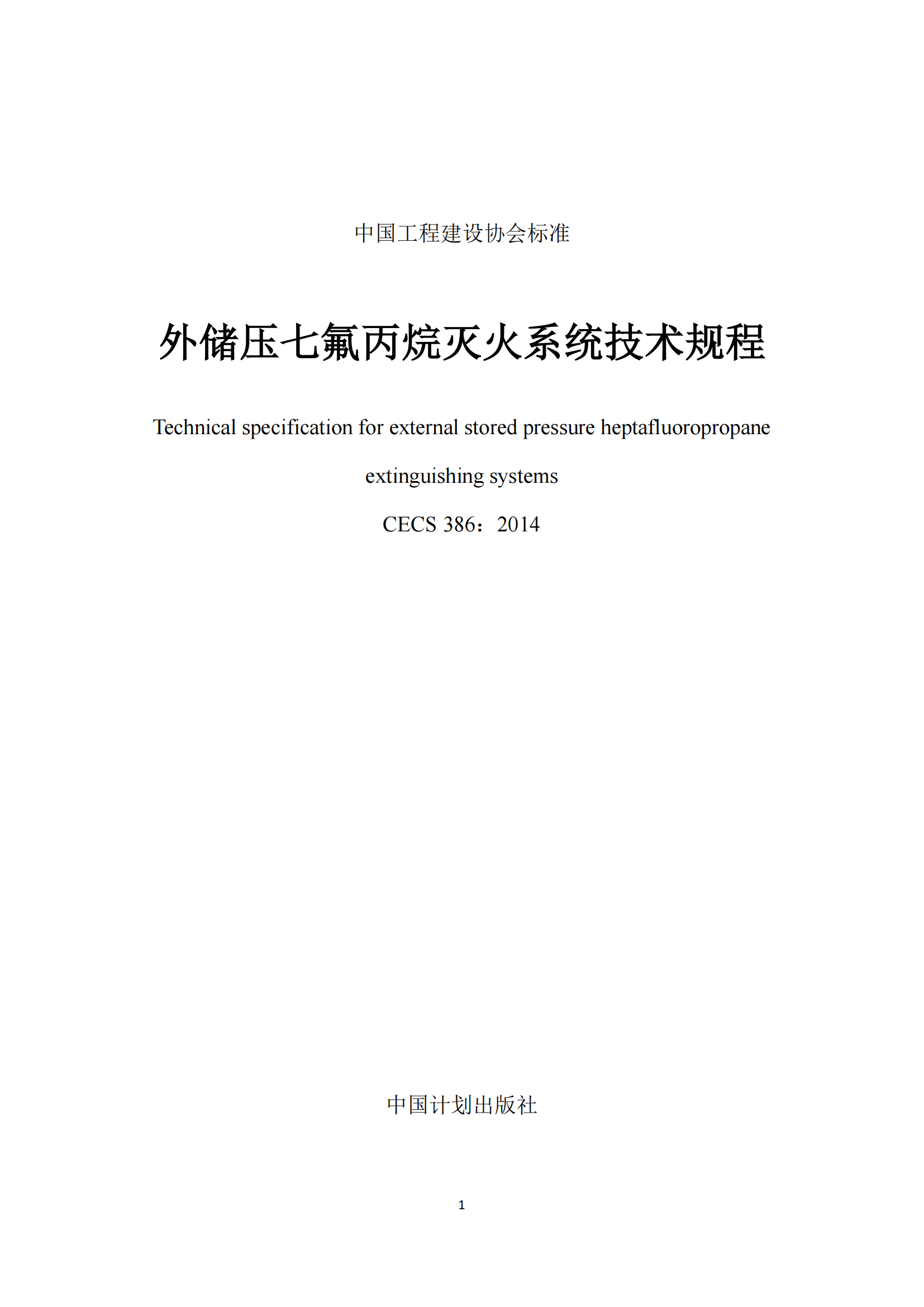 外储压七氟丙烷灭火系统技术规程CECS386-2014