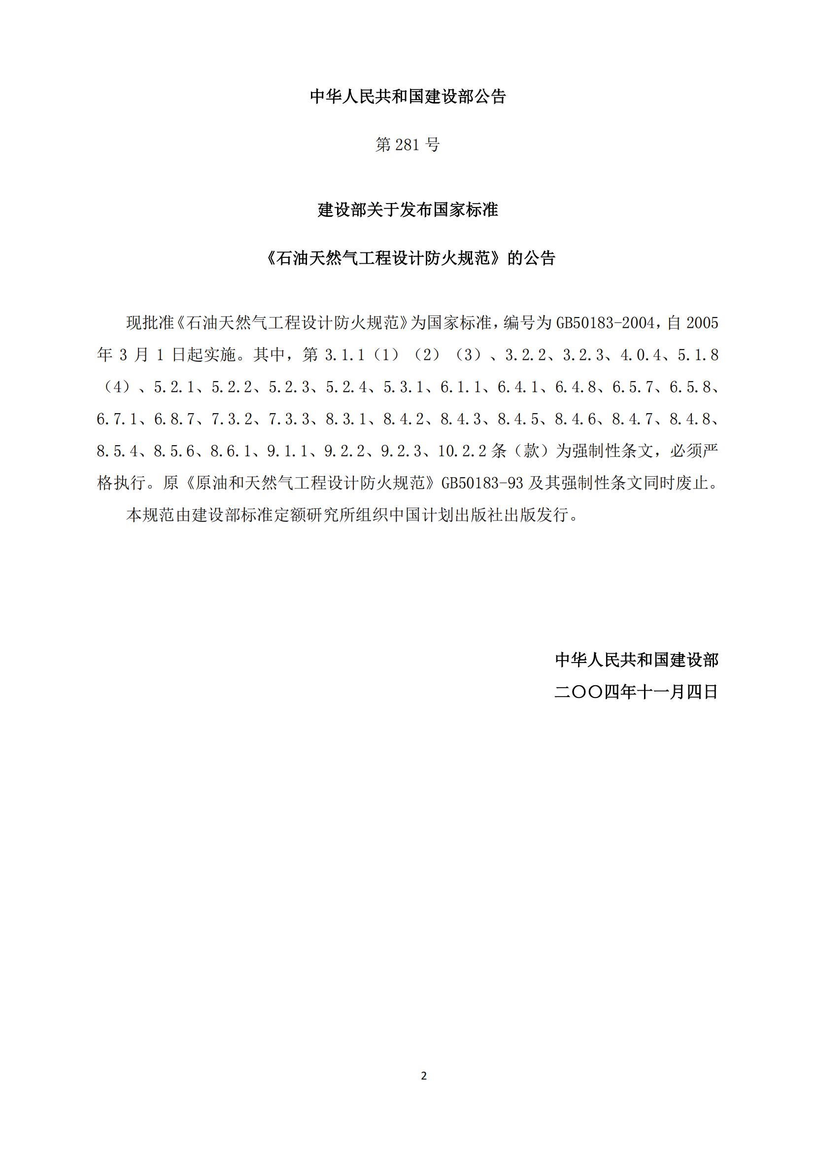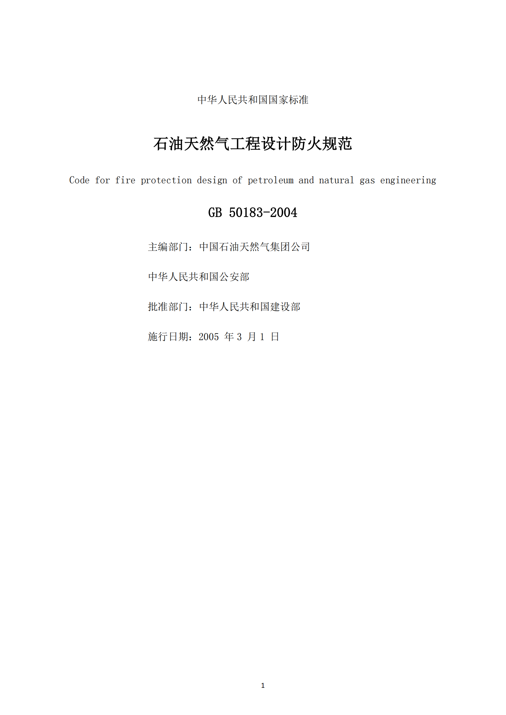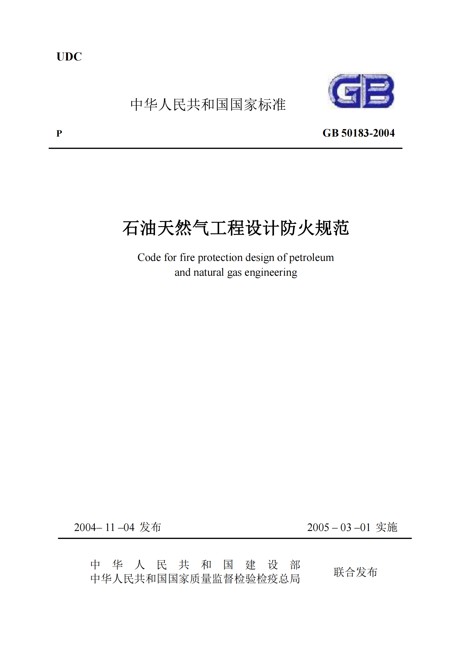 《石油天然气工程设计防火规范》GB50183-2004