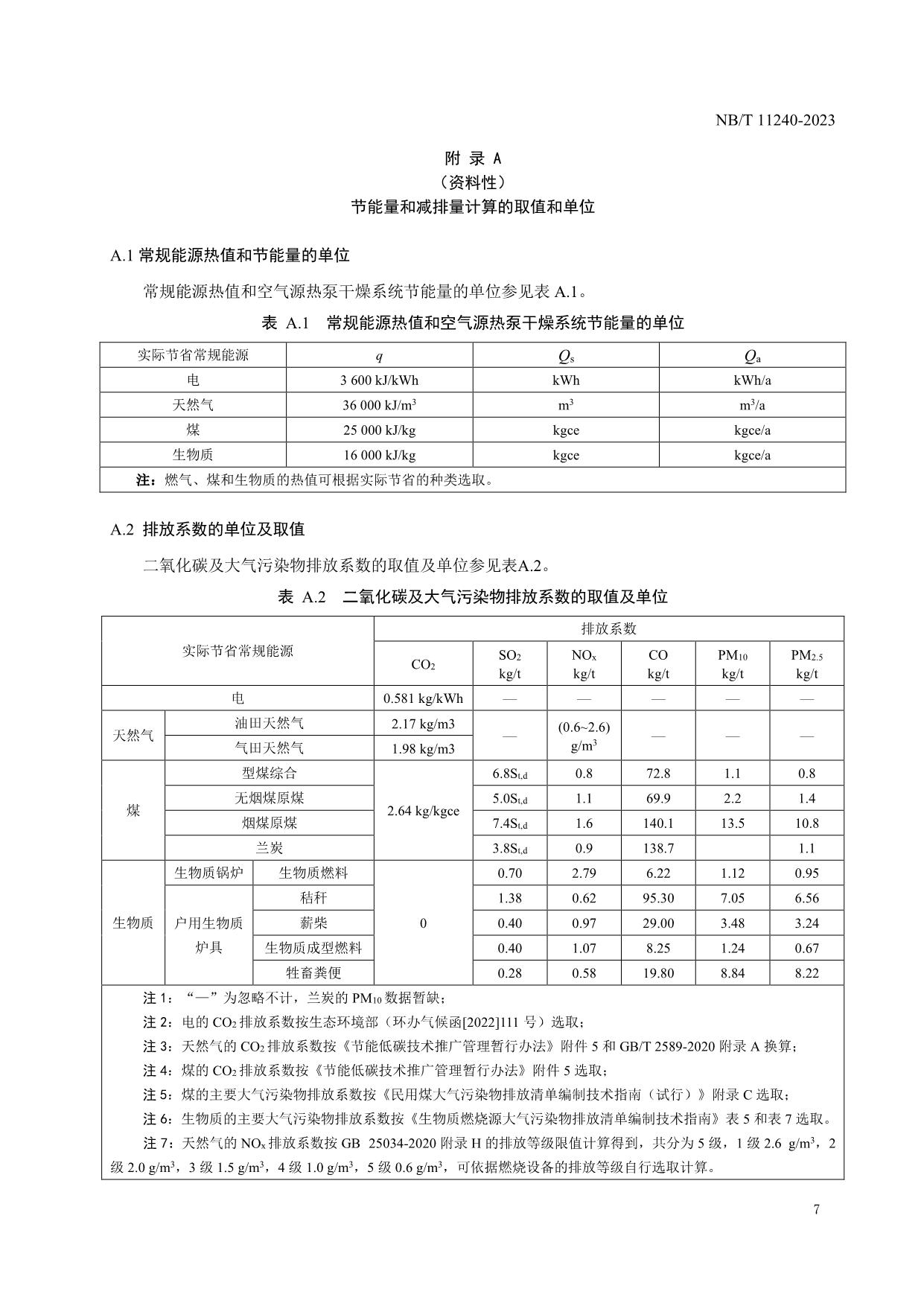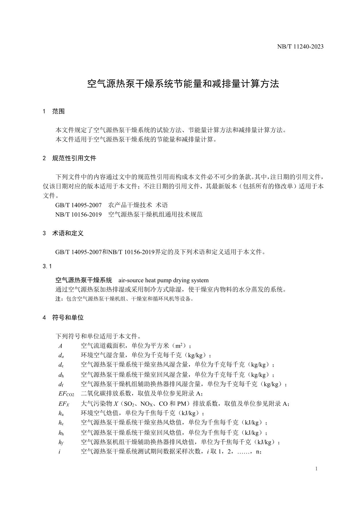 《空气源热泵干燥系统节能量和减排量计算方法》(NB/T 11240-2023 )