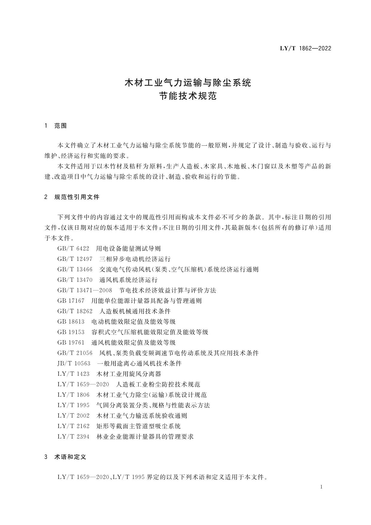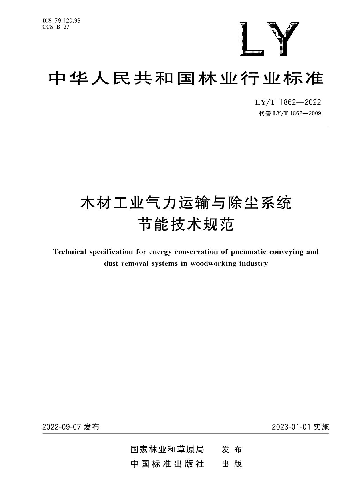 《木材工业气力运输与除尘系统节能技术规范》(LY/T 1862-2022 )