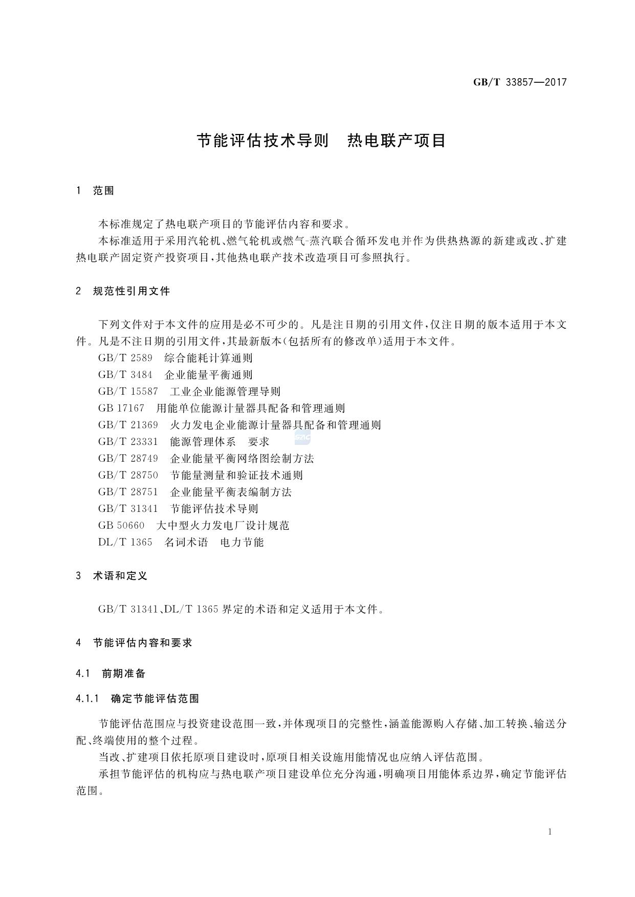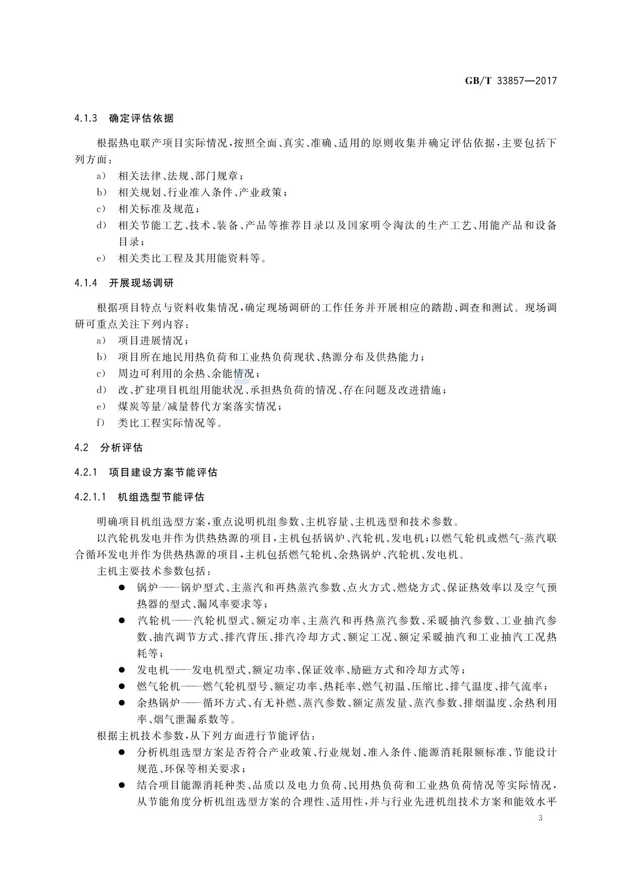 《节能评估技术导则 热电联产项目》(GB/T 33857-2017)