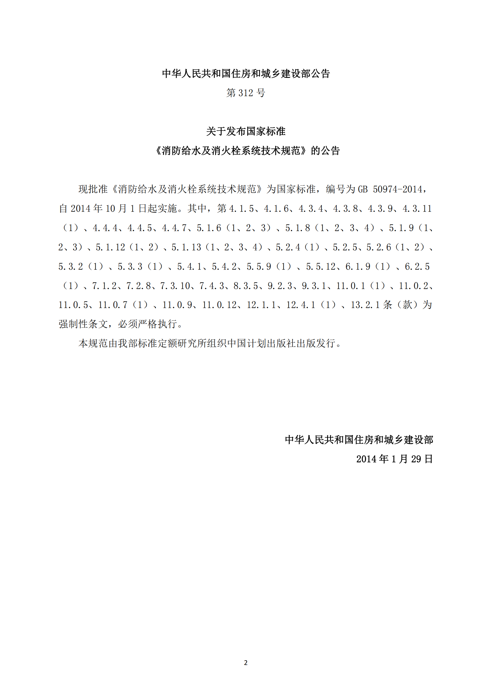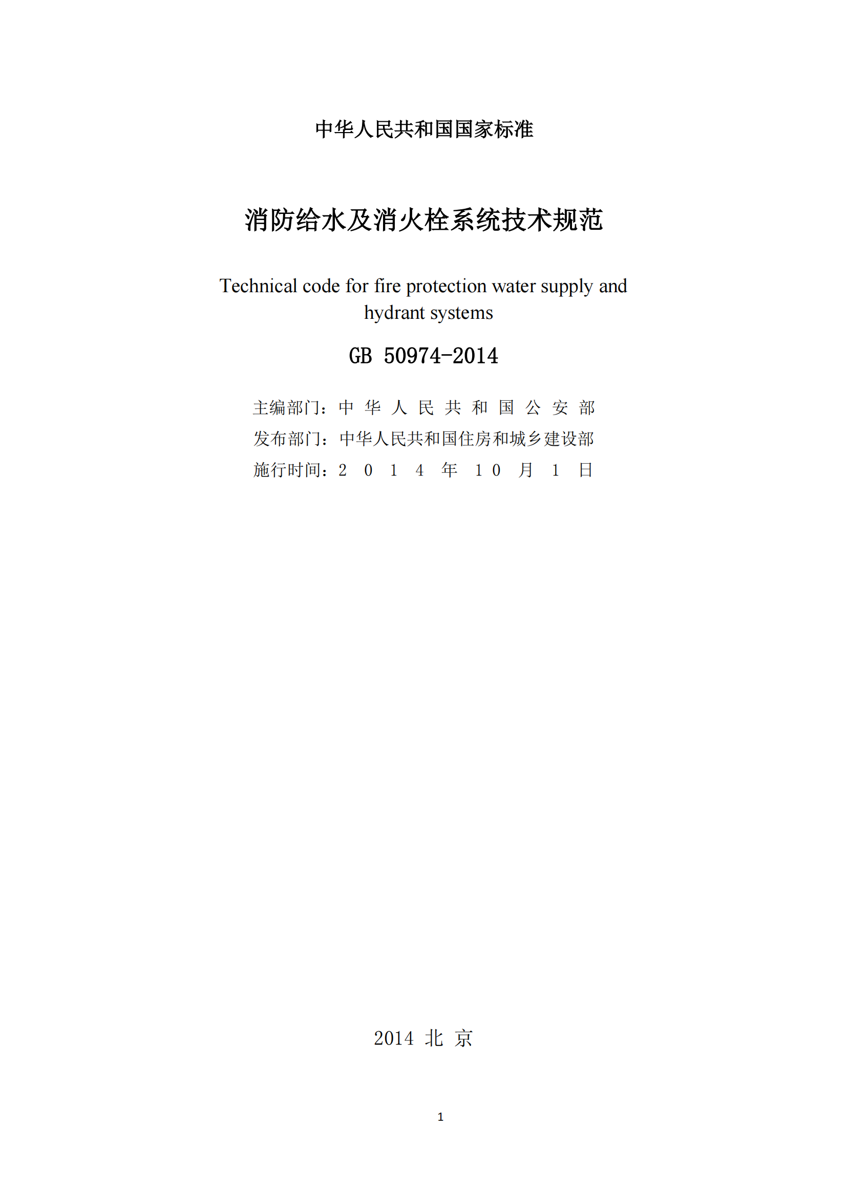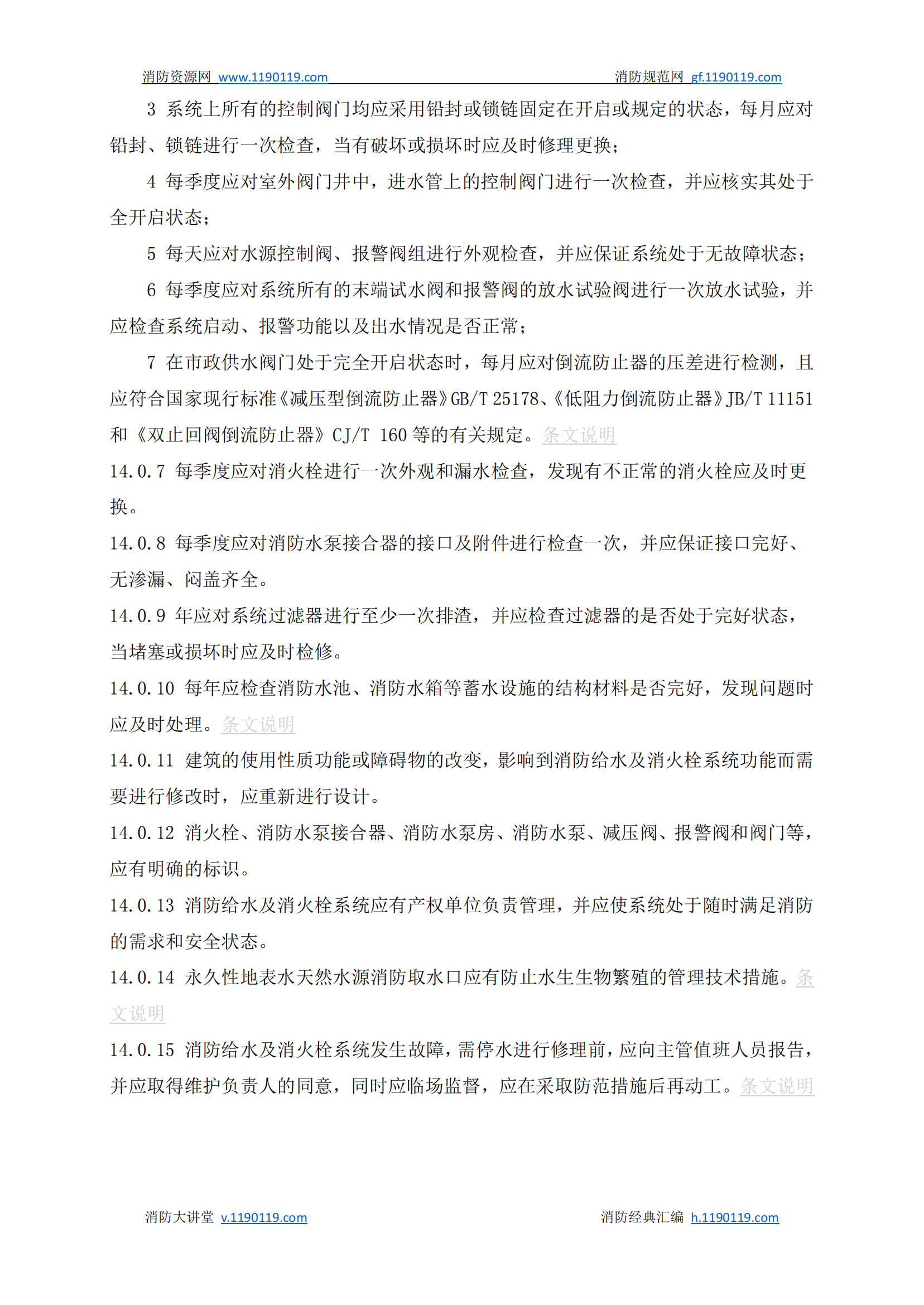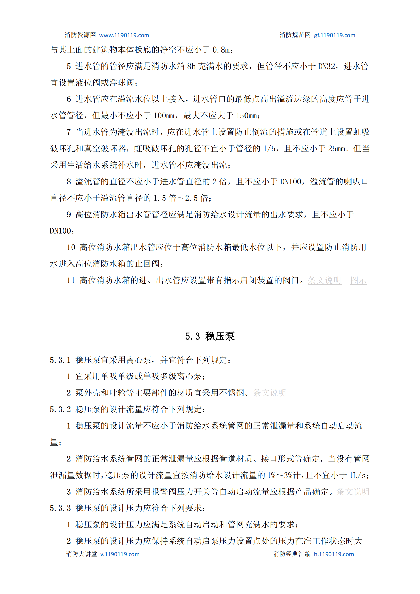 《消防给水及消火栓系统技术规范》GB50974-2014