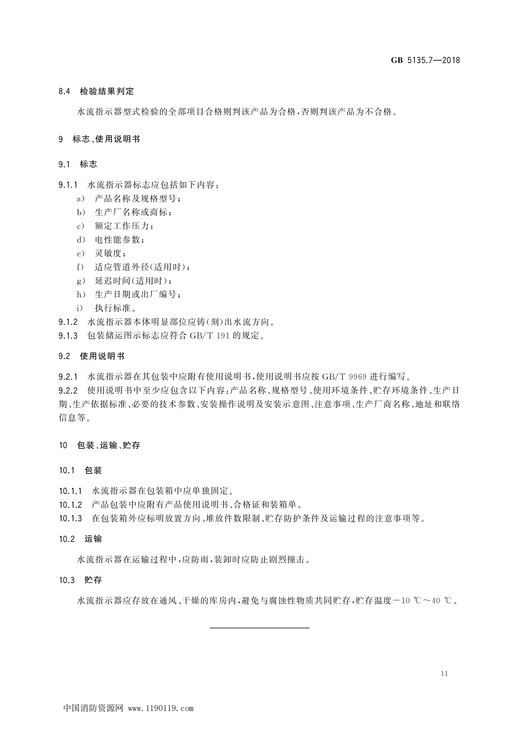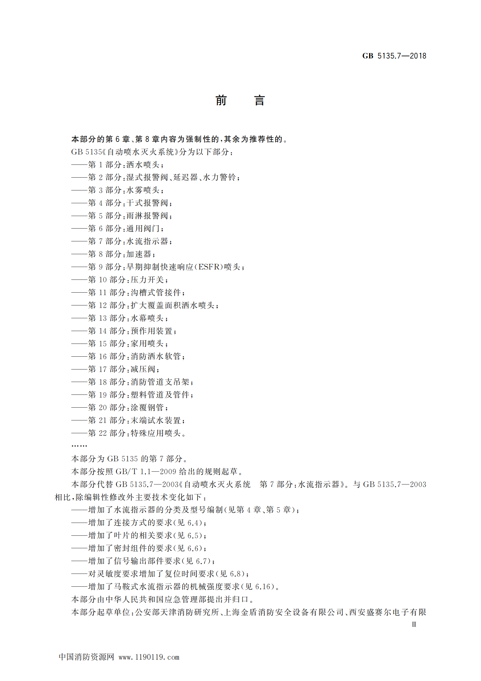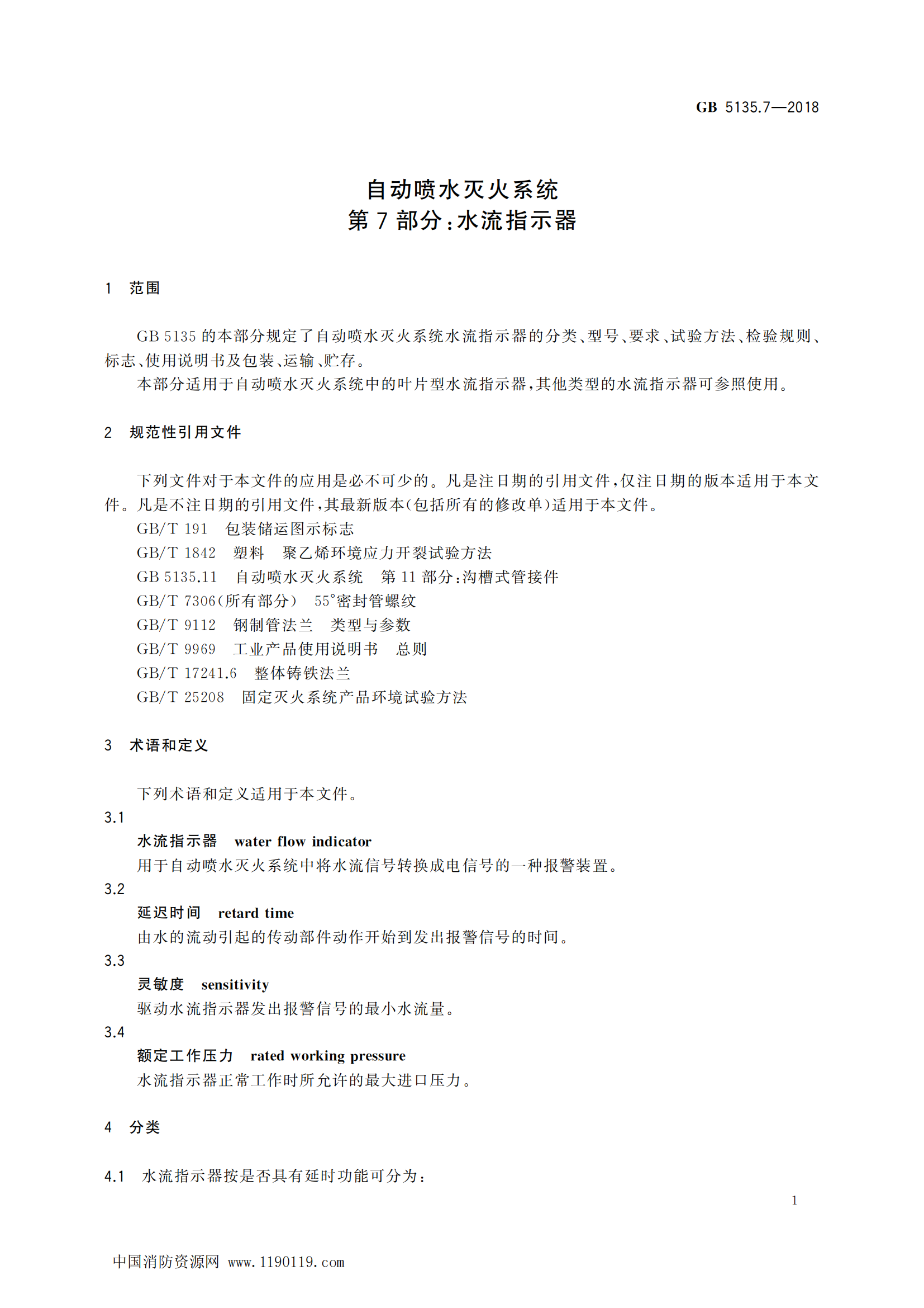 《自动喷水灭火系统第7部分:水流指示器》GB5135.7-2018