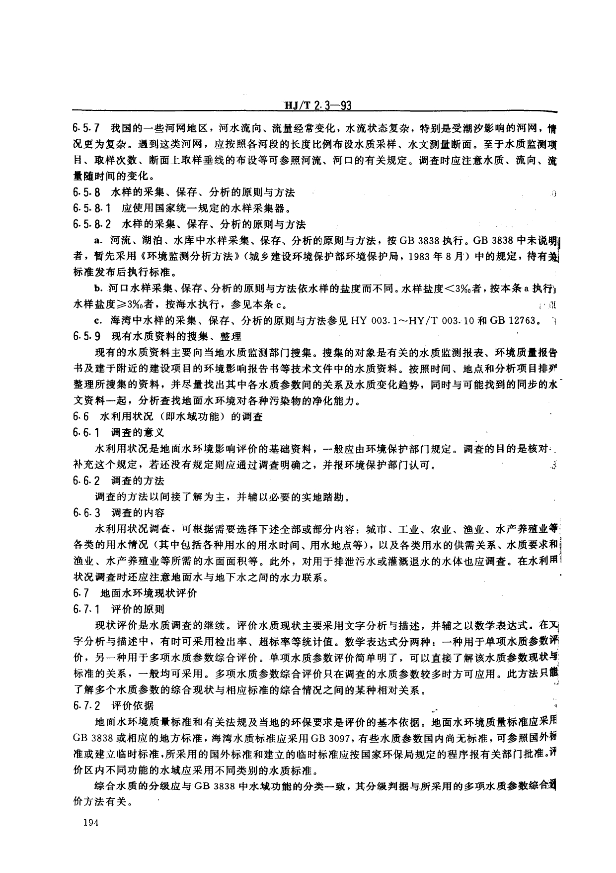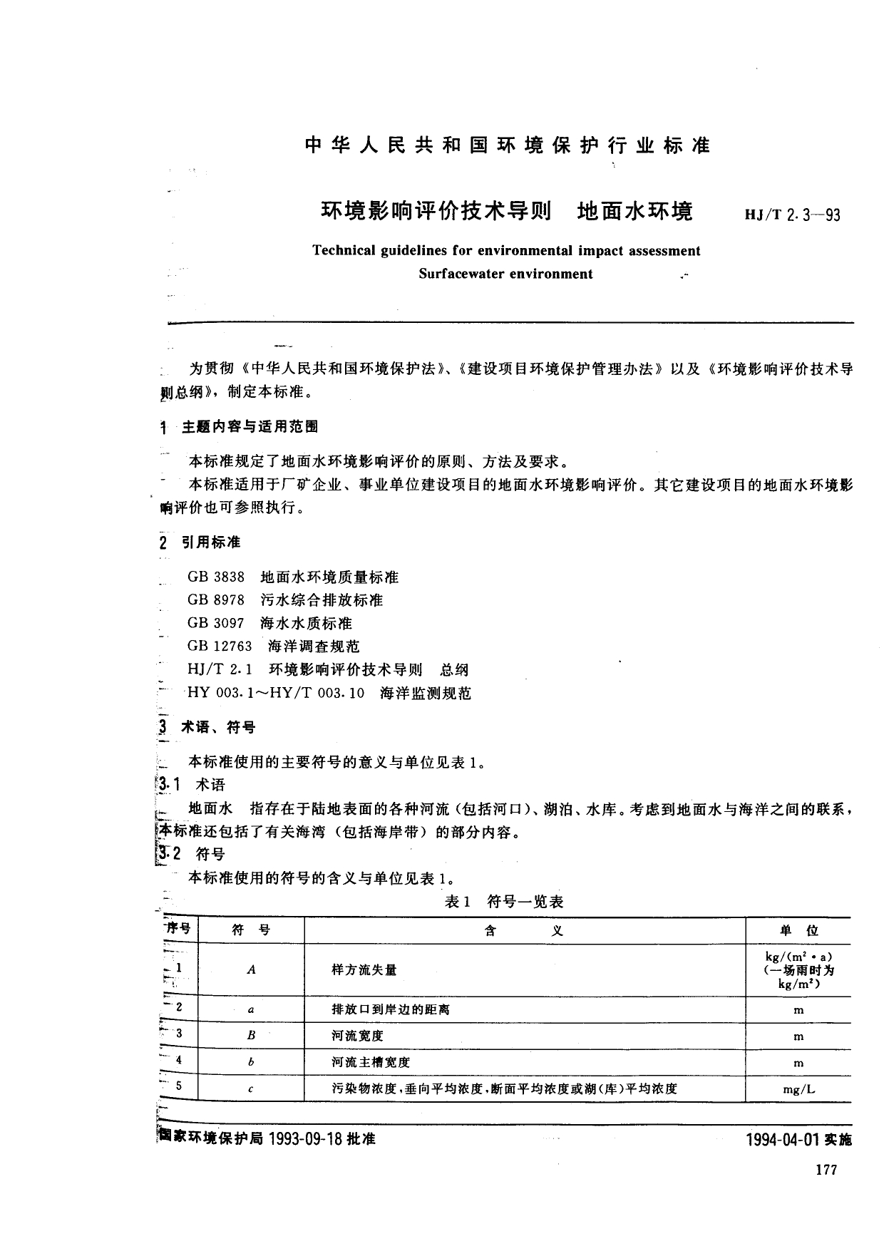《环境影响评价技术导则——地面水环境》(HJ/T2.3-93)