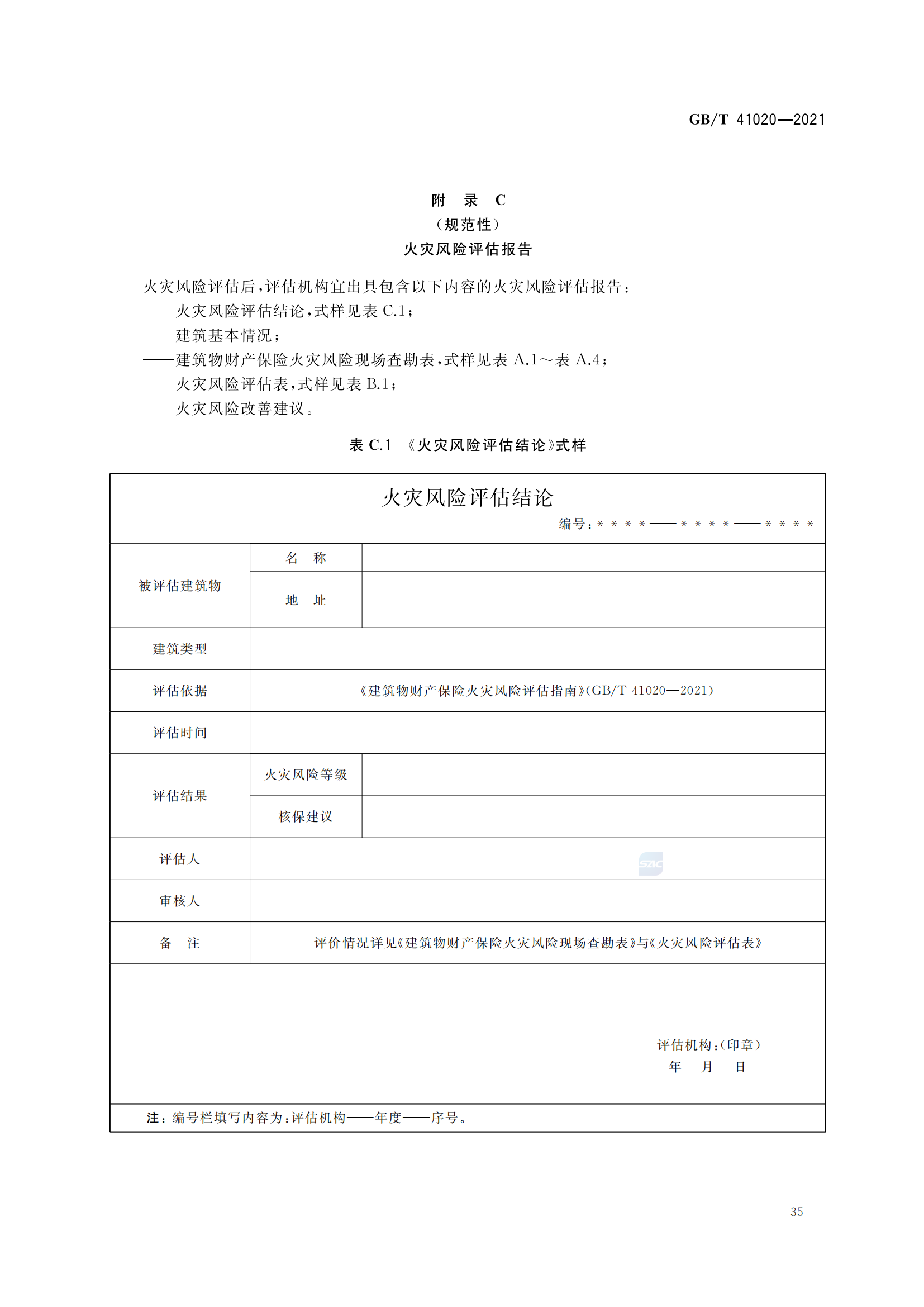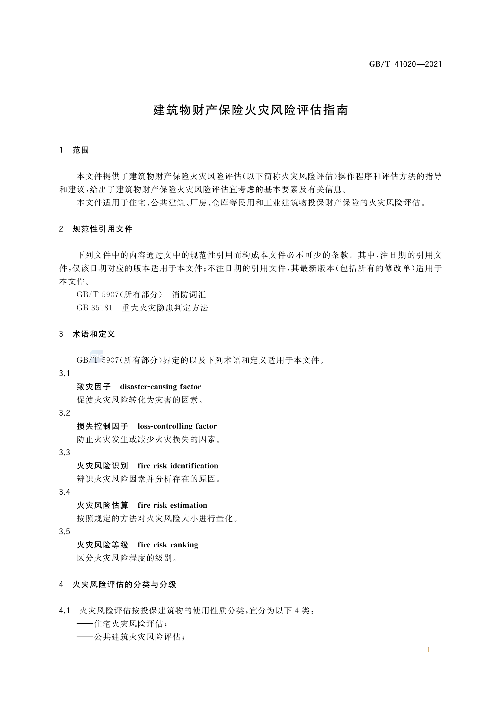 GB∕T 41020-2021 建筑物财产保险火灾风险评估指南