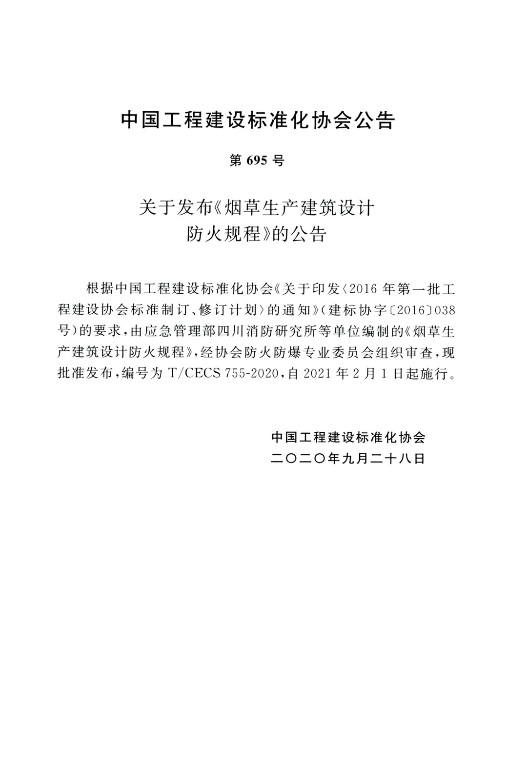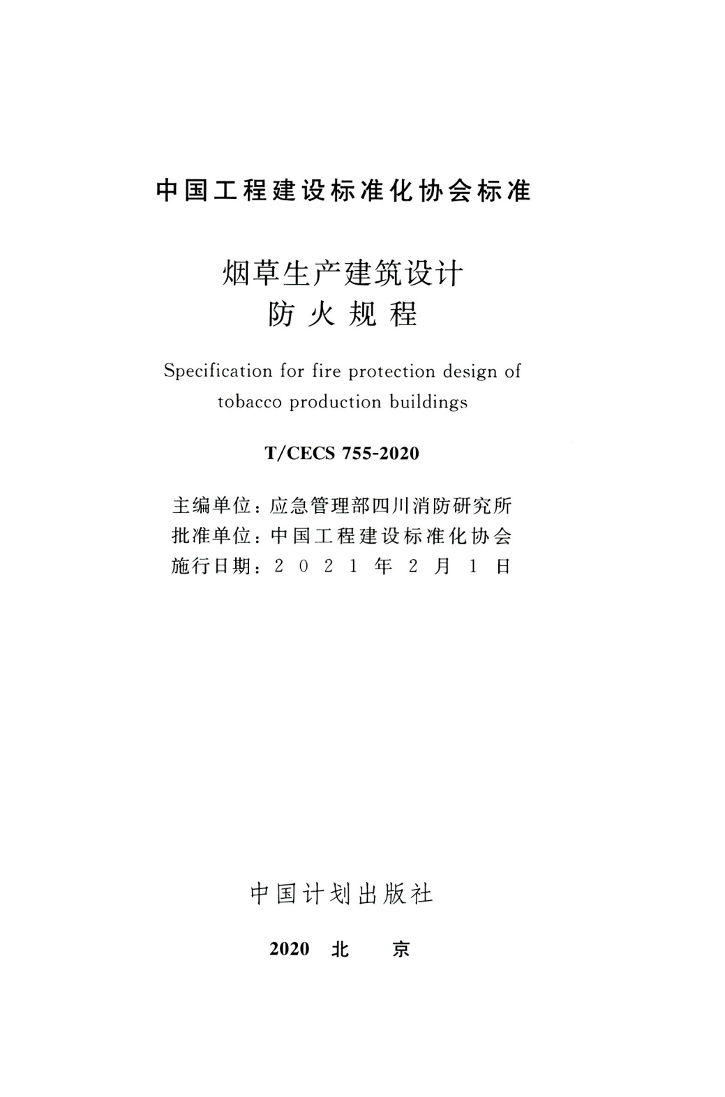 T-CECS755-2020 烟草生产建筑设计防火规程