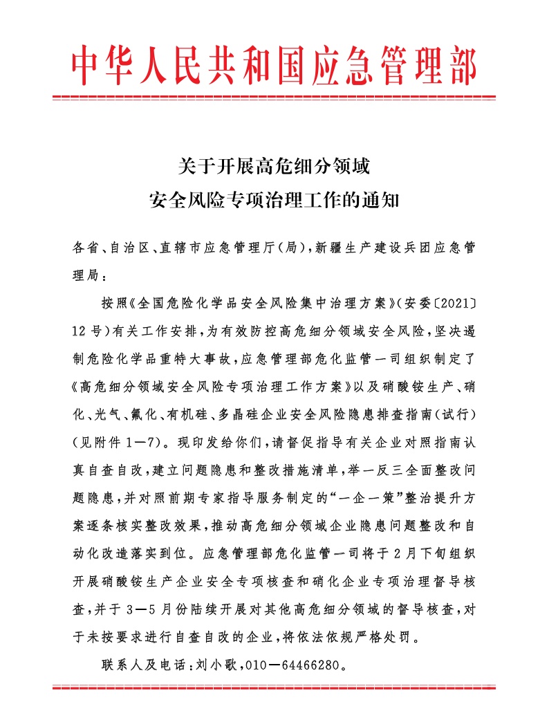 《高危细分领域安全风险专项治理》
