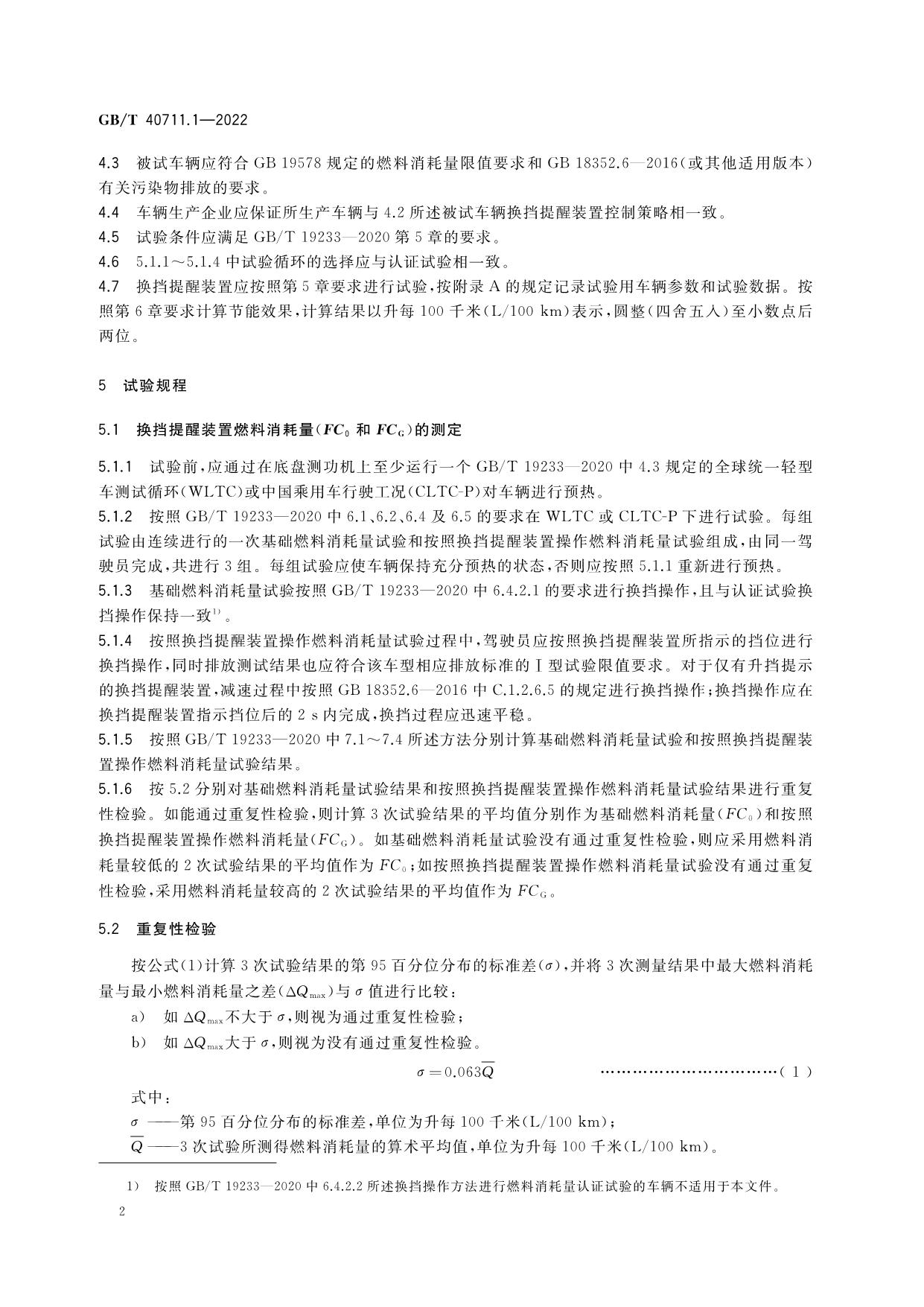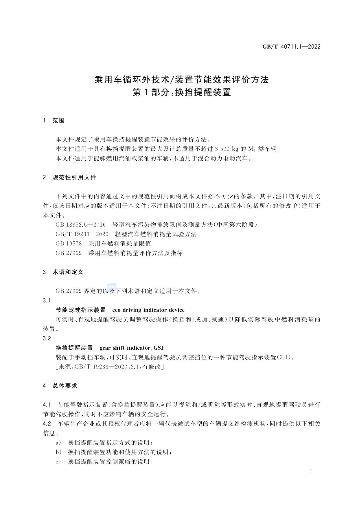 《乘用车循环外技术/装置节能效果评价方法 第1部分:换挡提醒装置》(GB/T 40711.1-2022)