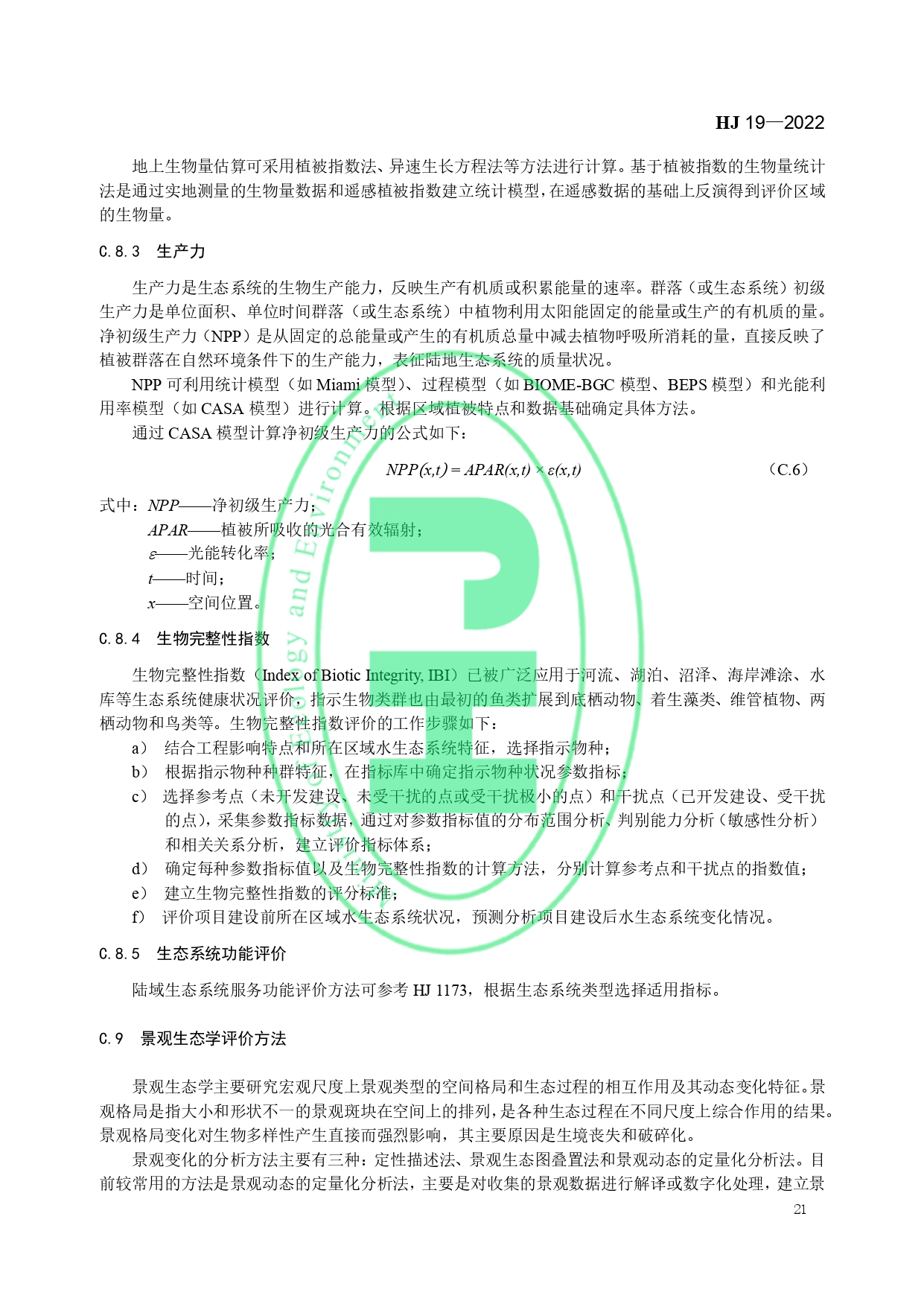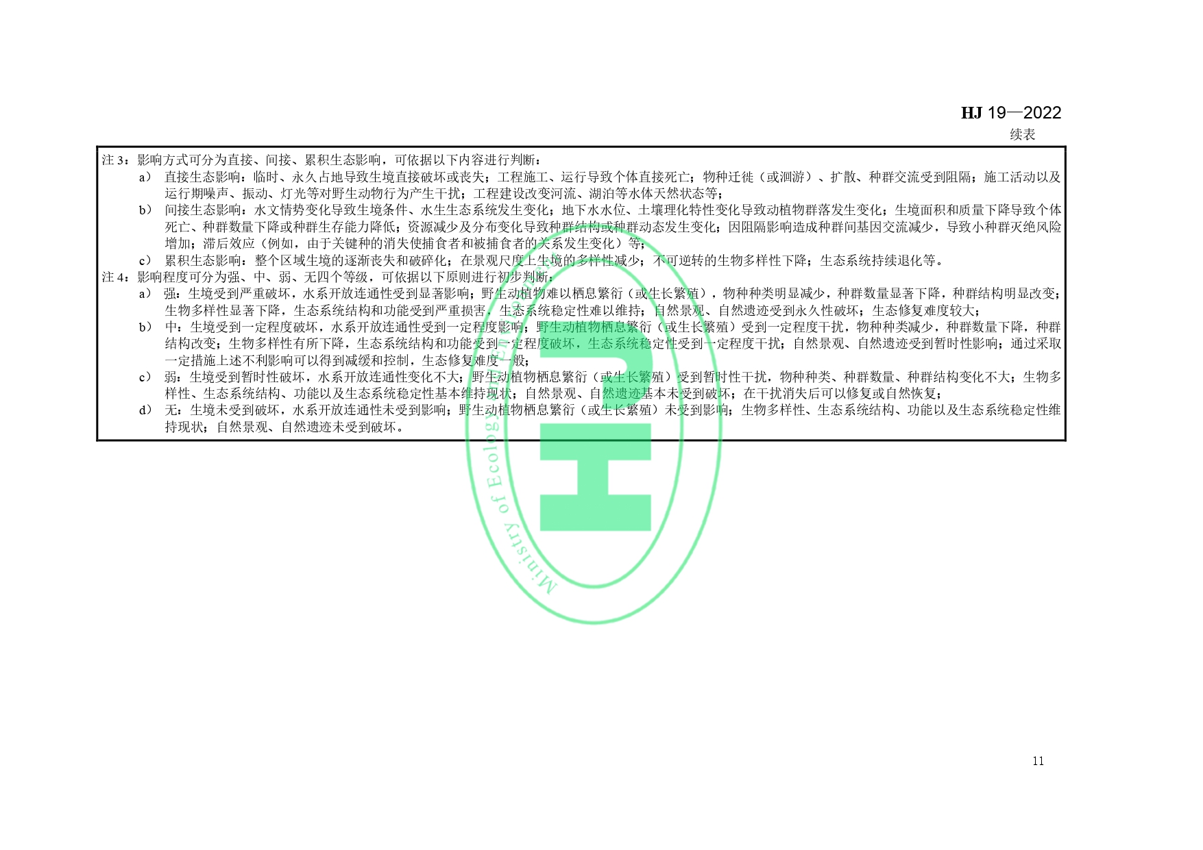 《环境影响评价技术导则——生态影响》(HJ19-2011)