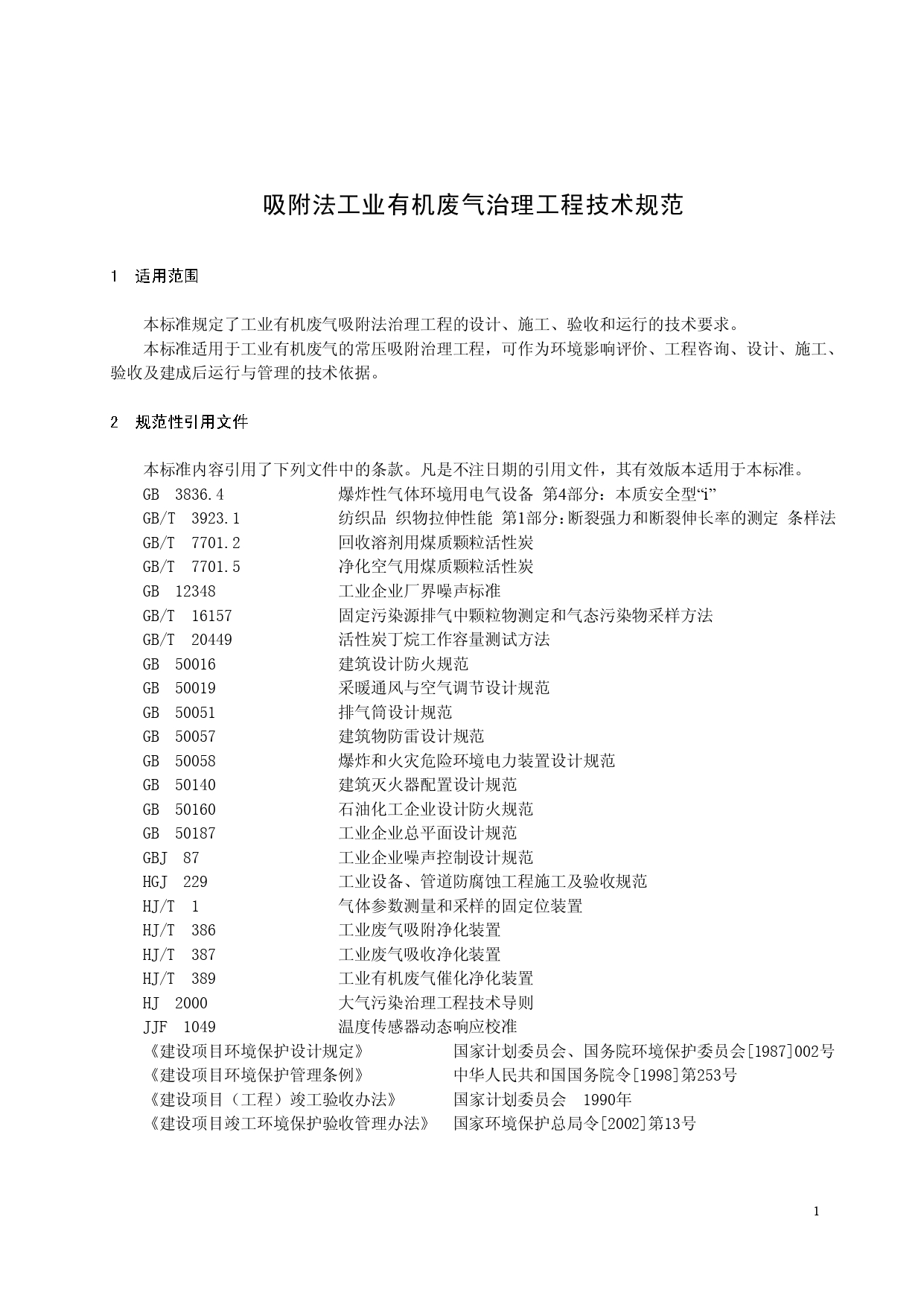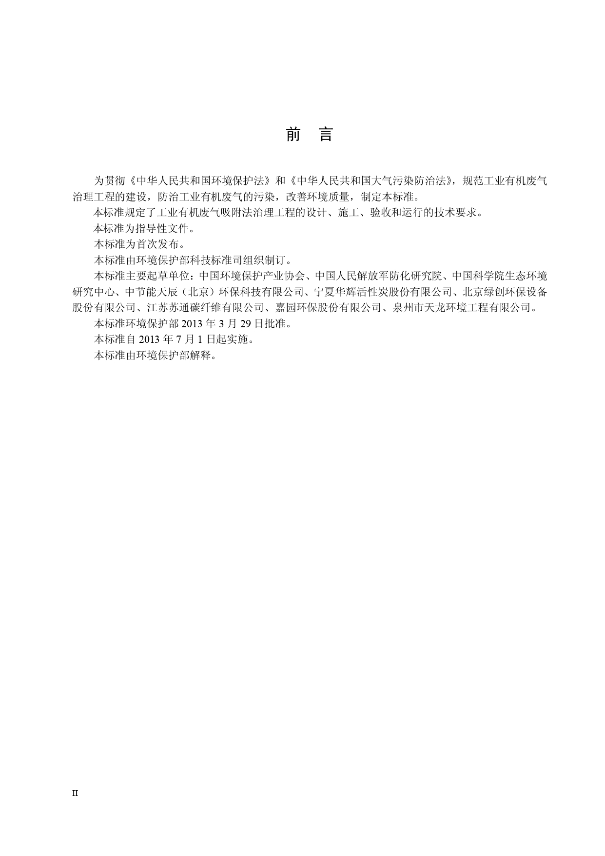 《吸附法工业有机废气治理工程技术规范》(HJ2026-2013)